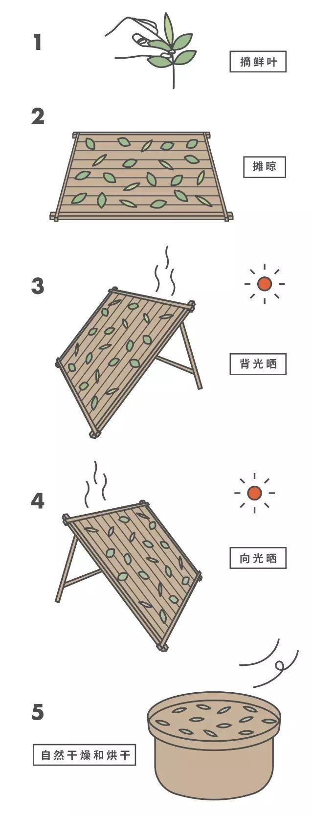 福鼎白茶是工序最简单的一种,水灵灵的茶叶摘下来, 经过日晒,自然萎凋并干燥,就做成了!
