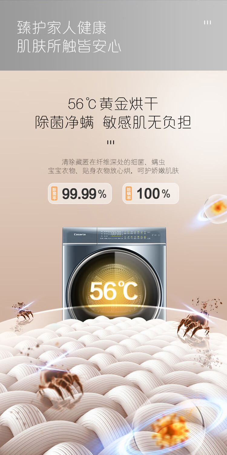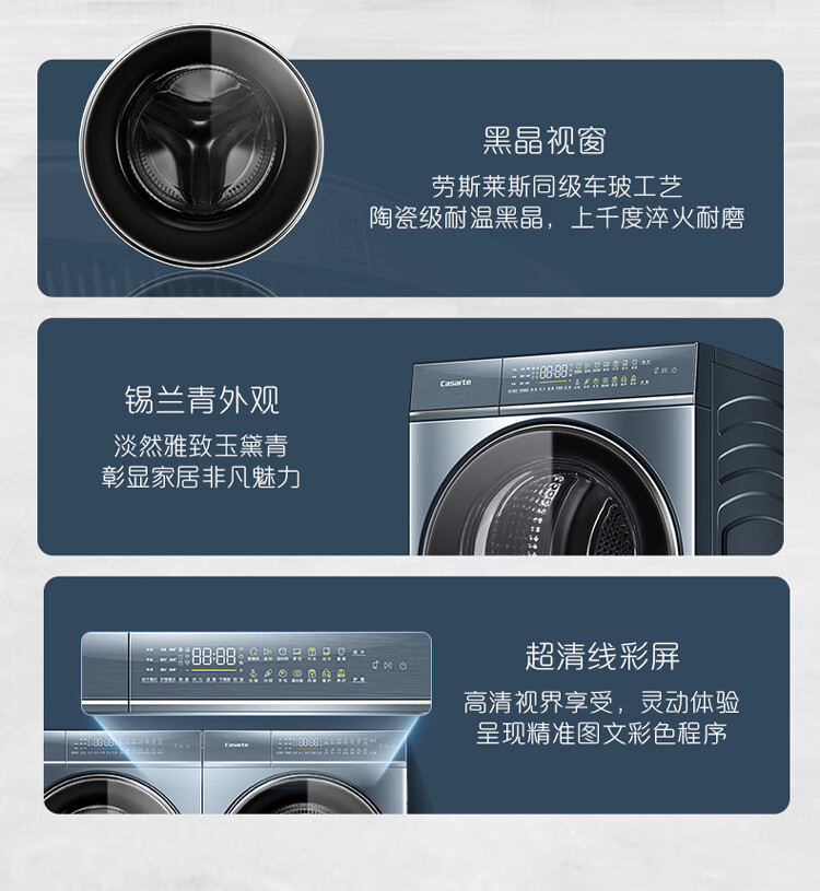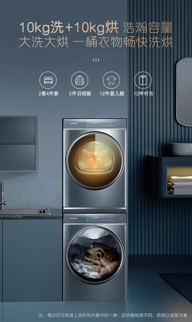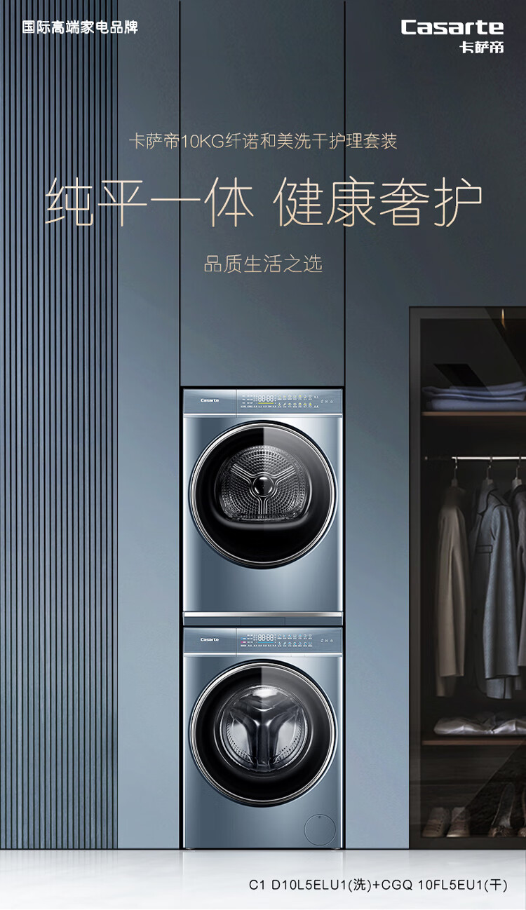 卡萨帝(Casarte)洗烘套装10Kg滚筒洗衣机全自动+10Kg双擎热泵烘干机家用除菌C1 D10L5ELU1+CGQ 10FL5EU1