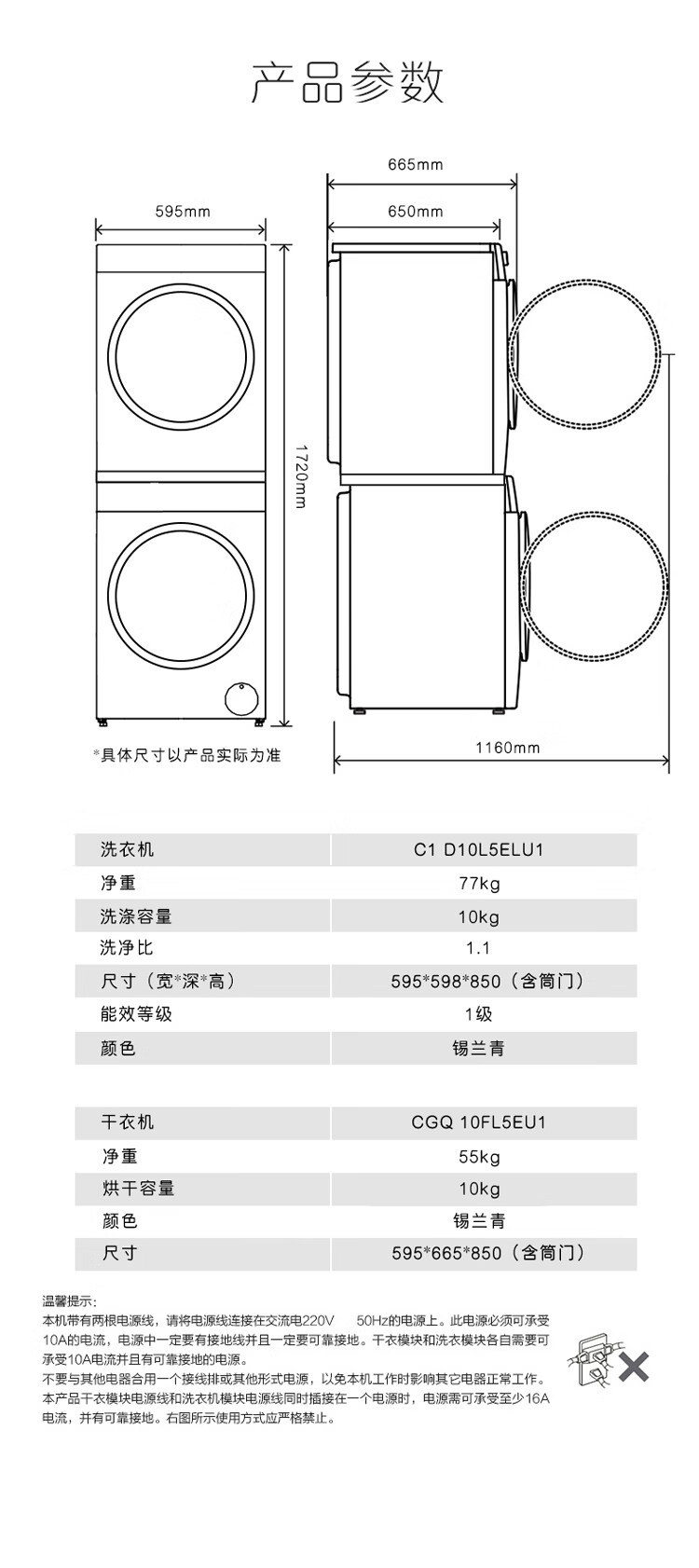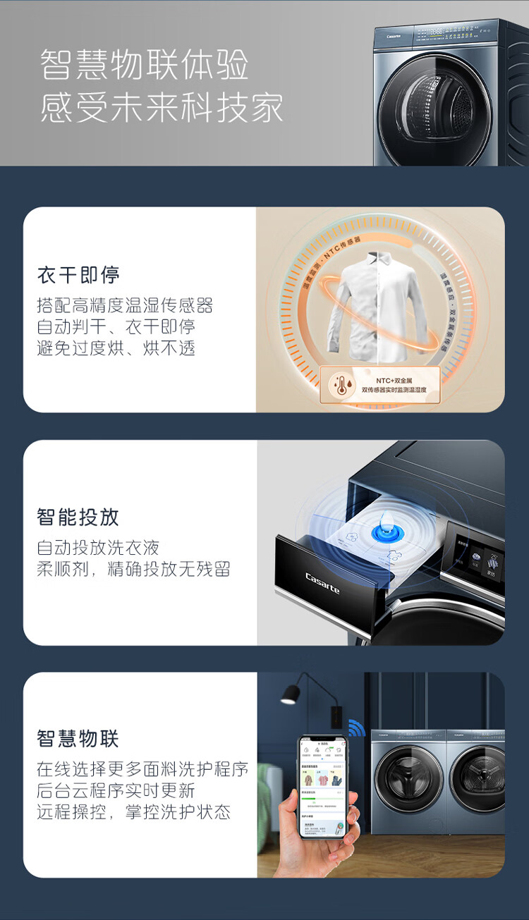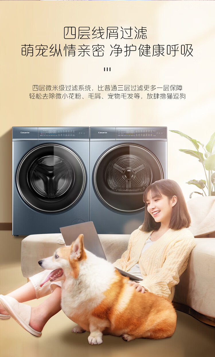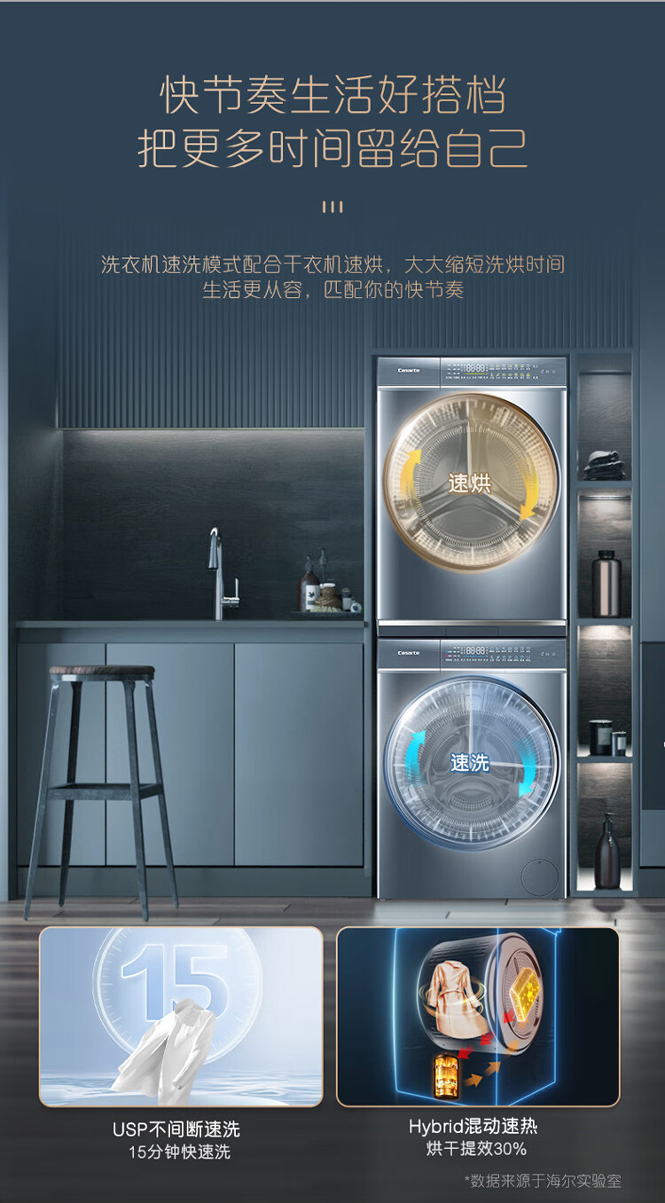 卡萨帝(Casarte)洗烘套装10Kg滚筒洗衣机全自动+10Kg双擎热泵烘干机家用除菌C1 D10L5ELU1+CGQ 10FL5EU1