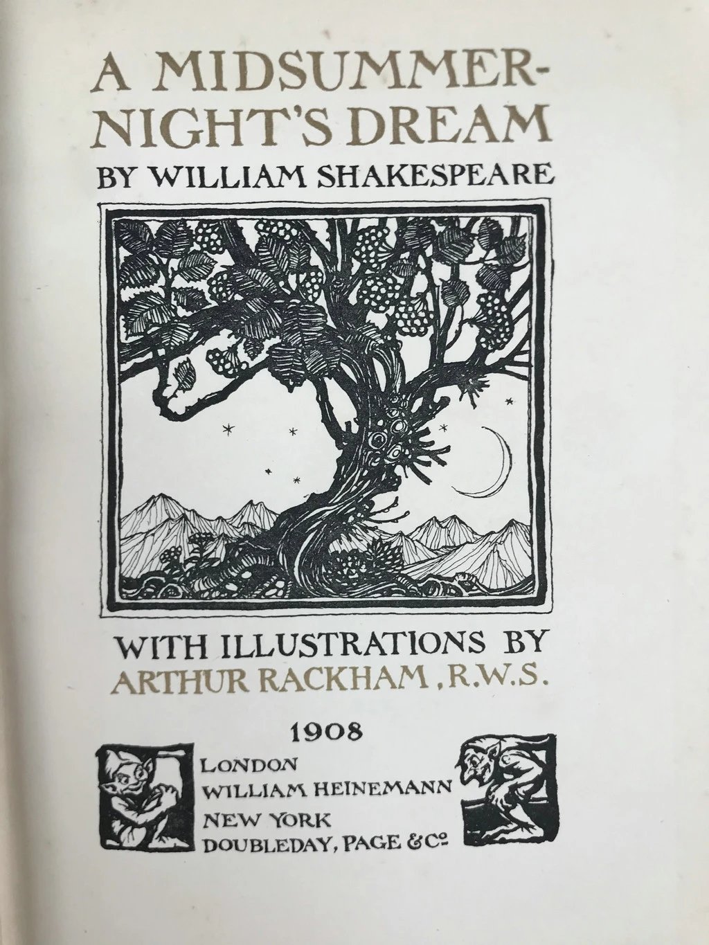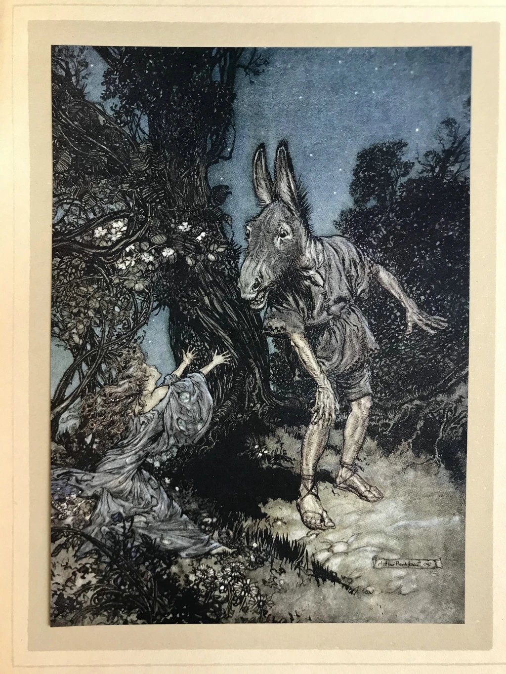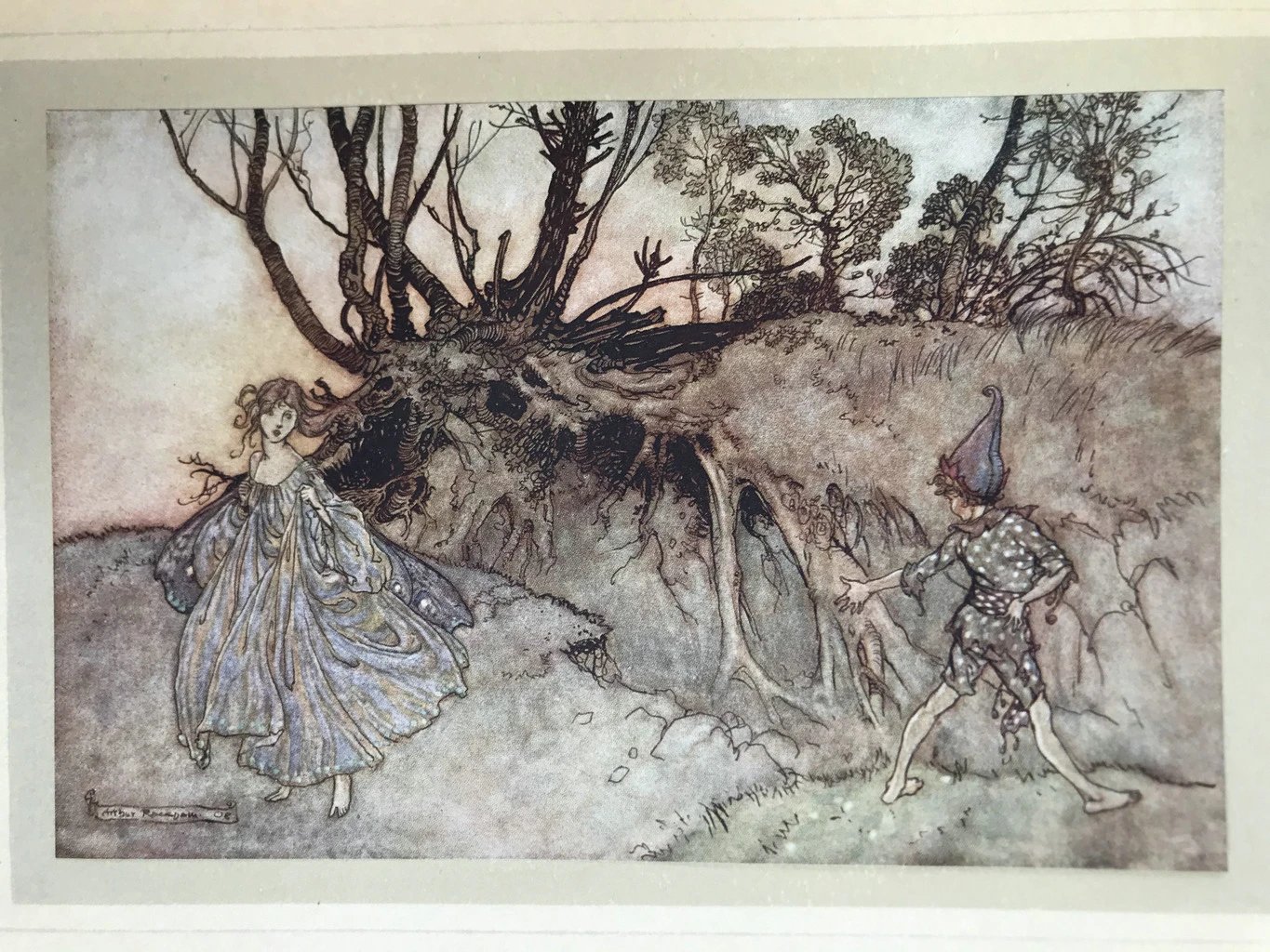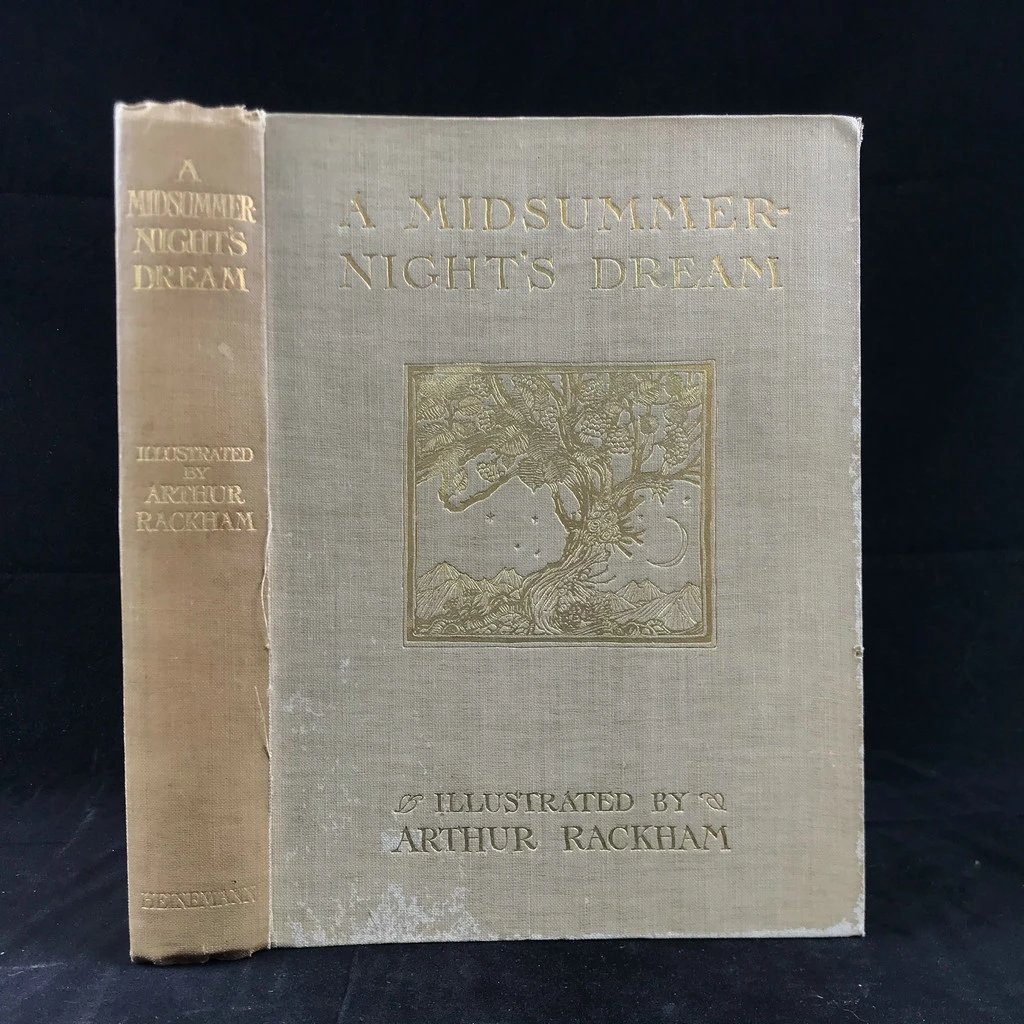 鬼才拉克姆40幅彩色手工贴图!1908年首版 莎士比亚《仲夏夜之梦》 漆布精装16开