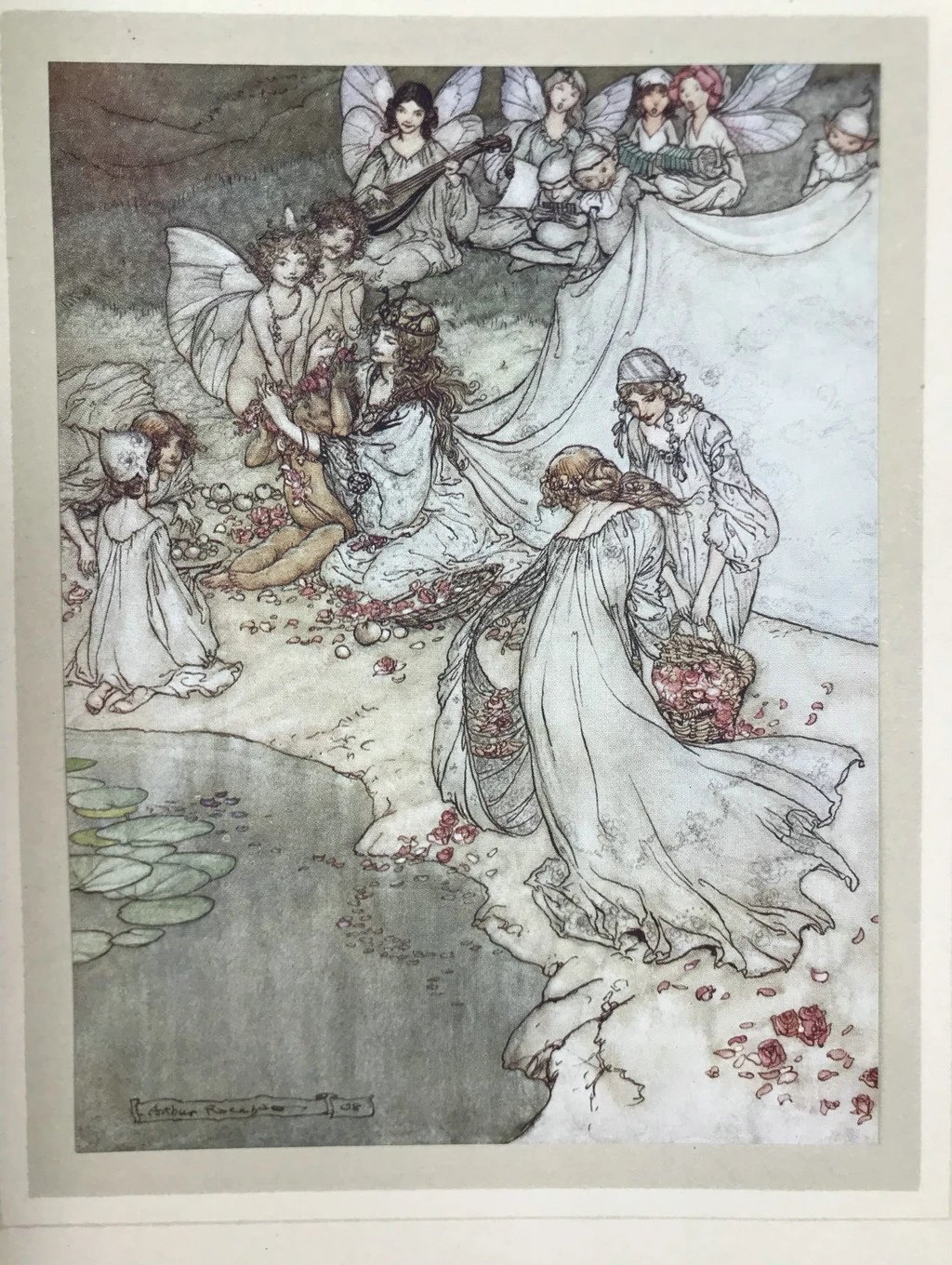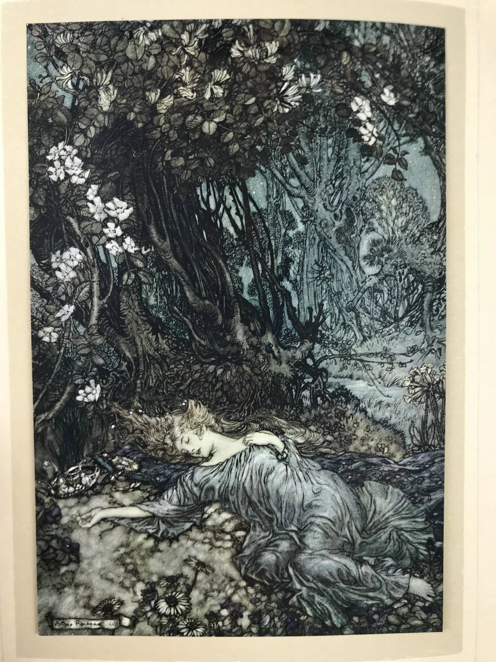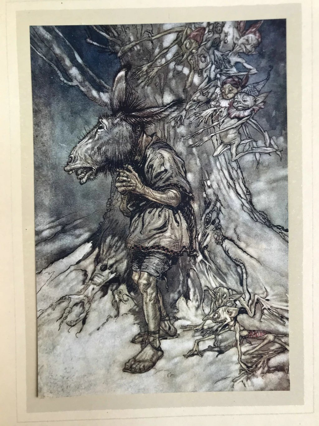 鬼才拉克姆40幅彩色手工贴图!1908年首版 莎士比亚《仲夏夜之梦》 漆布精装16开