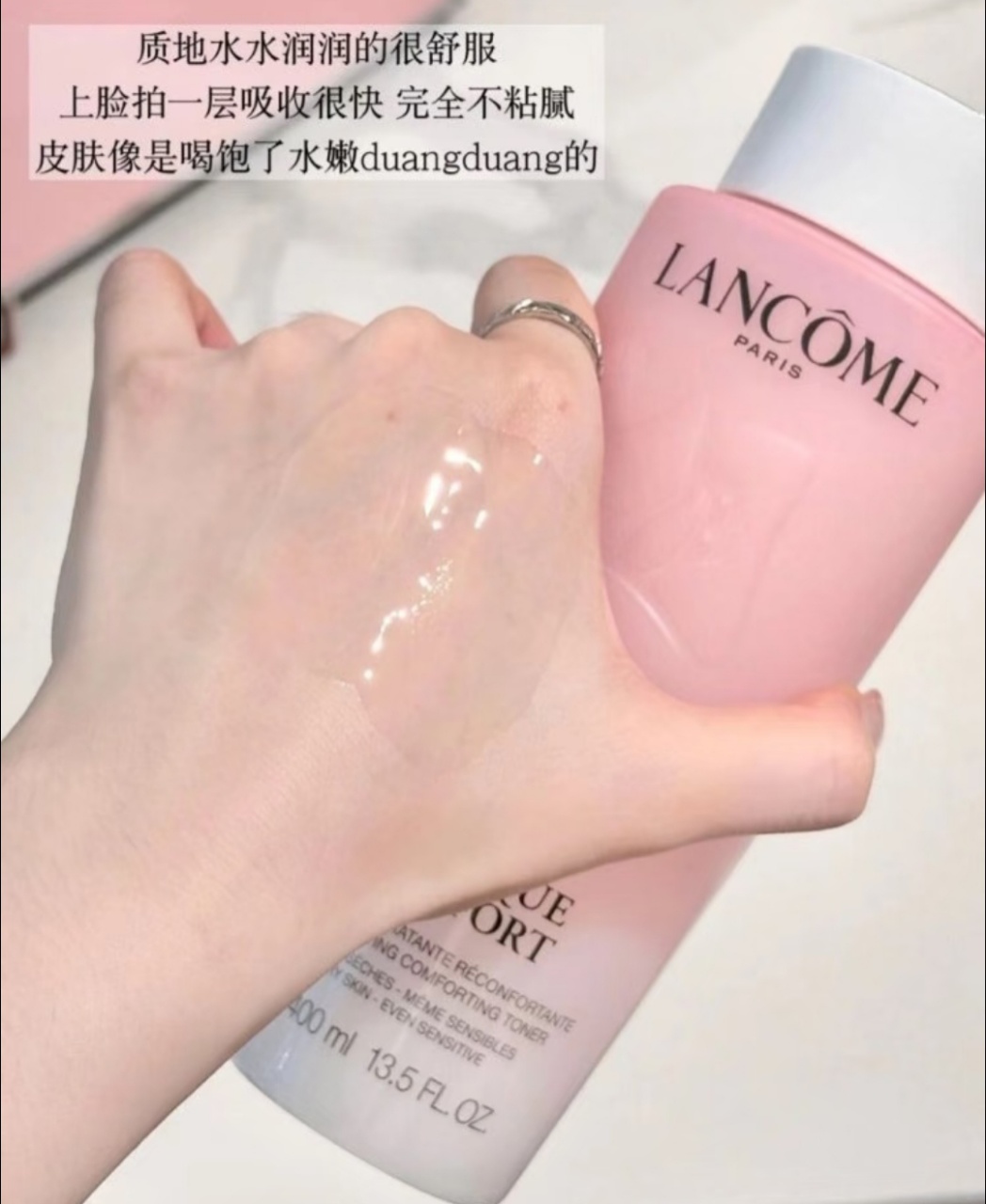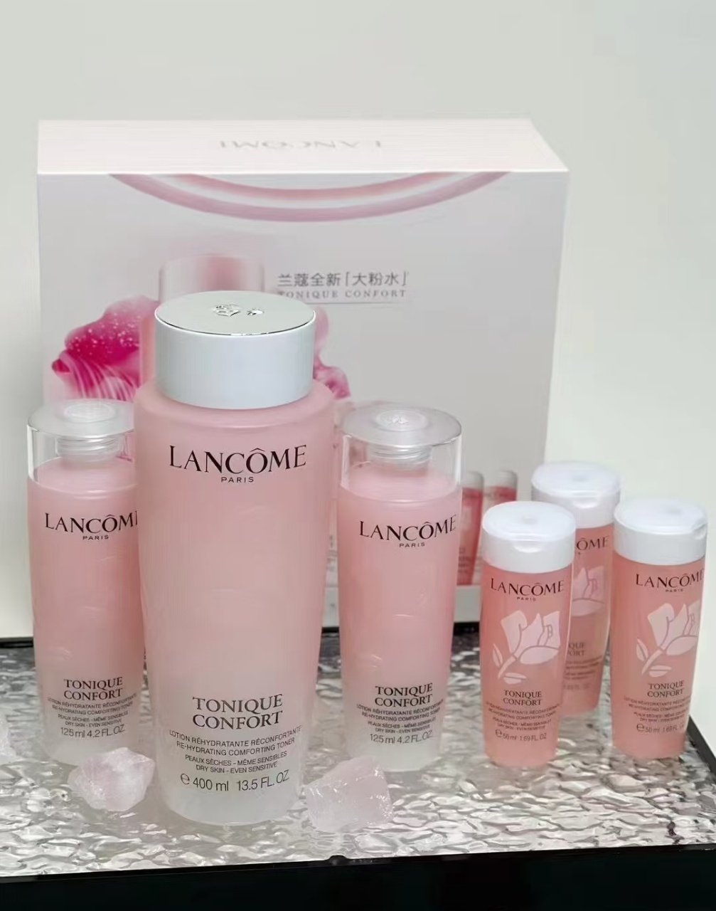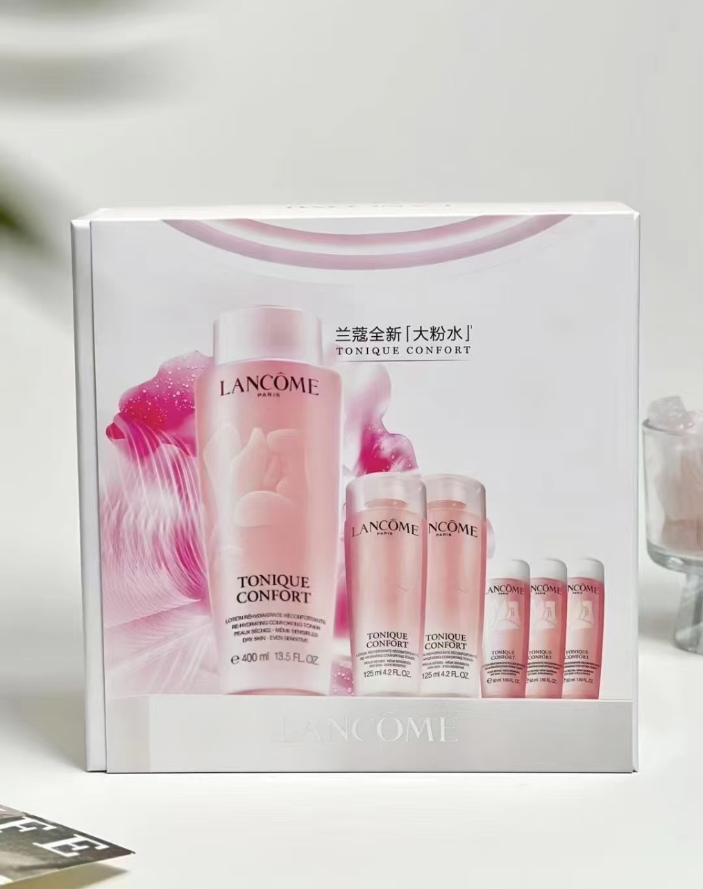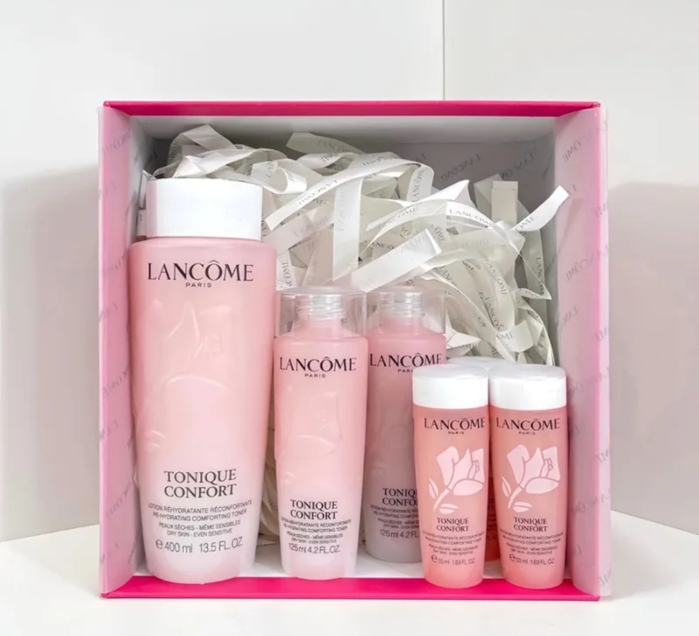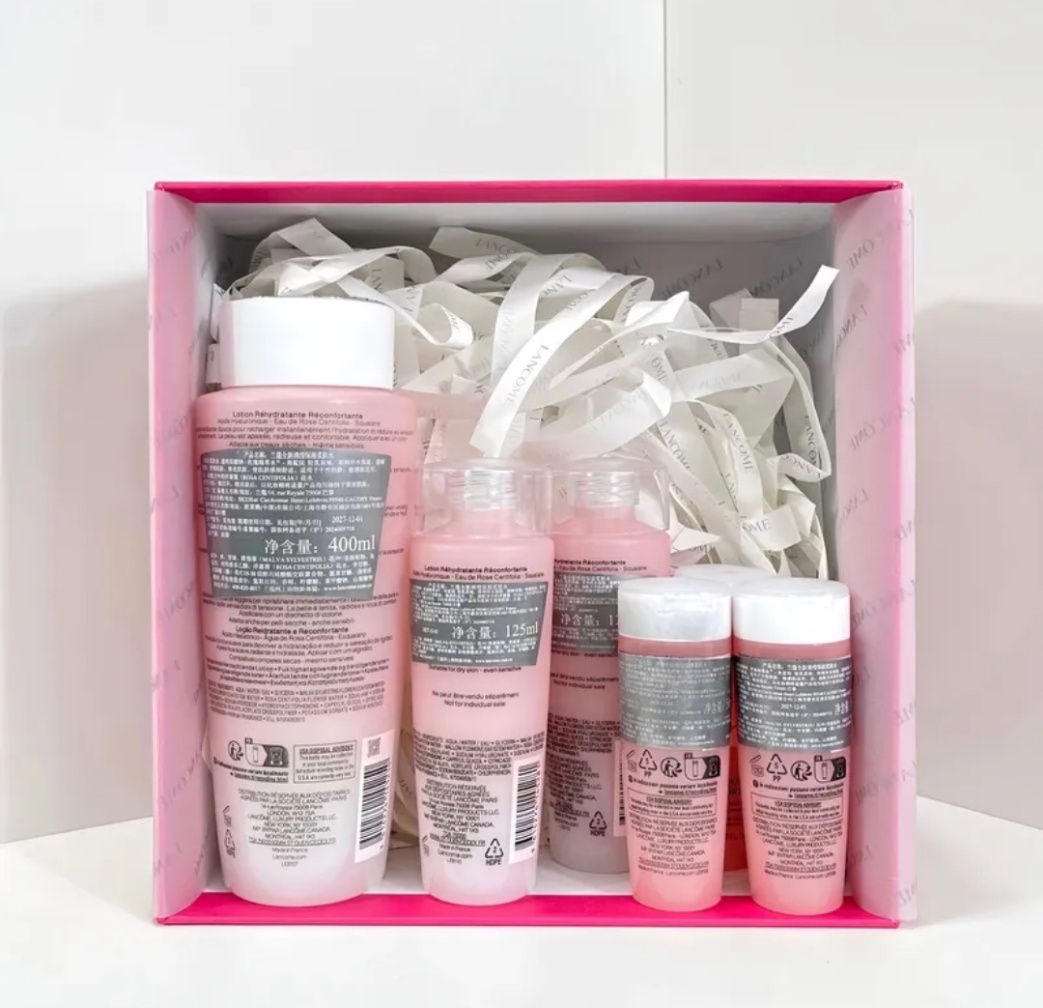 ,总容量800ml,超适合干皮姐妹!主打补水保湿,质地轻盈易吸收,日常护肤或旅行携带都很方便✨。礼盒还送手袋,收纳超省心,送礼自用都很赞!性价比超高,囤货党必入!