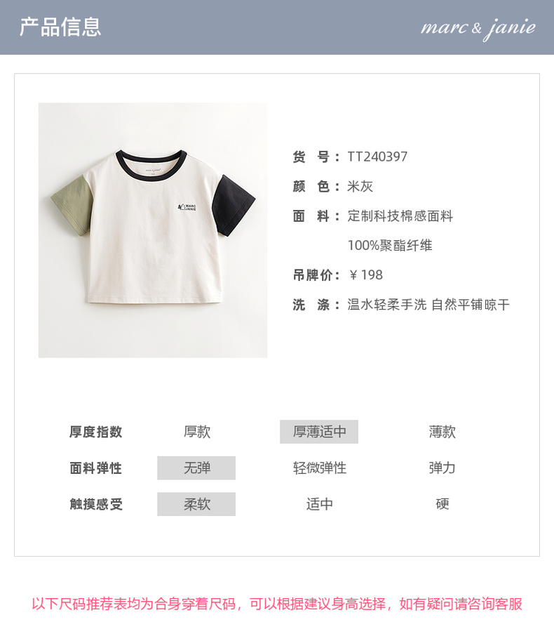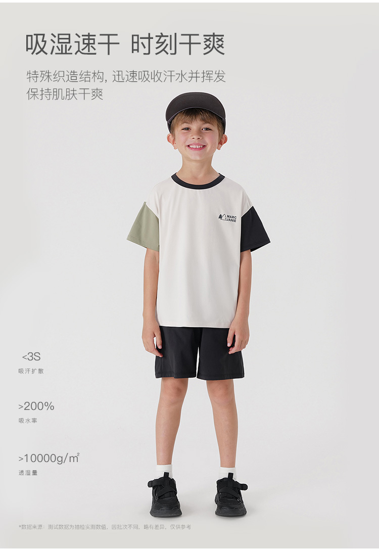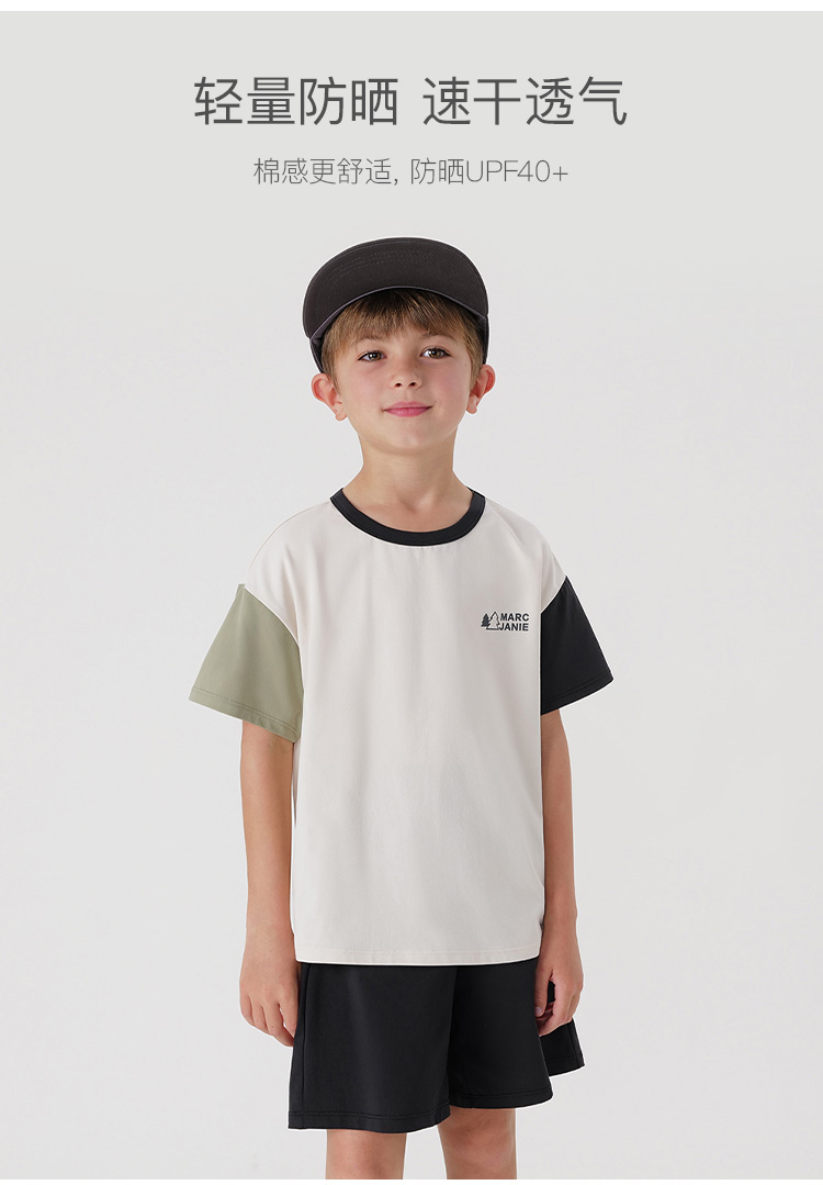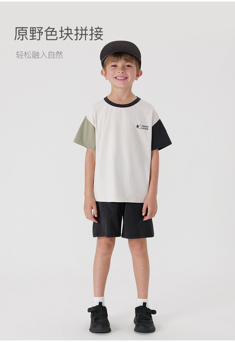 [棉感速干]马克珍妮男童城市户外拼色短袖T恤儿童上衣夏装240397