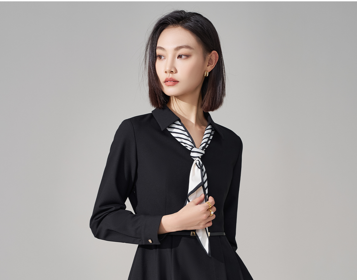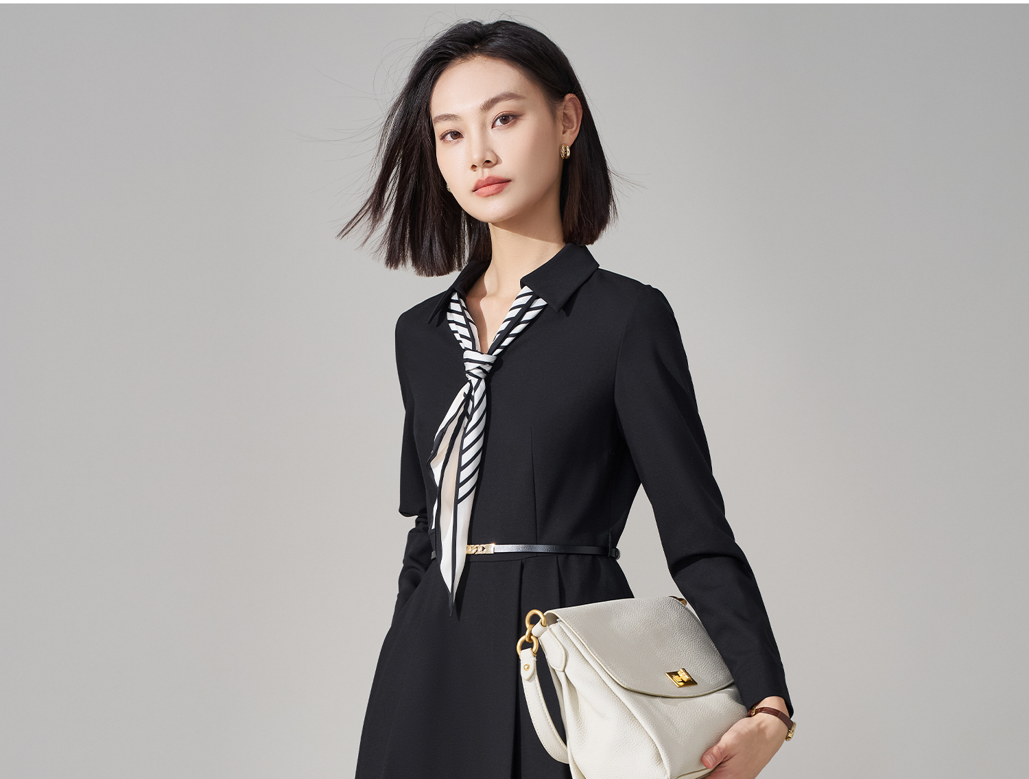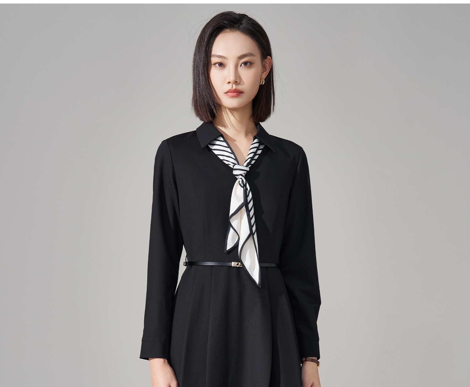 剩S/M/L 米思阳2026春季新款气质女神范丝带衬衫裙天丝醋酸羊毛混纺连衣裙4927