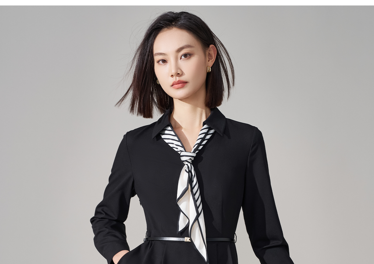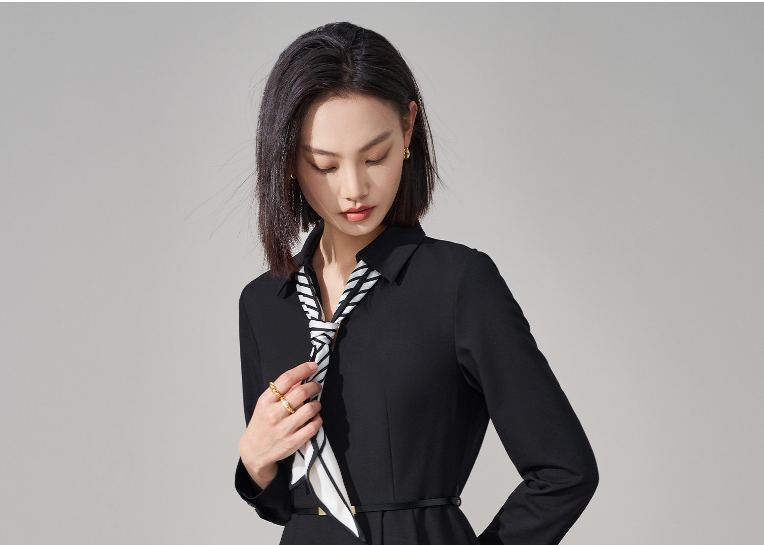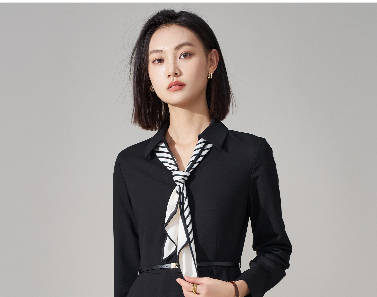 剩S/M/L 米思阳2026春季新款气质女神范丝带衬衫裙天丝醋酸羊毛混纺连衣裙4927