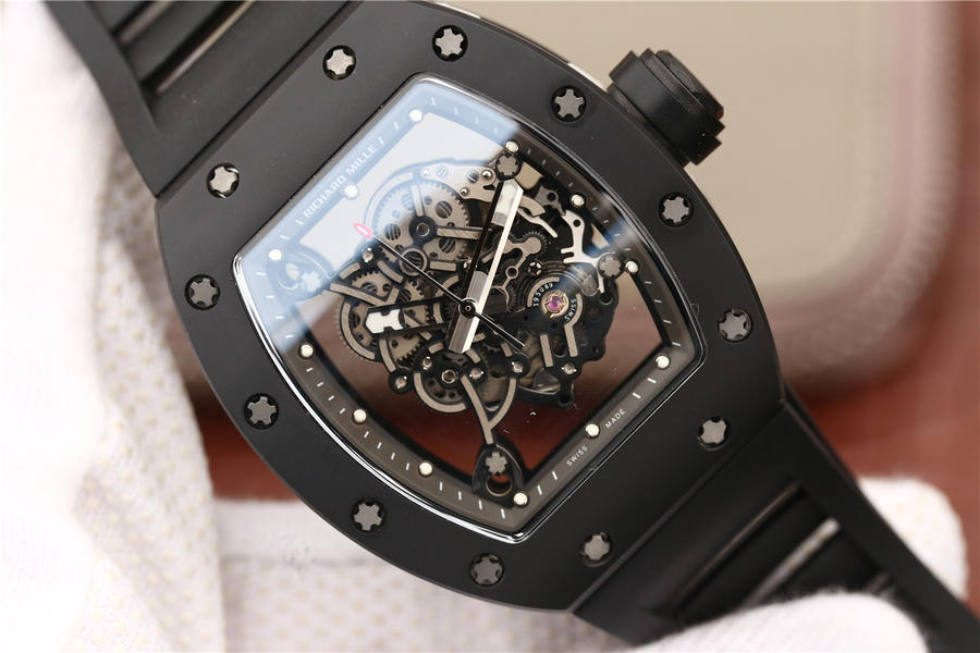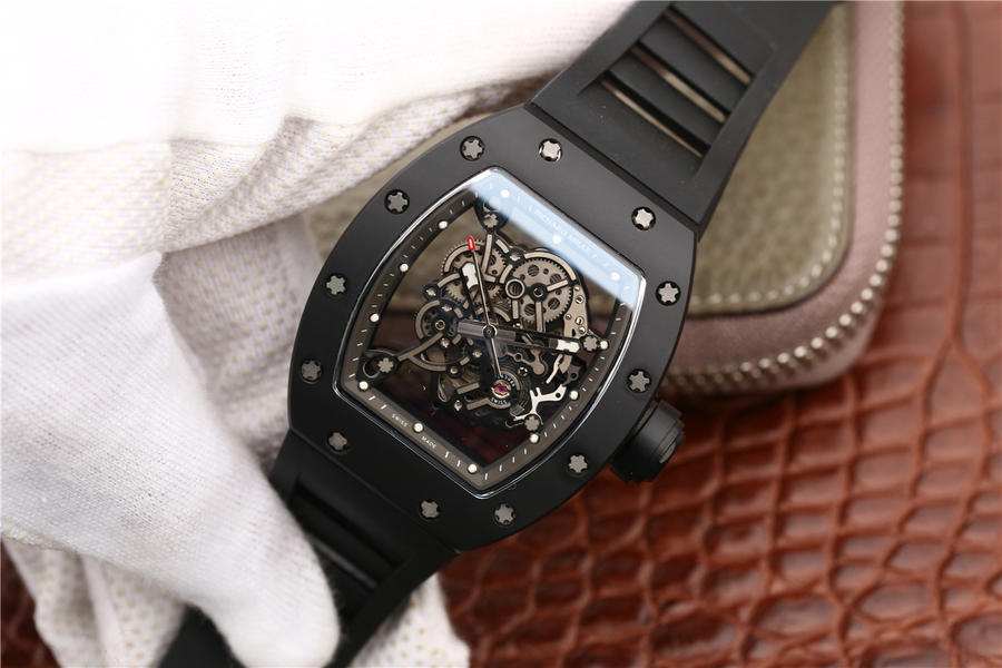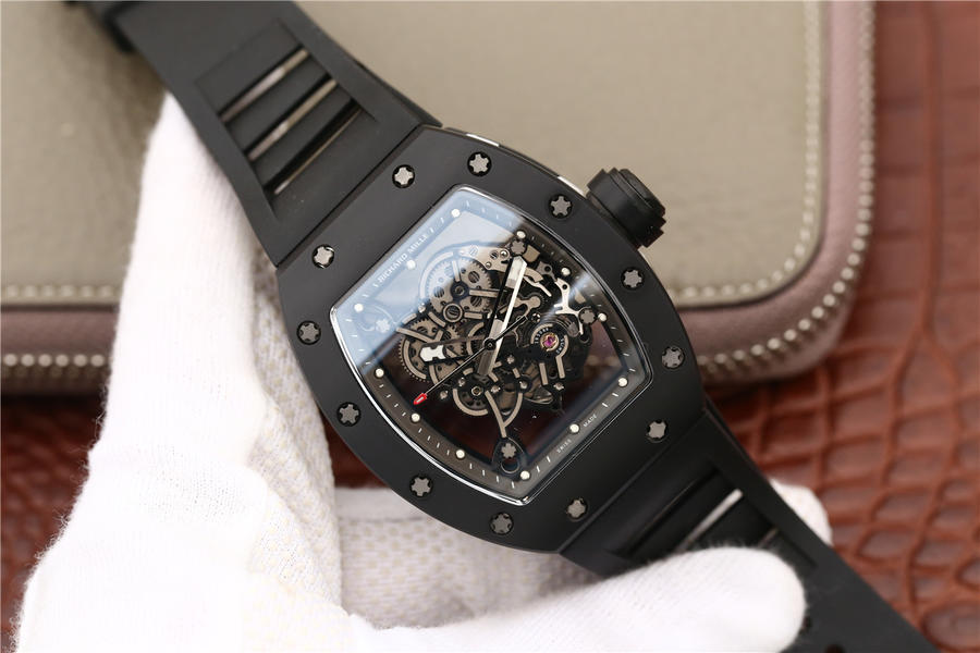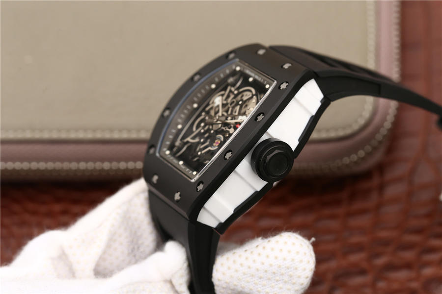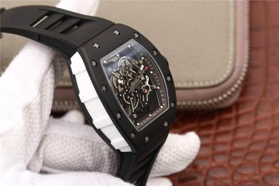 KV理查德米勒 RM 055 陶瓷腕表 经典酒桶造型表身 镂空立体设计 男士腕表,硅胶表带,自动机械机芯,透底