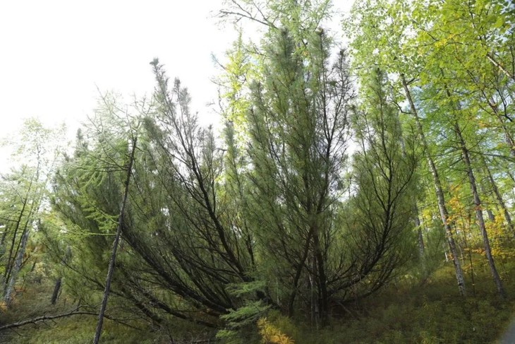 大兴安岭全域是寒温带针叶、阔叶混交林。偃松是大兴安岭稀有树种,只生长在最冷的伊勒呼里山巅、山坡地段。平均海拔800-1400米可以看见偃松,当地也叫“马尾松”。