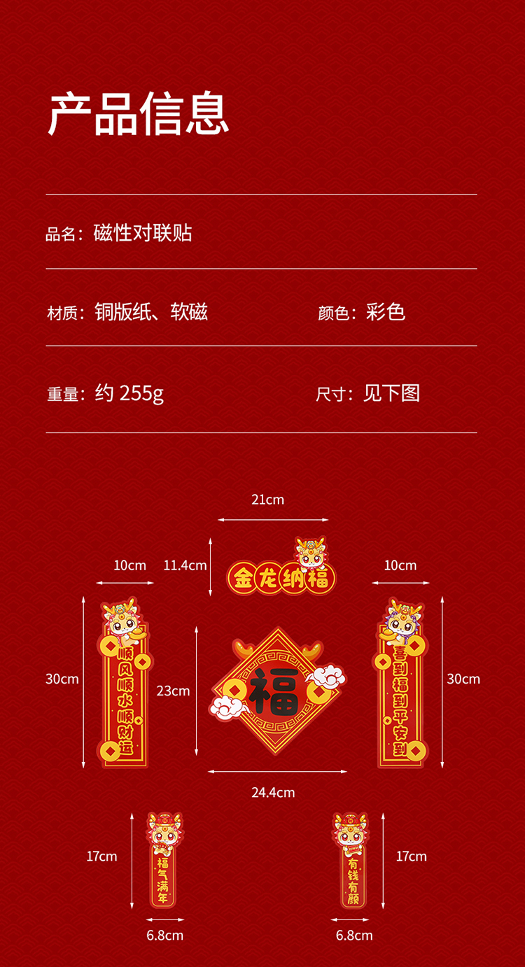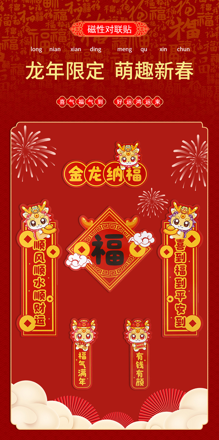FaSoLa2024新年龙年磁吸对联春节可爱卡通福字迷你春联