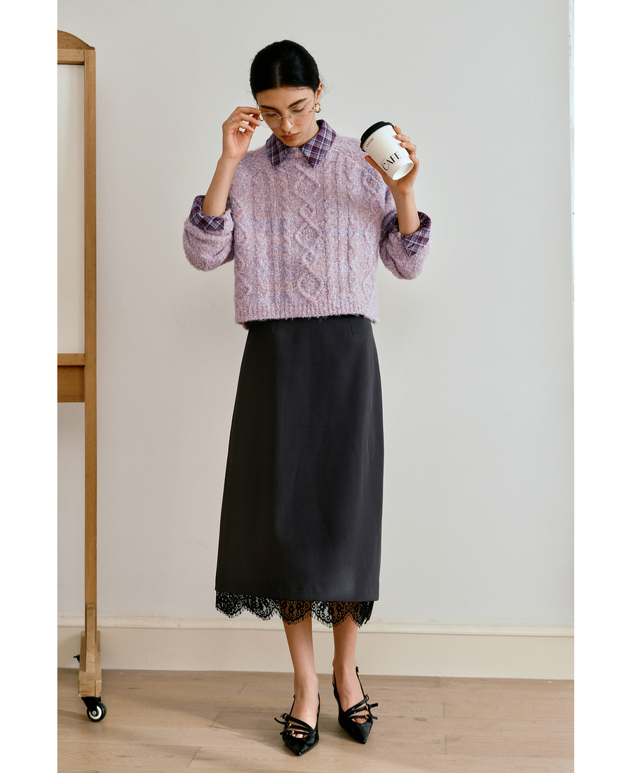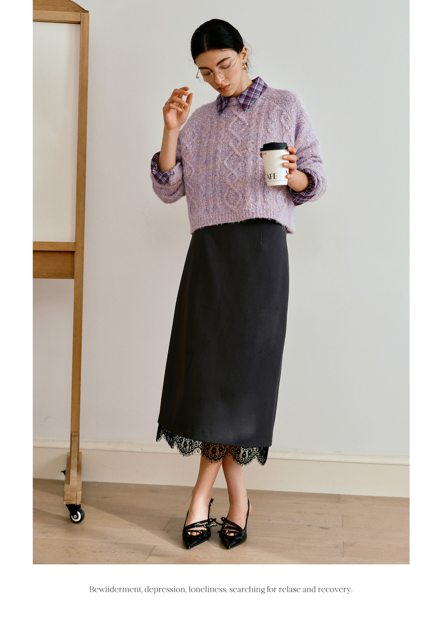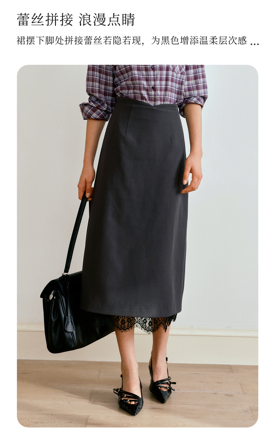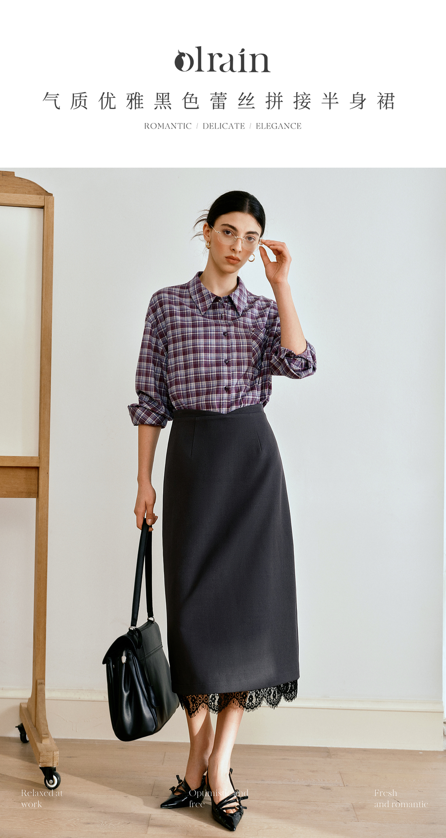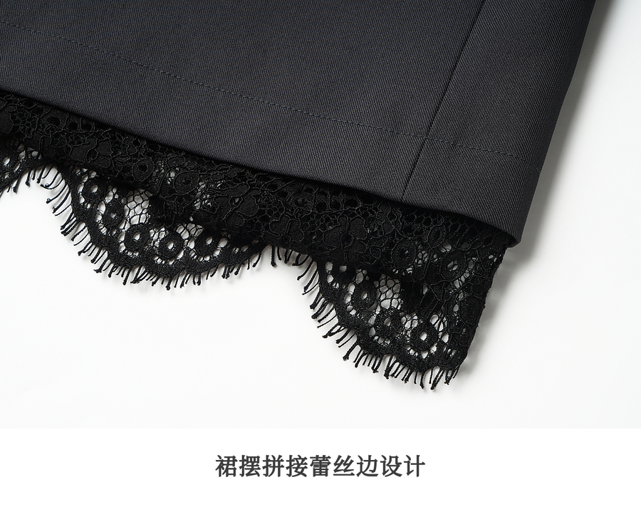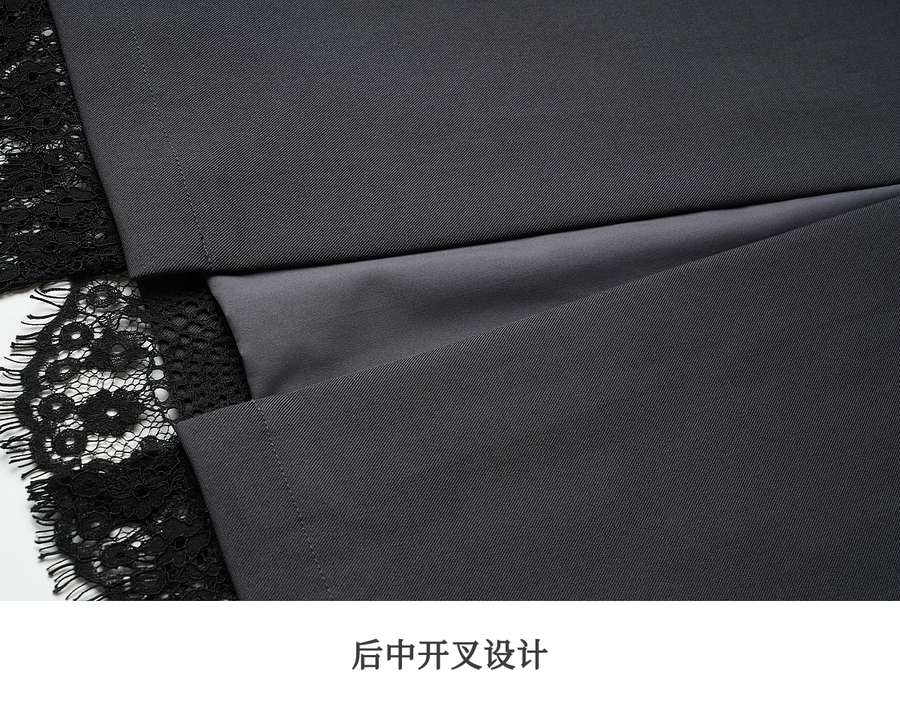 OLrain欧芮儿简约中长裙女2025秋季新款灰色拼接蕾丝设计感半身裙