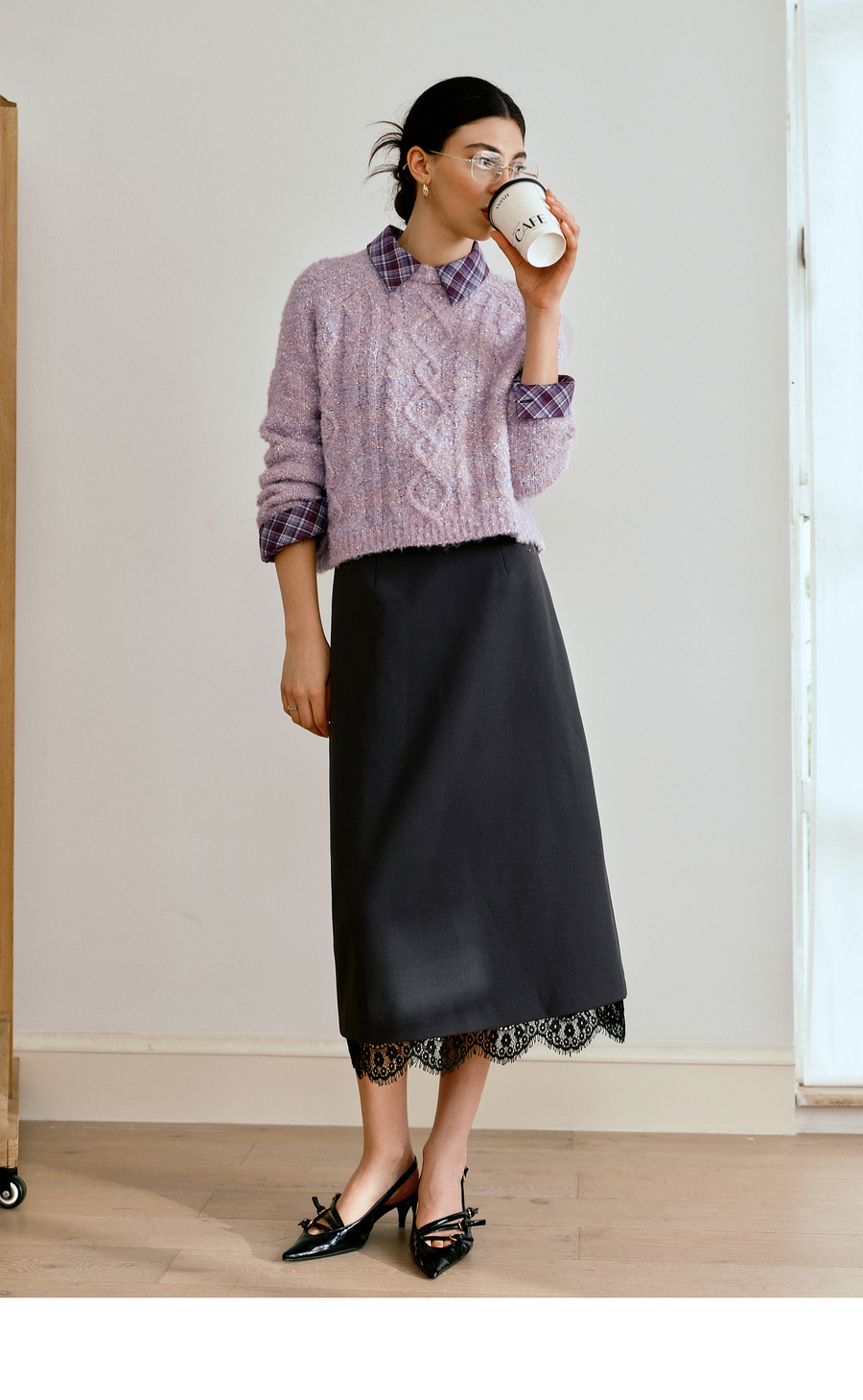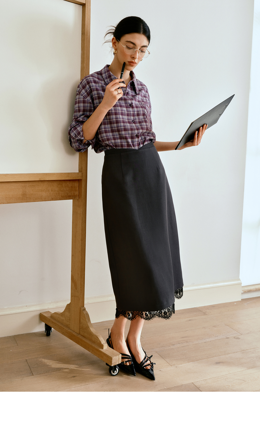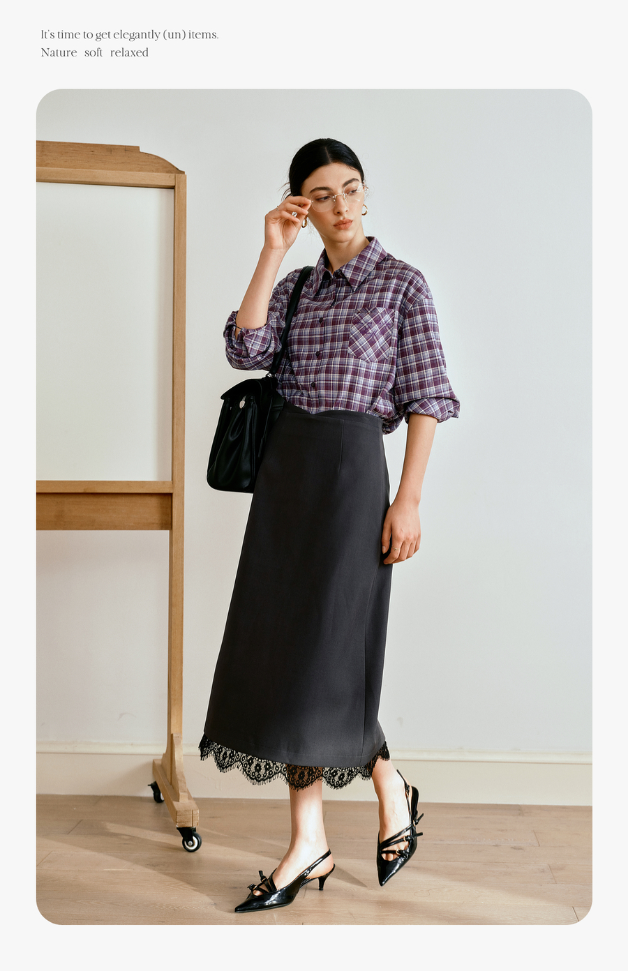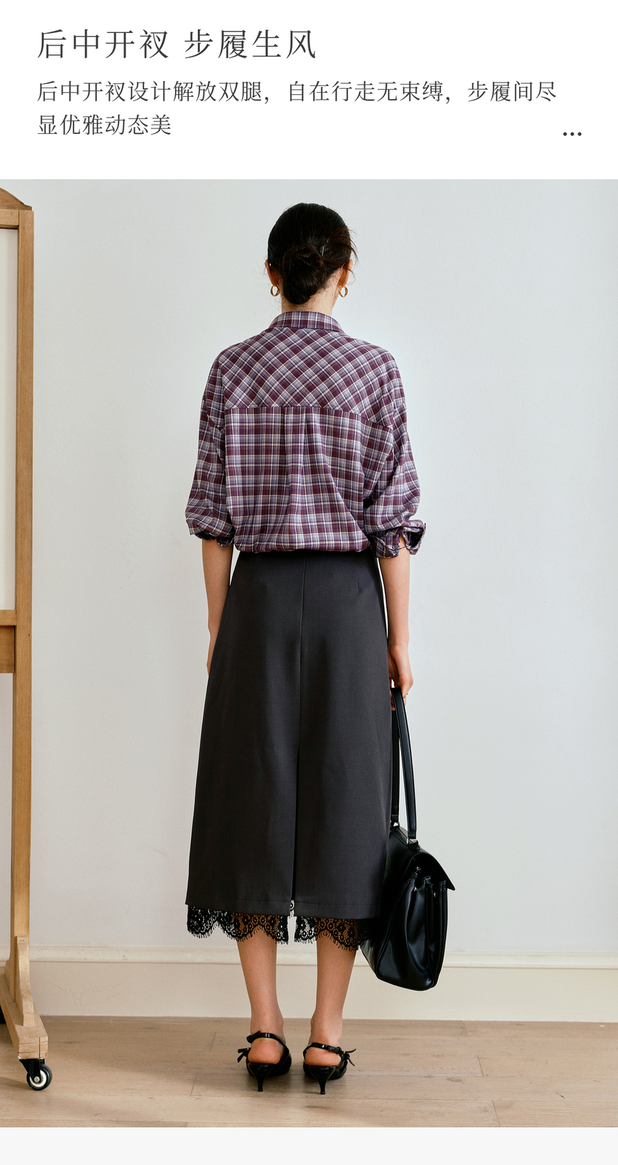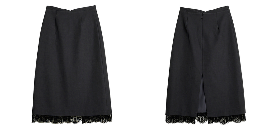OLrain欧芮儿简约中长裙女2025秋季新款灰色拼接蕾丝设计感半身裙