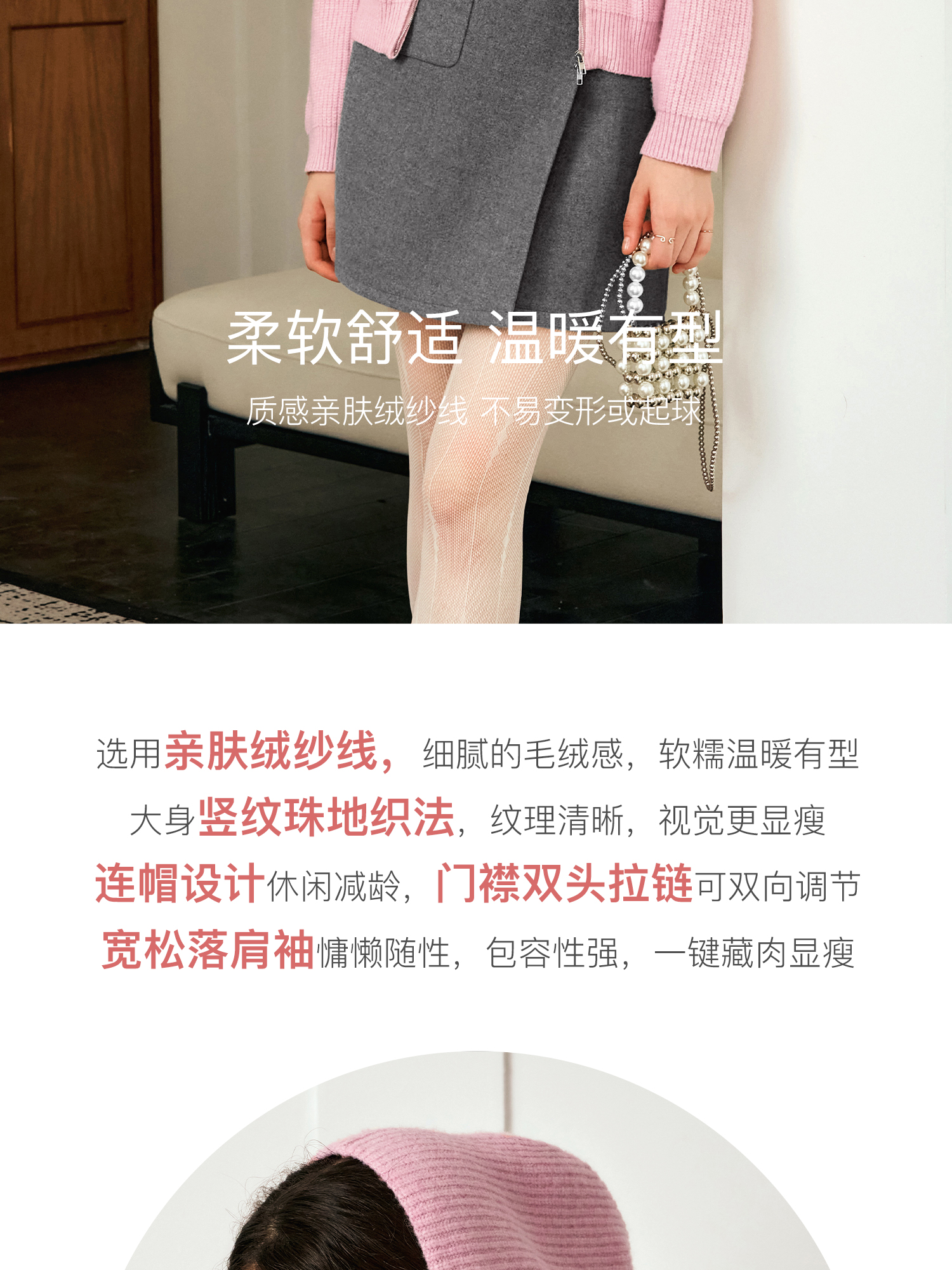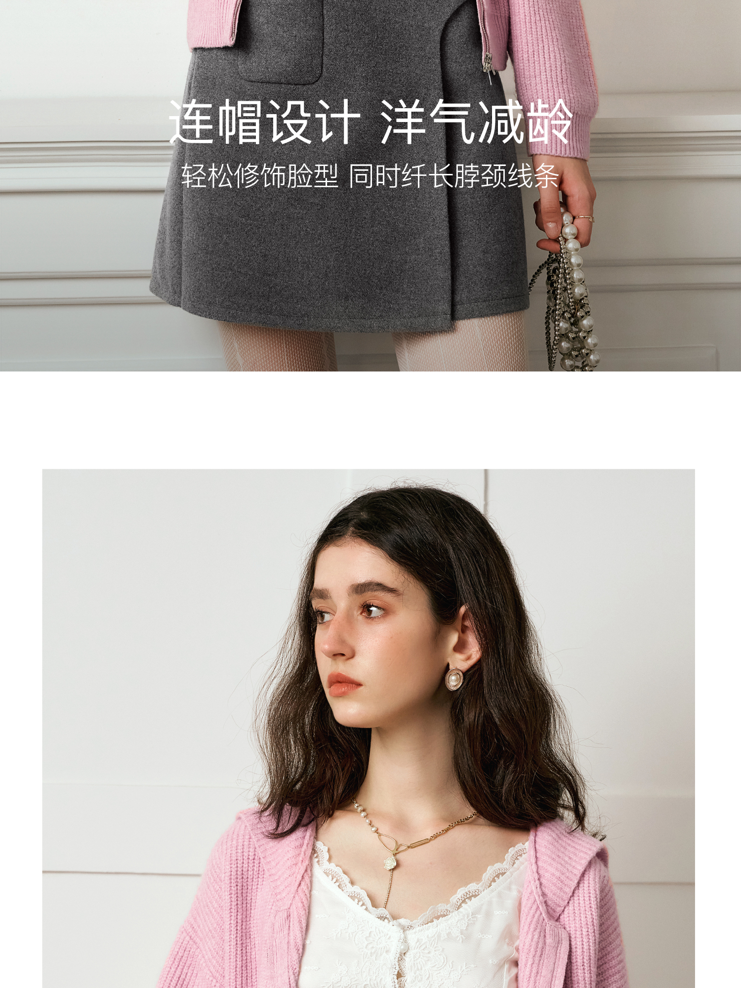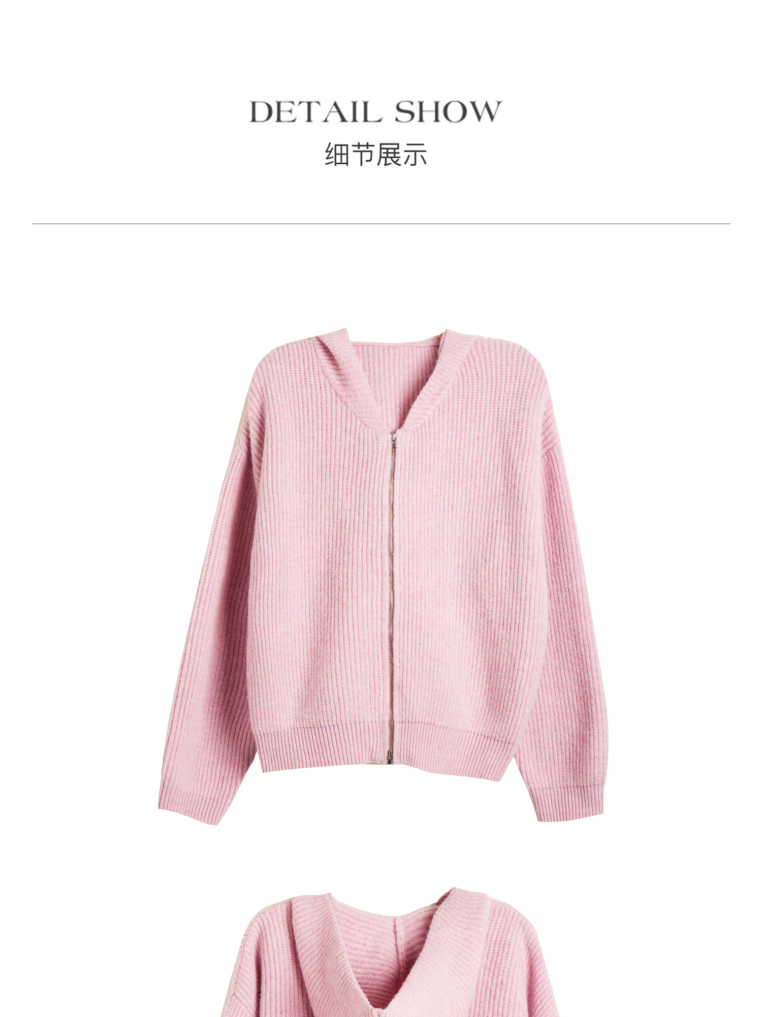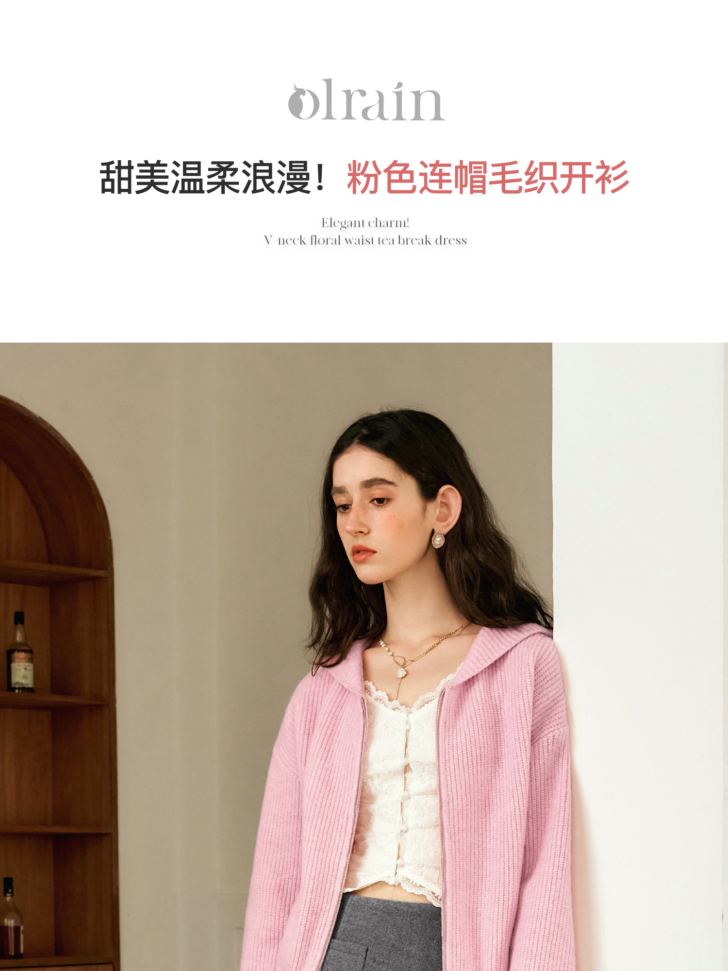 欧芮儿粉色连帽毛织开衫甜美温柔风