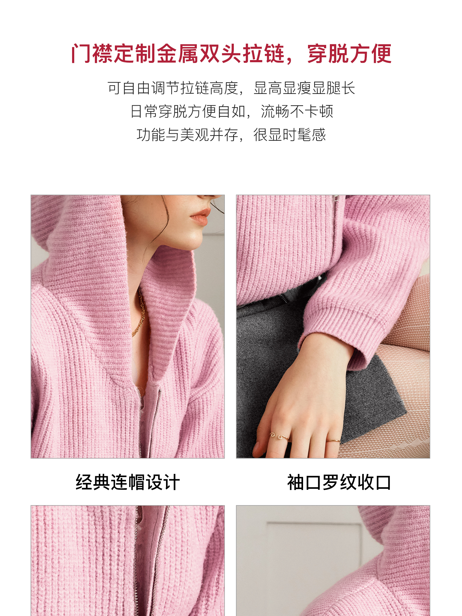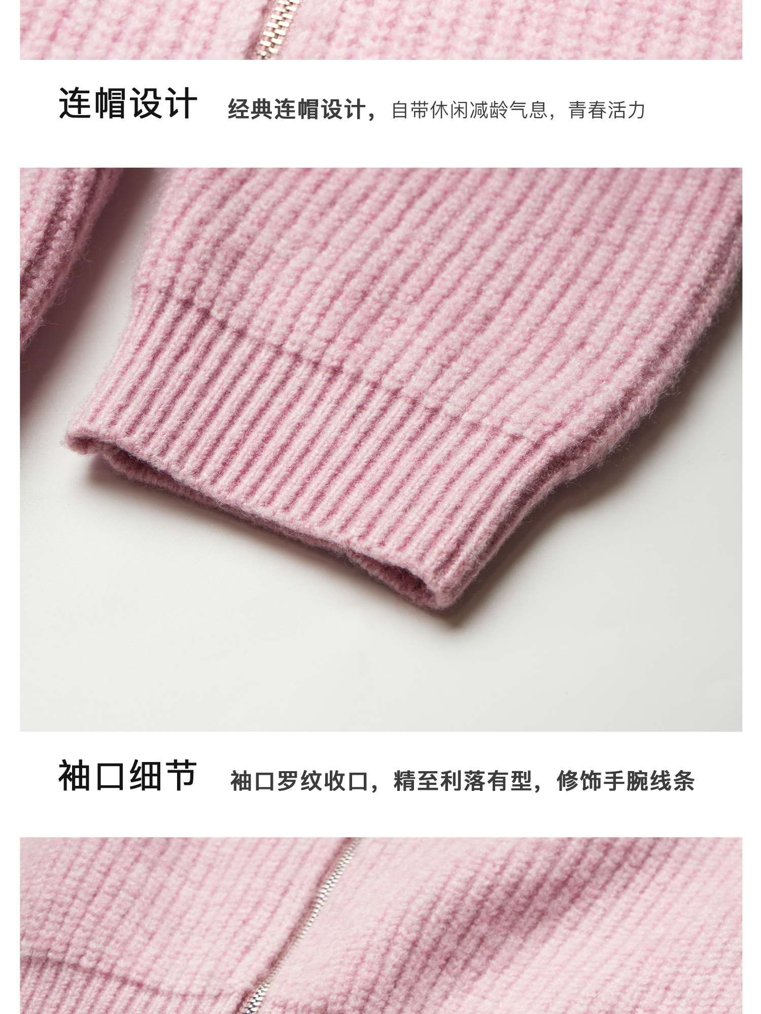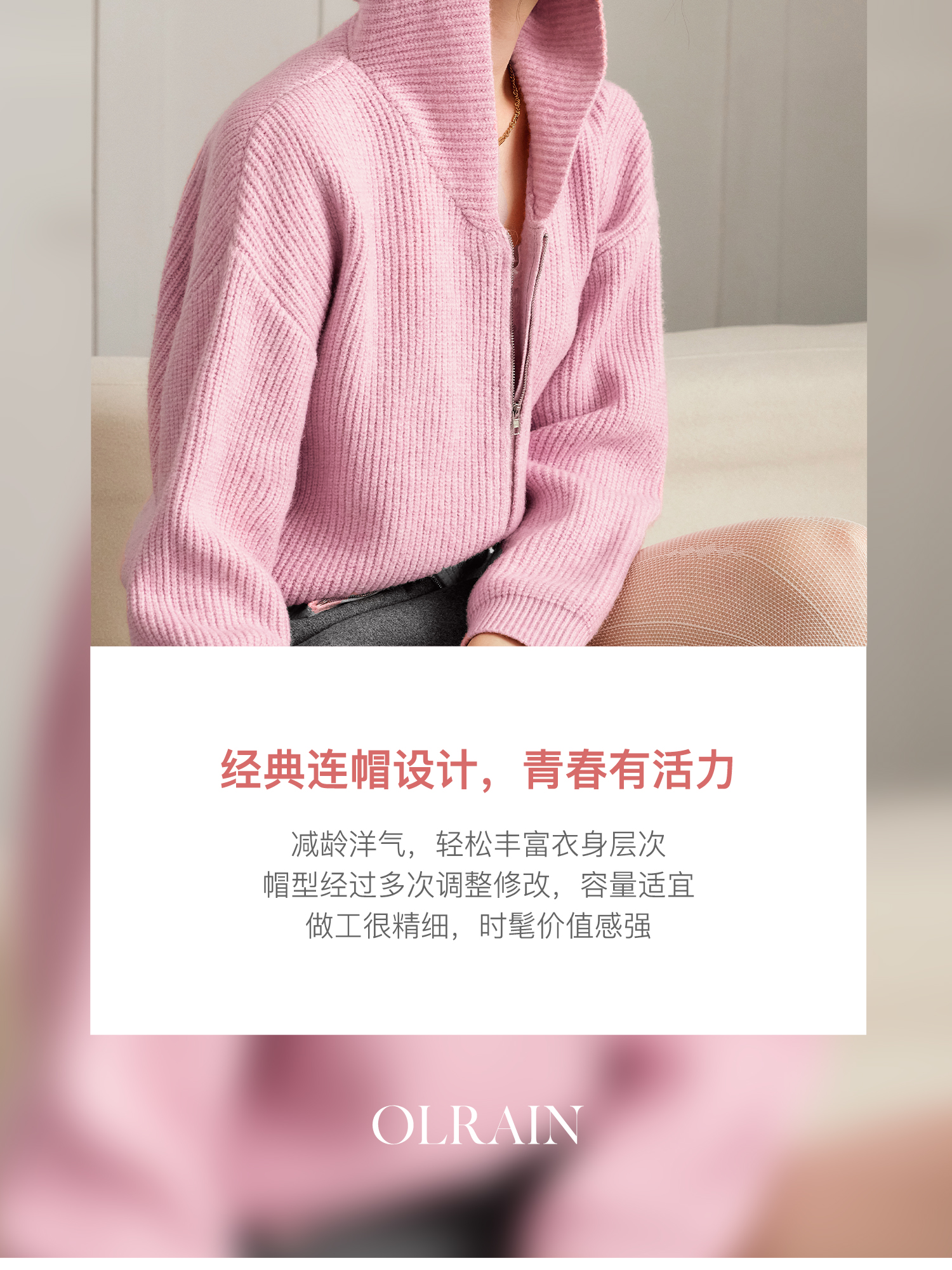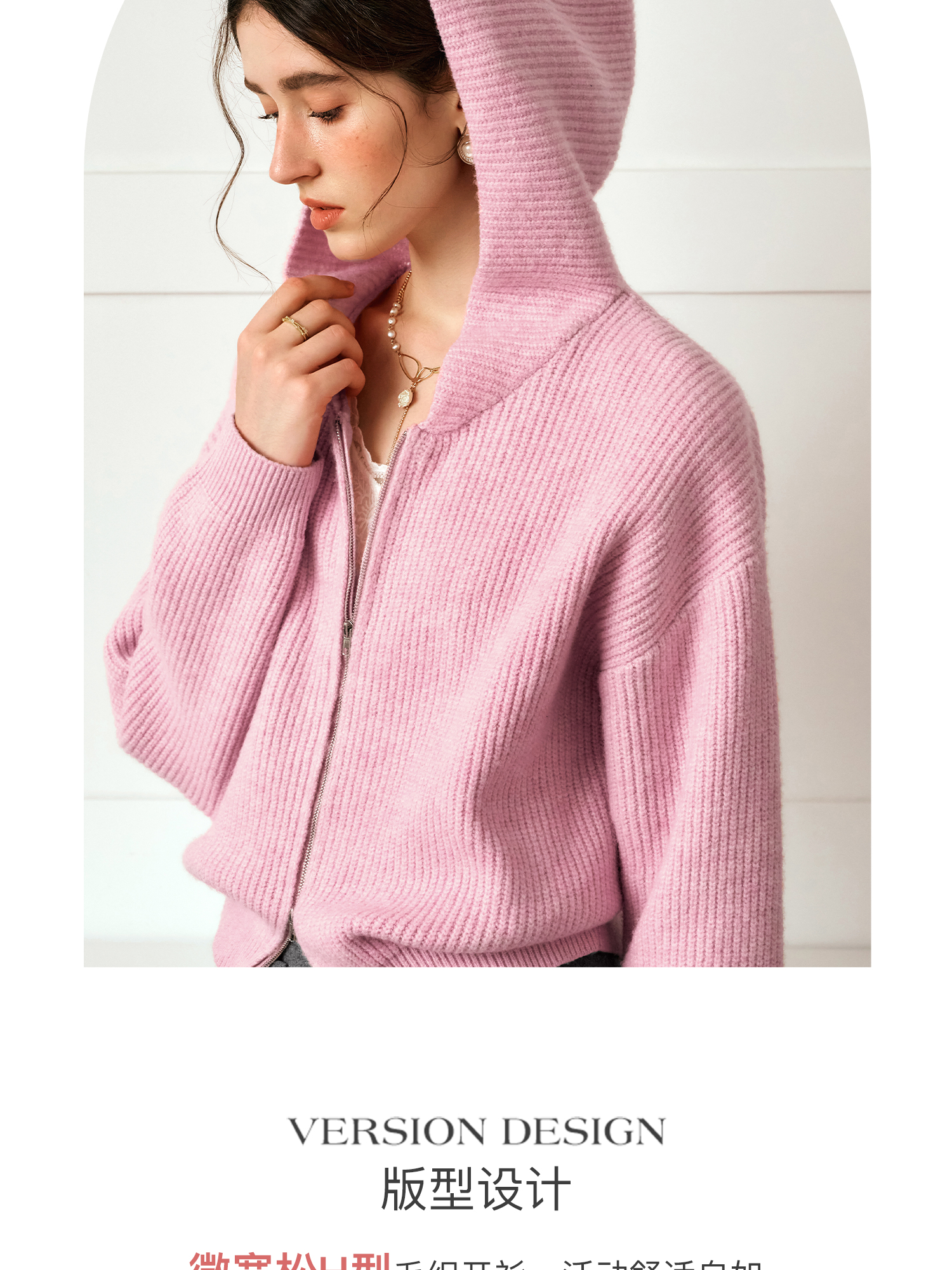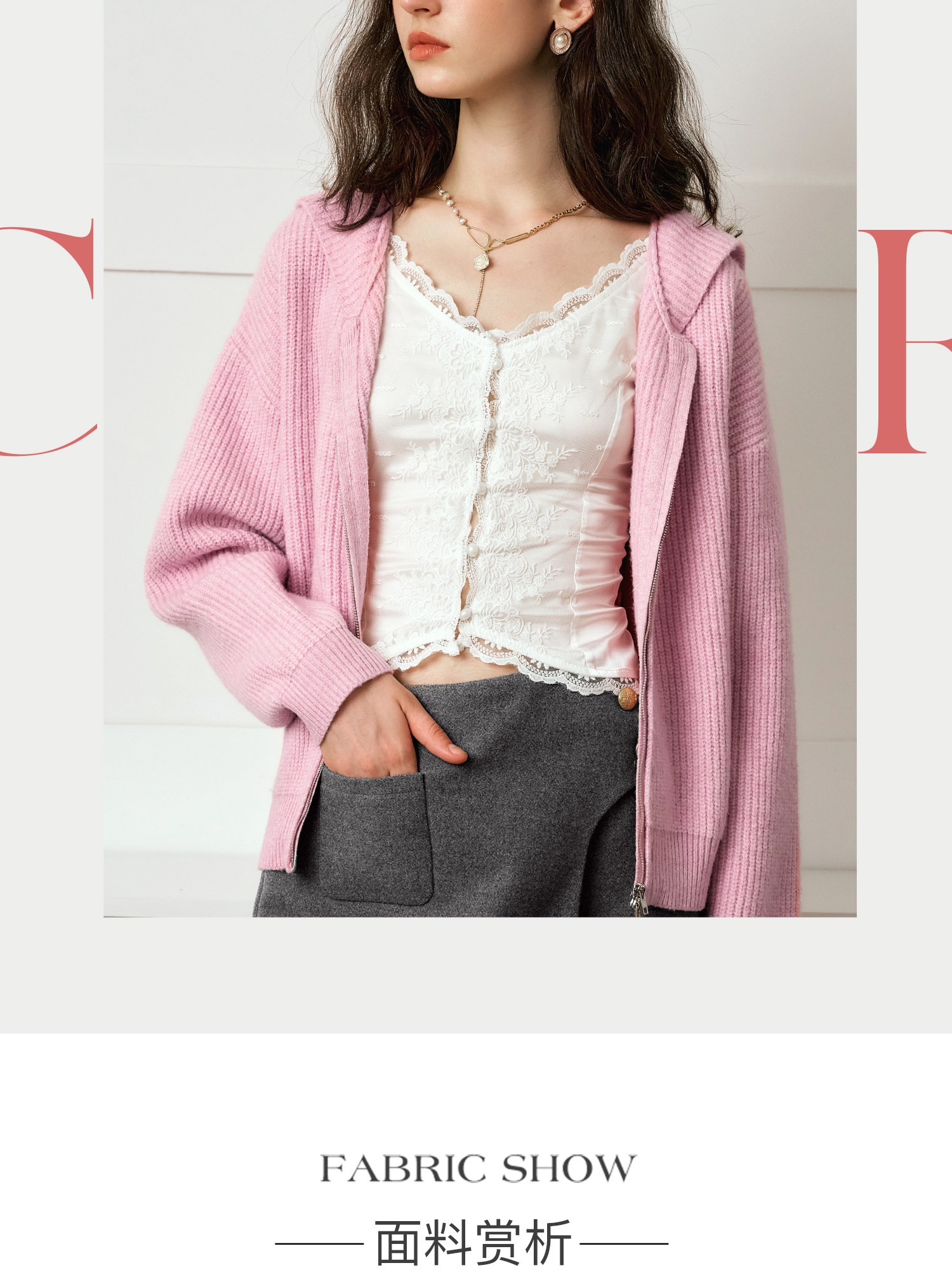 欧芮儿粉色连帽毛织开衫甜美温柔风