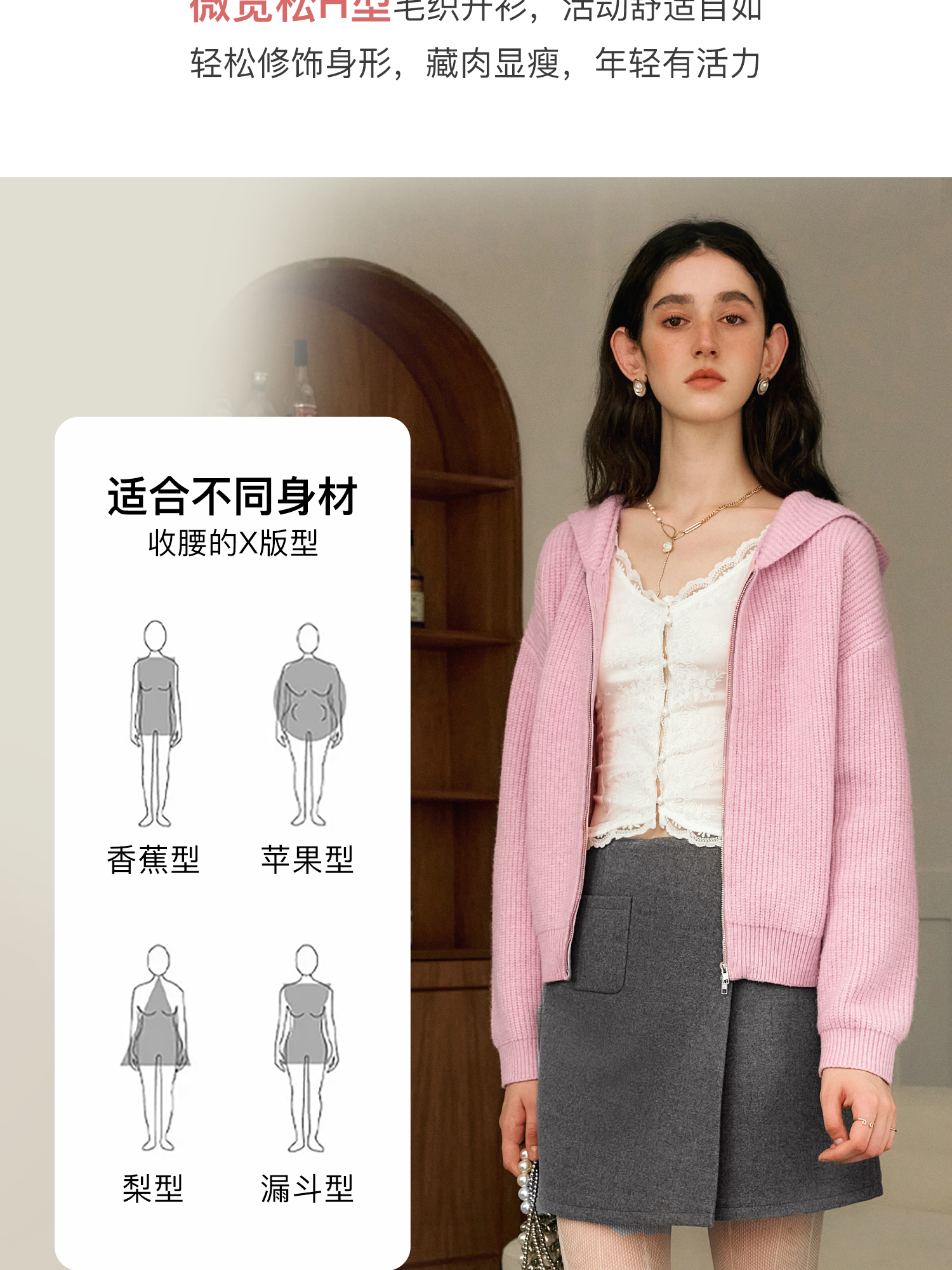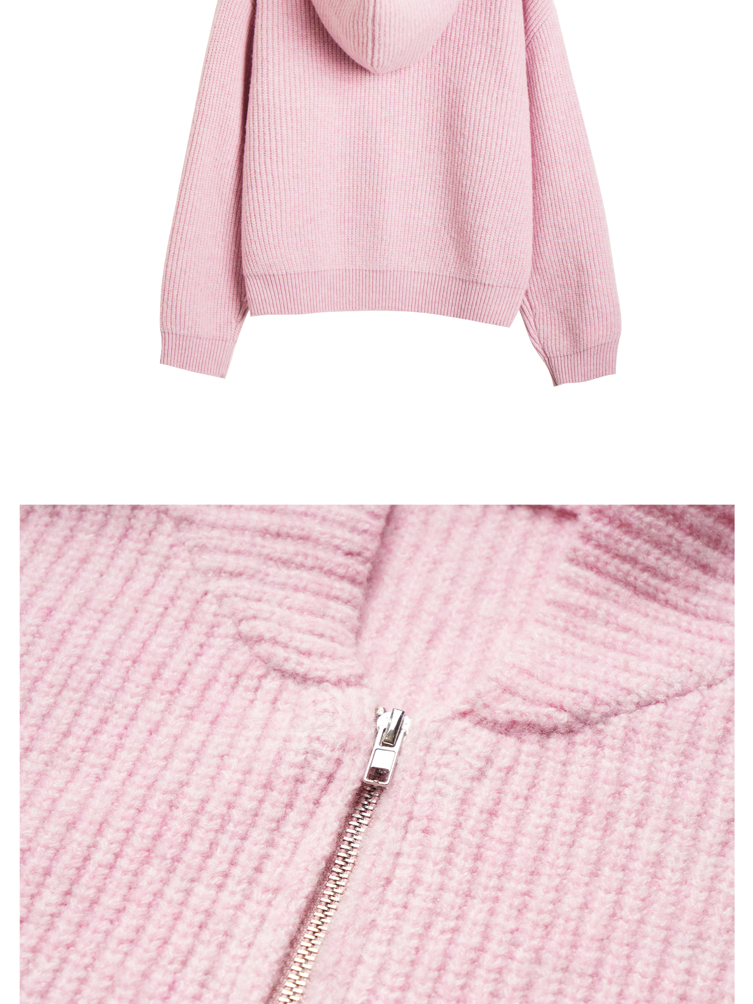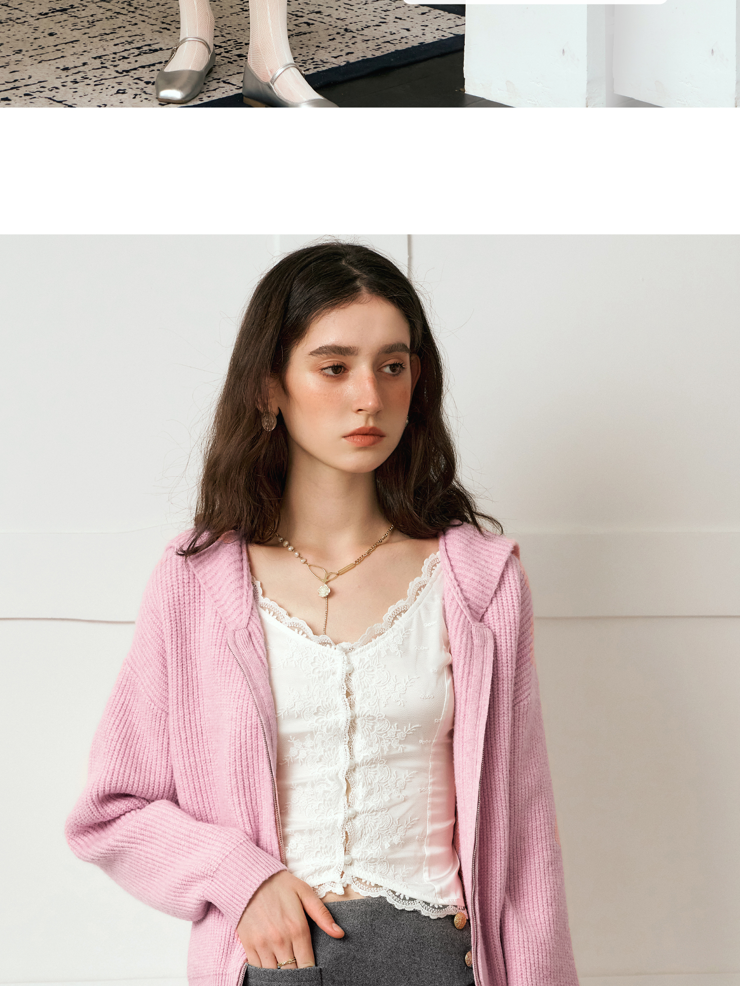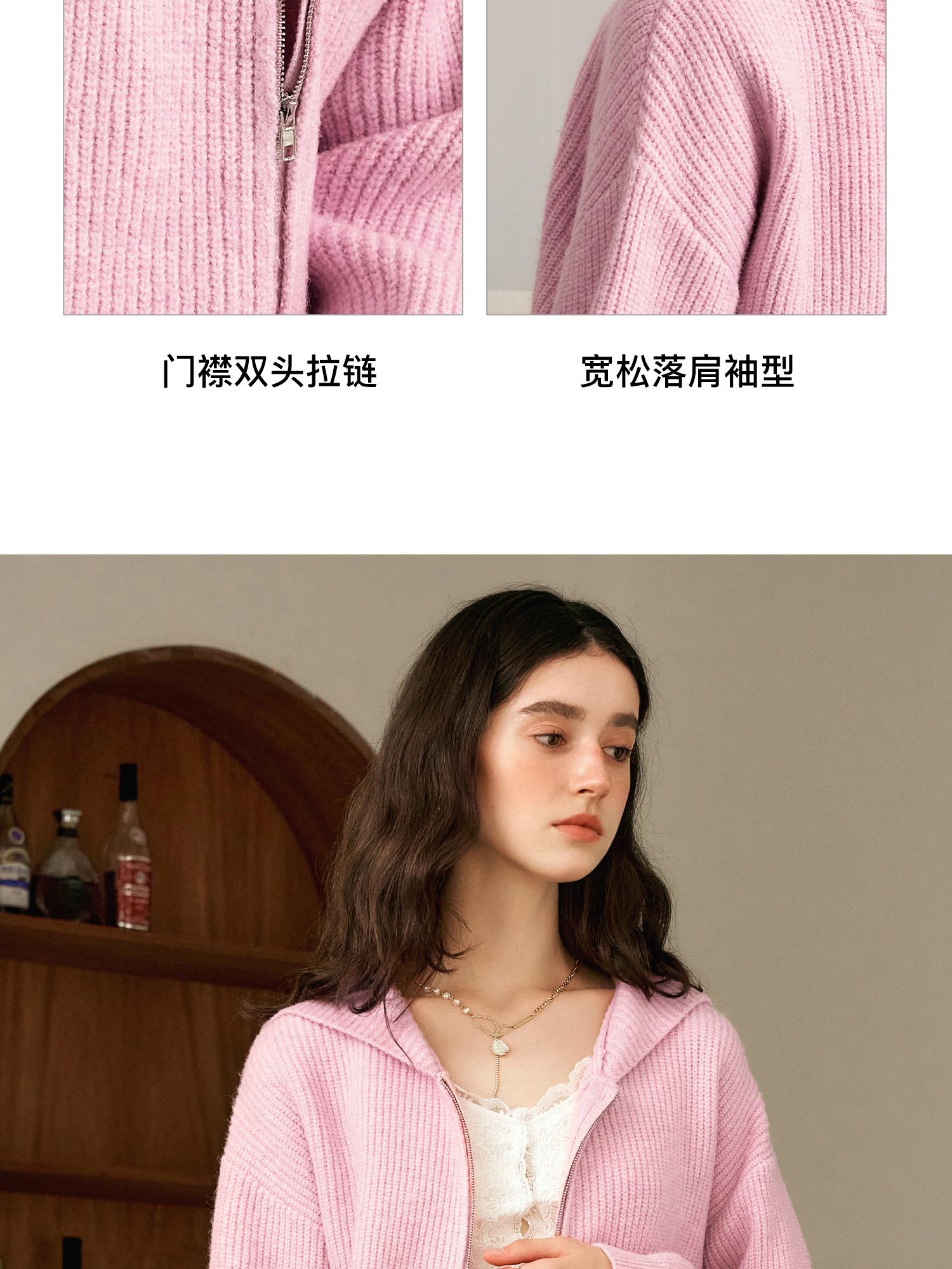 欧芮儿粉色连帽毛织开衫甜美温柔风