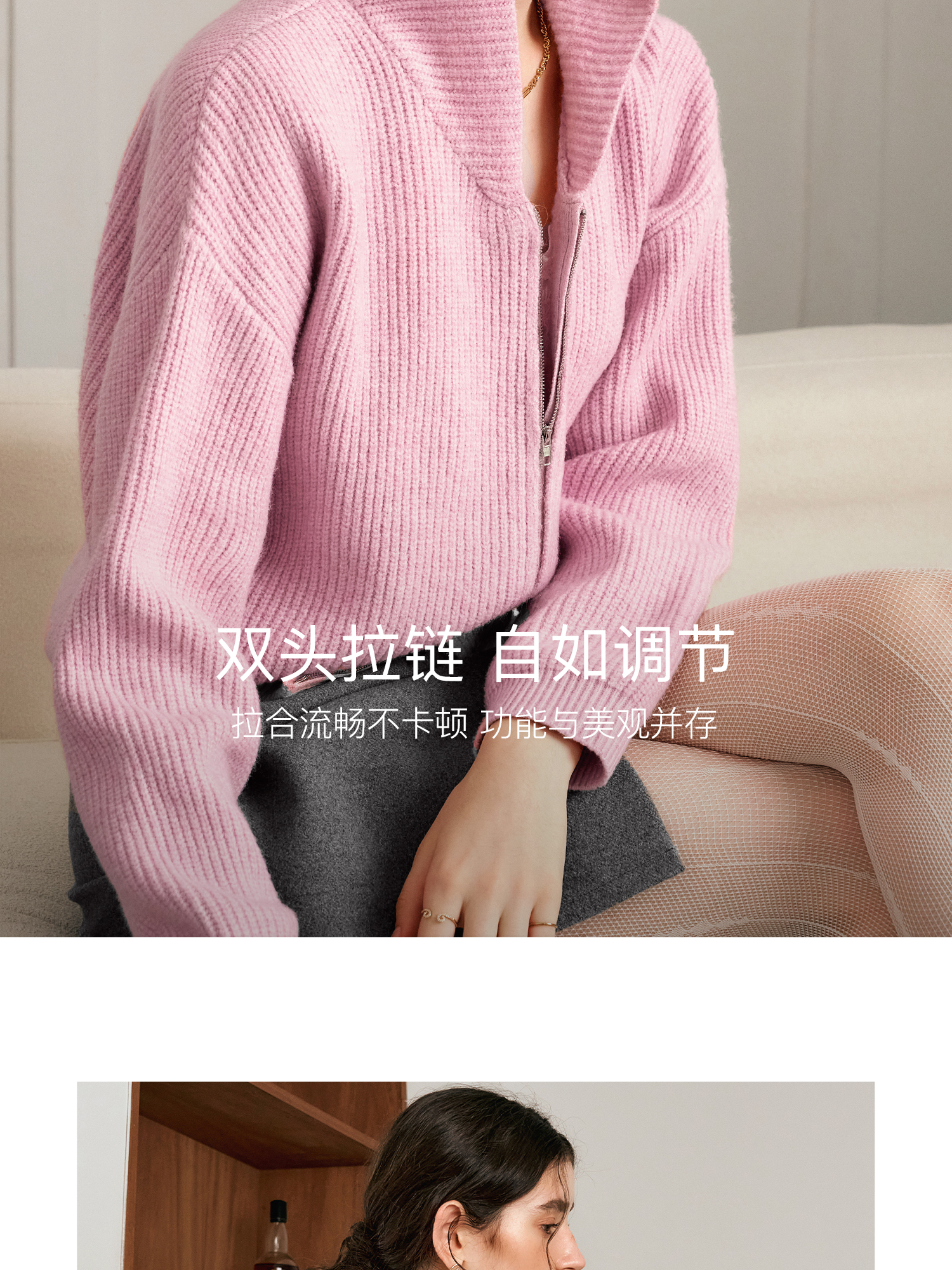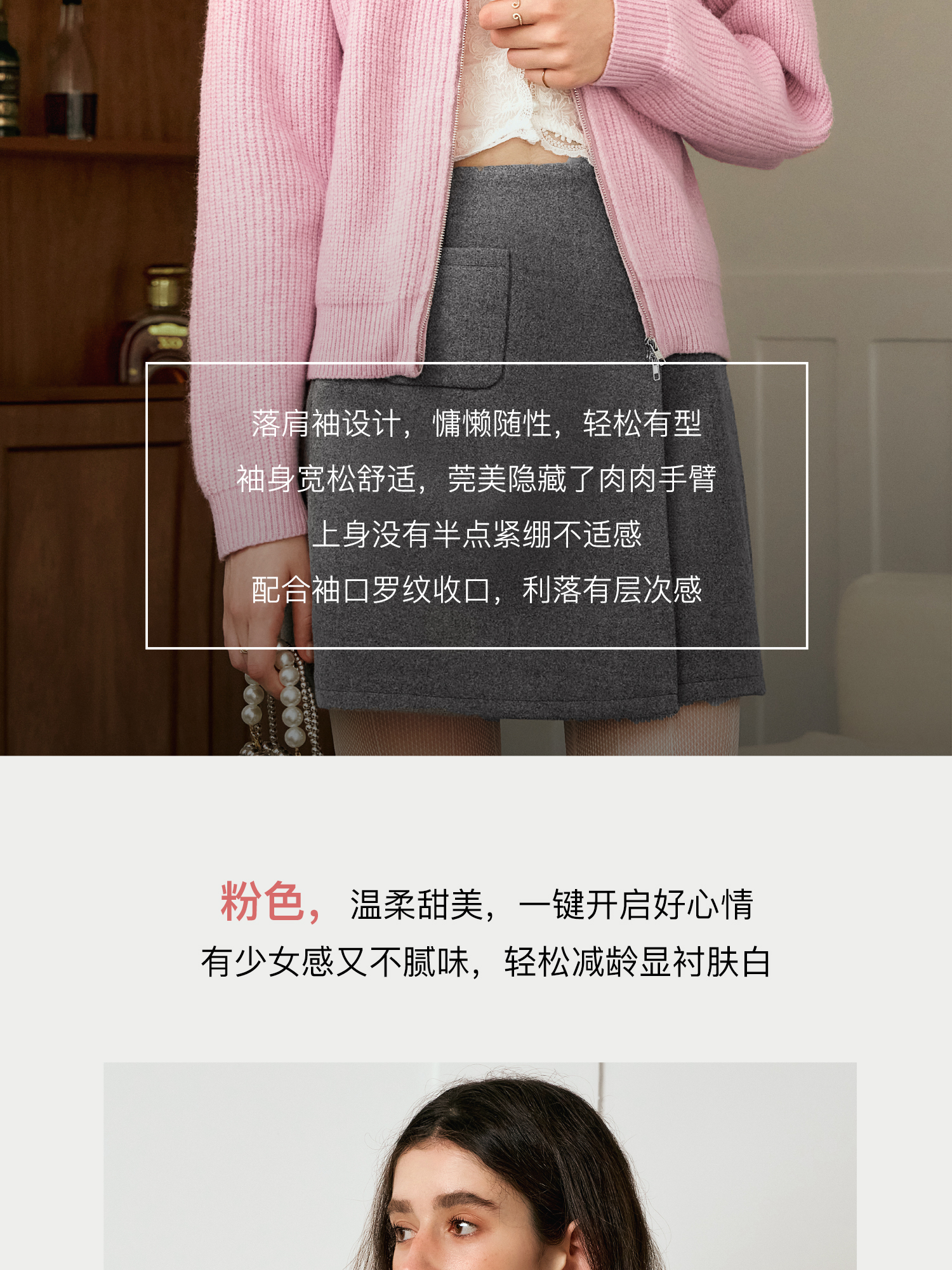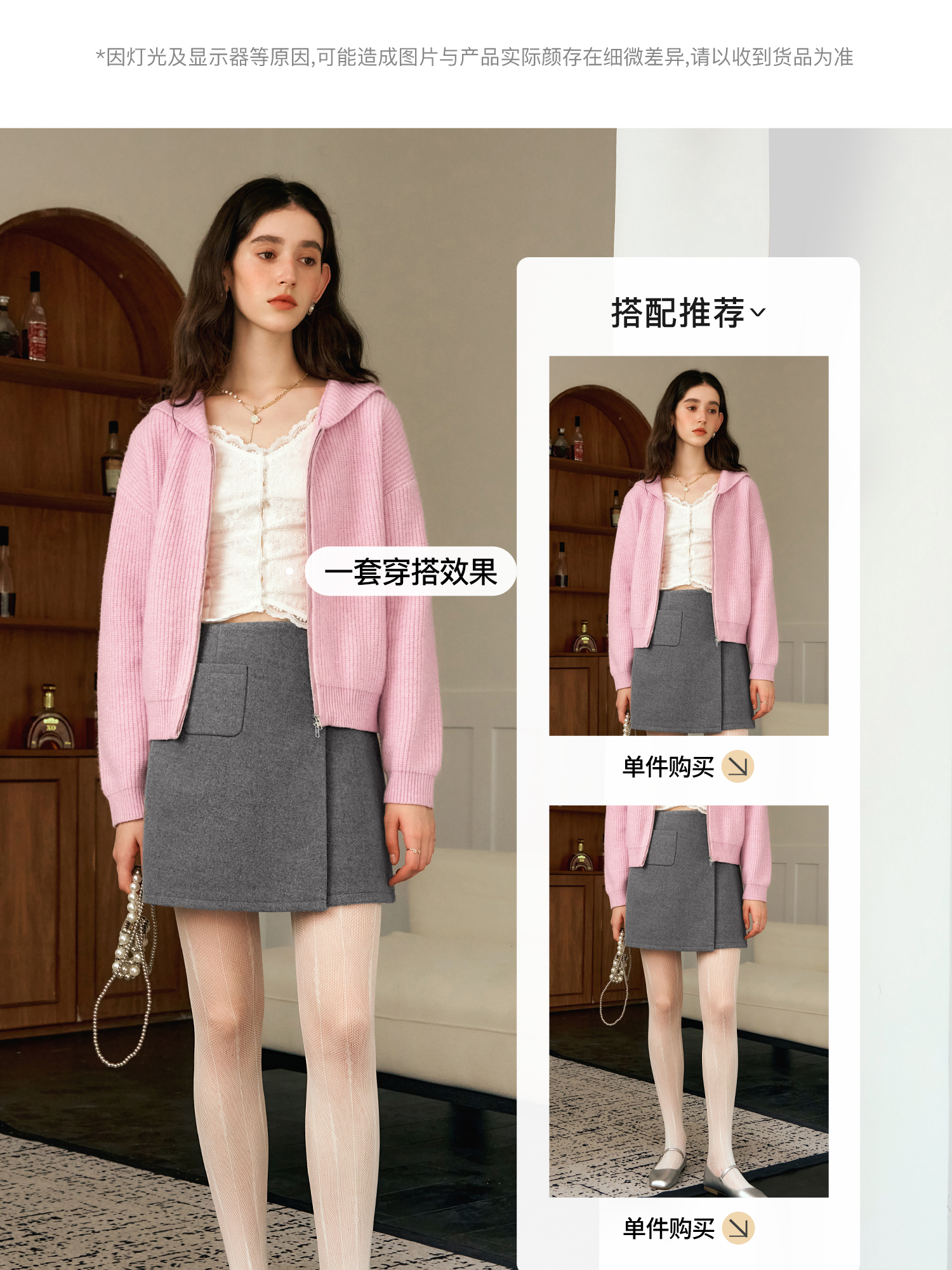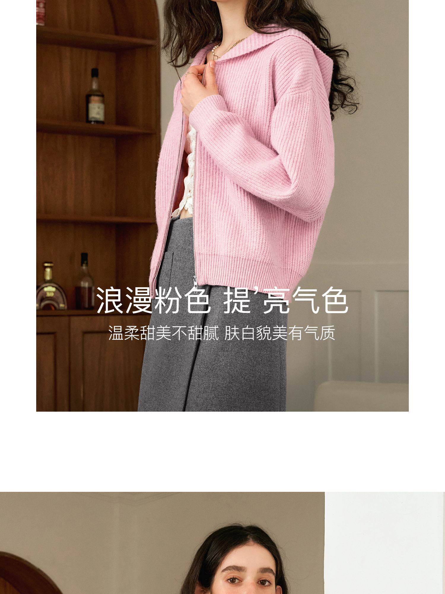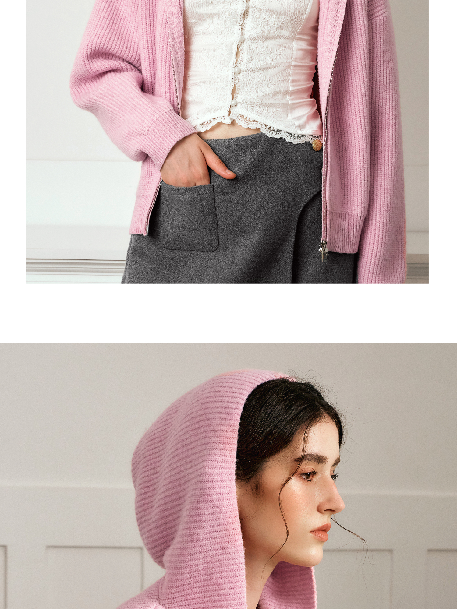 欧芮儿粉色连帽毛织开衫甜美温柔风