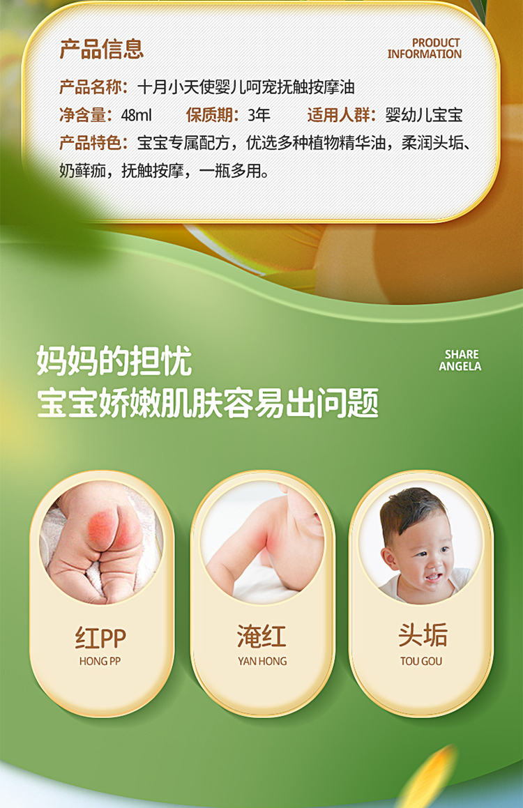 十月小天使 婴儿 呵宠抚触按摩油 48ml