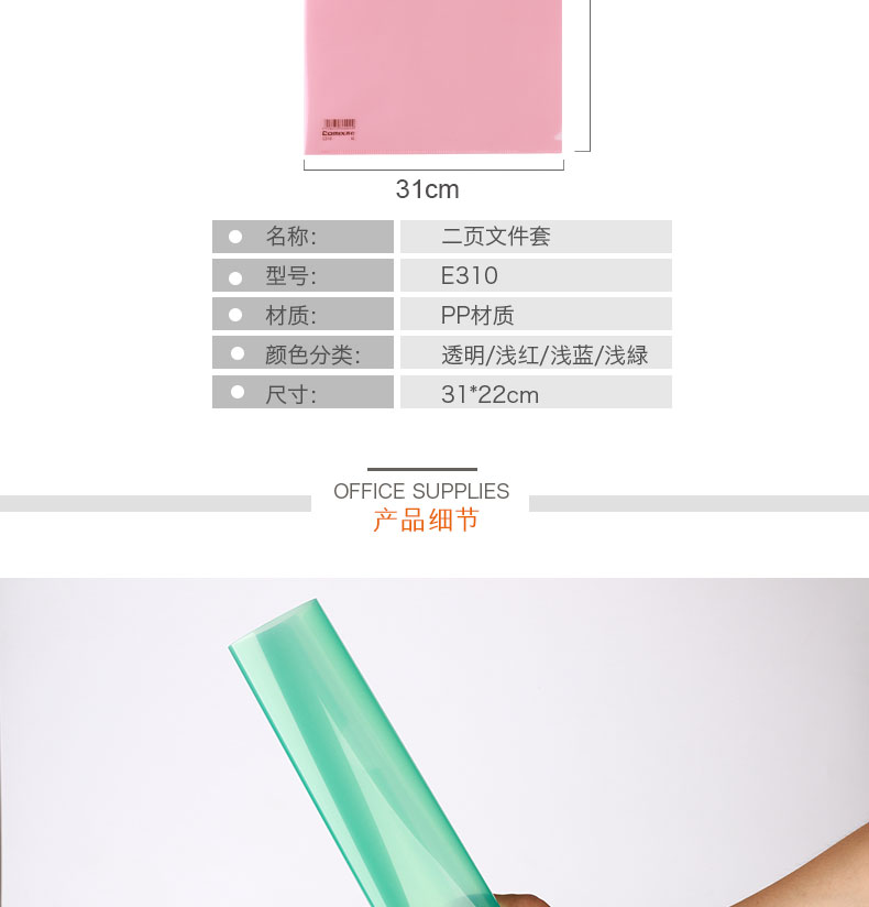 齐心PP保护套A4二页/E310/透明