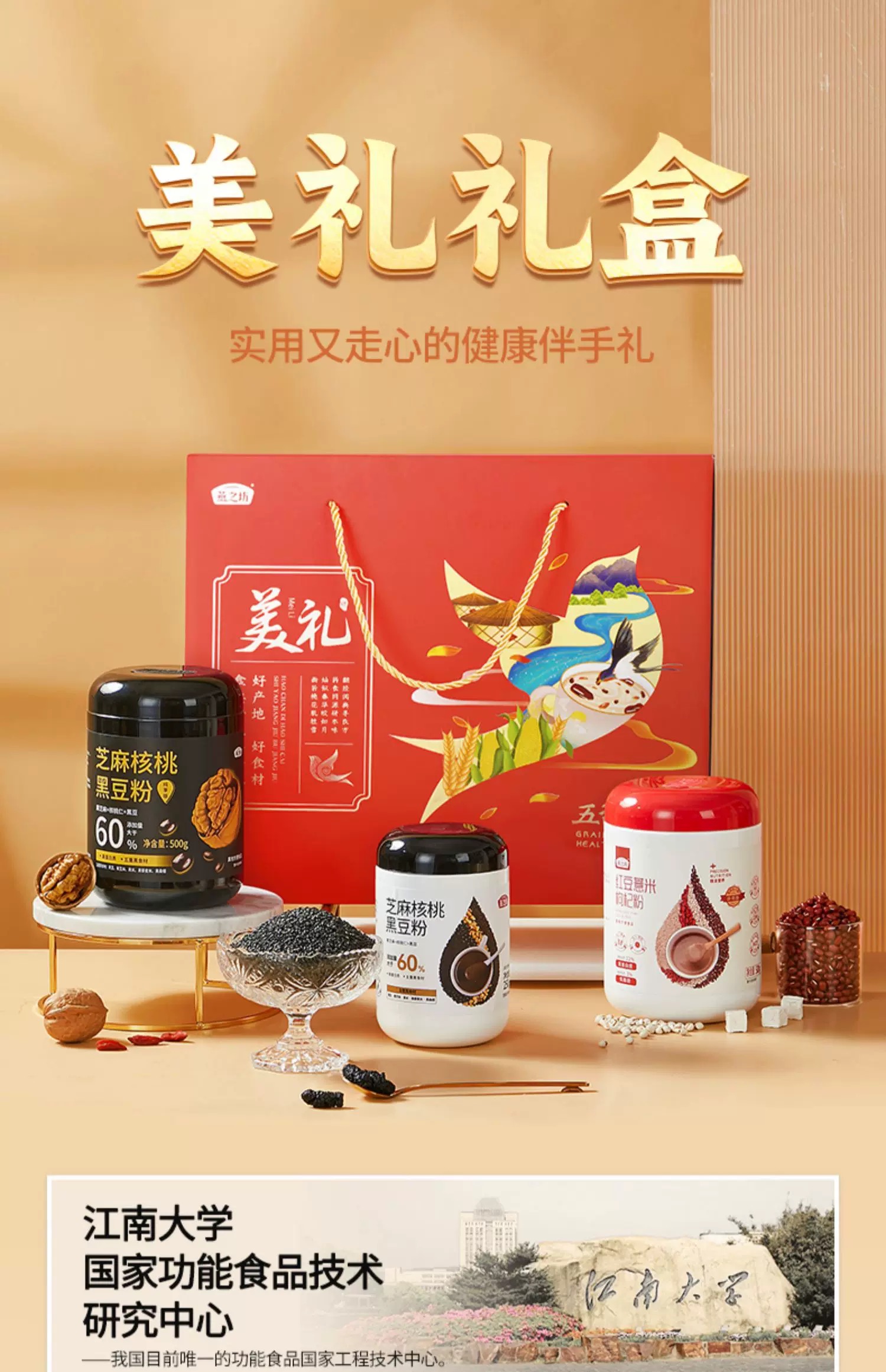 燕之坊 美礼1.25kg (红豆薏米枸杞粉500g +芝麻核桃黑豆粉500g+芝麻核桃黑豆粉250g )健康伴手礼 48小时发货