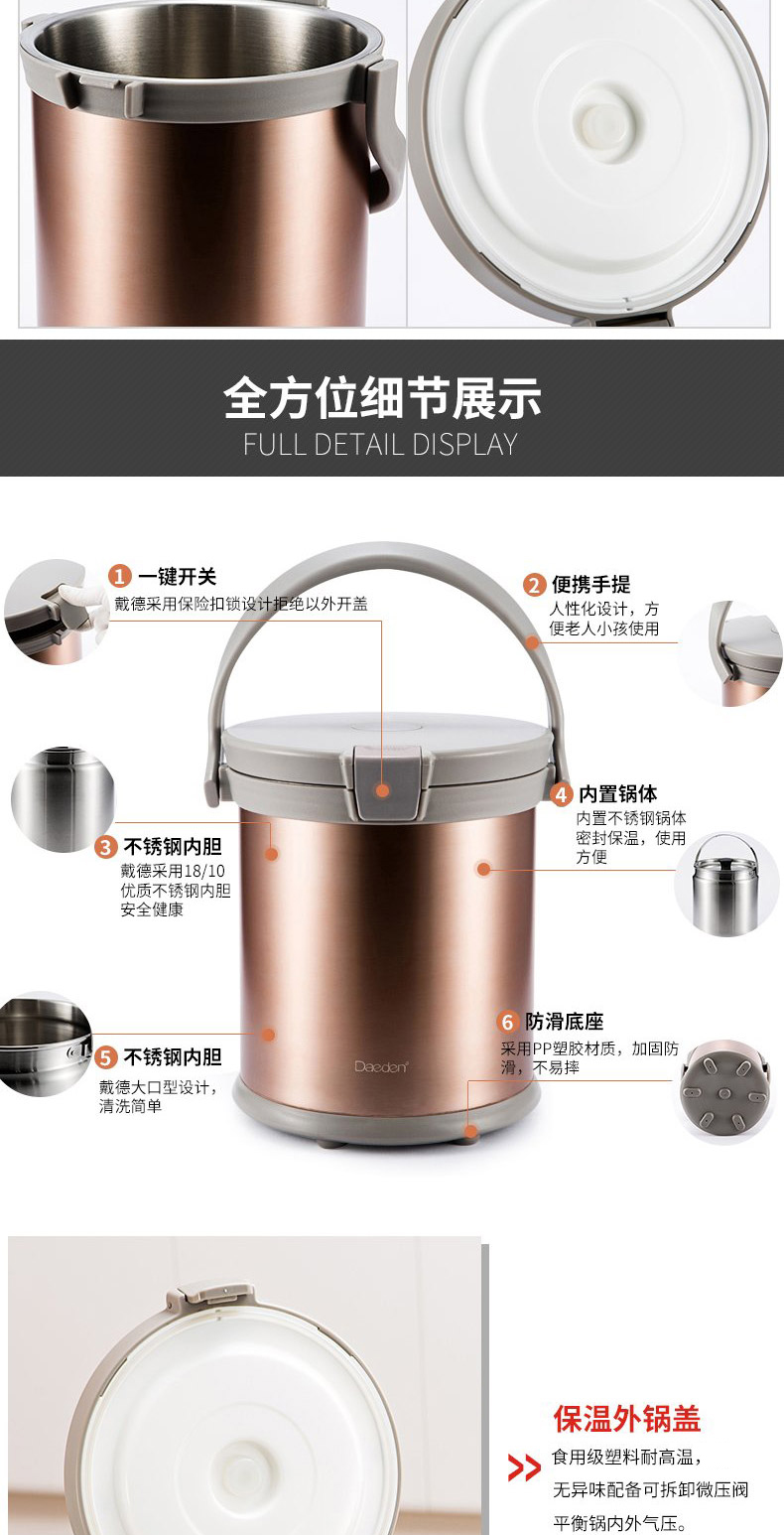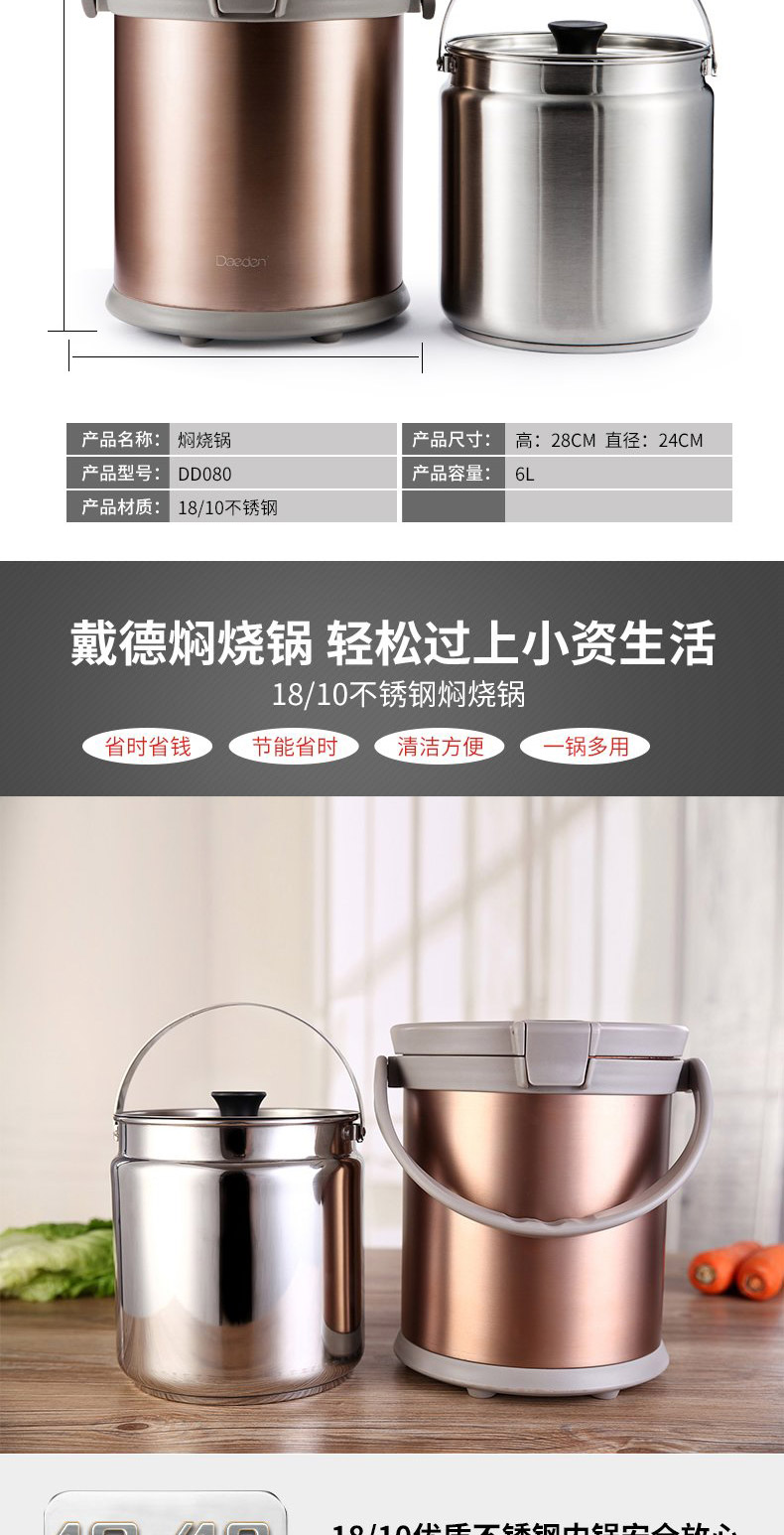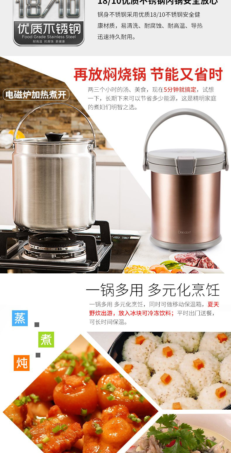 戴德 18/10不锈钢大容量焖烧锅便携耐高温腐蚀多功能保温焖壶