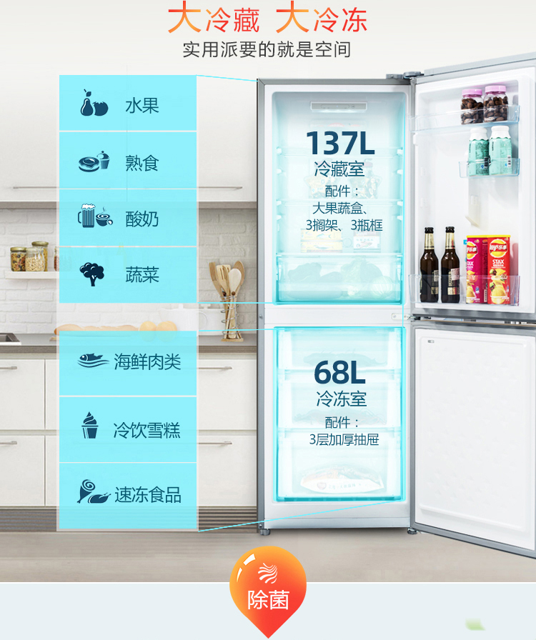 海信(Hisense)BCD-269WTDGVBP 冰箱 三门 风冷