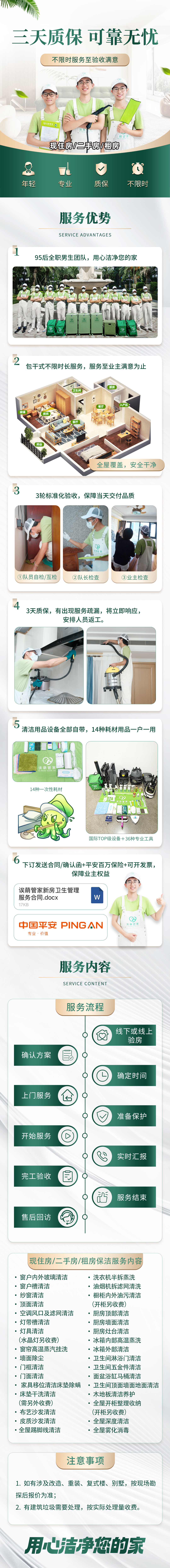 服务说明:临近春节期间库存较满,请提前安排您的保洁服务,若因库存问题导致无法服务,请您谅解!