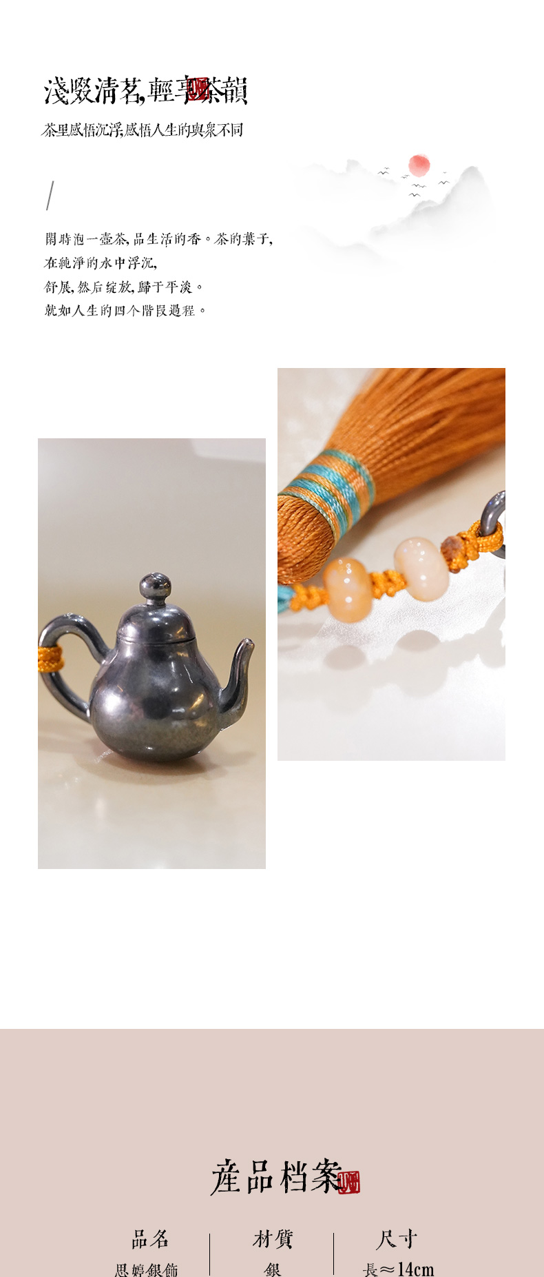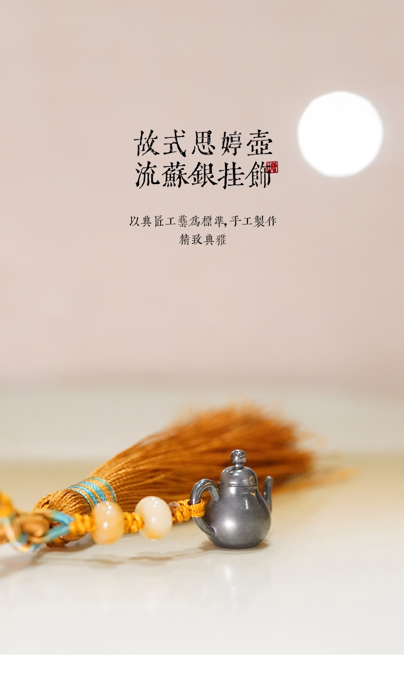 故式/思婷银饰/999纯银 迷你小银壶国风流苏穗子 手机壳吊穗配饰挂件小流苏吊坠