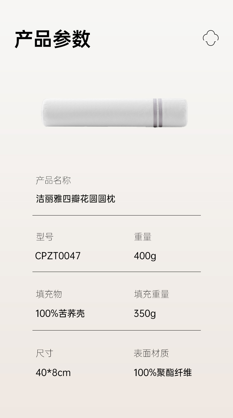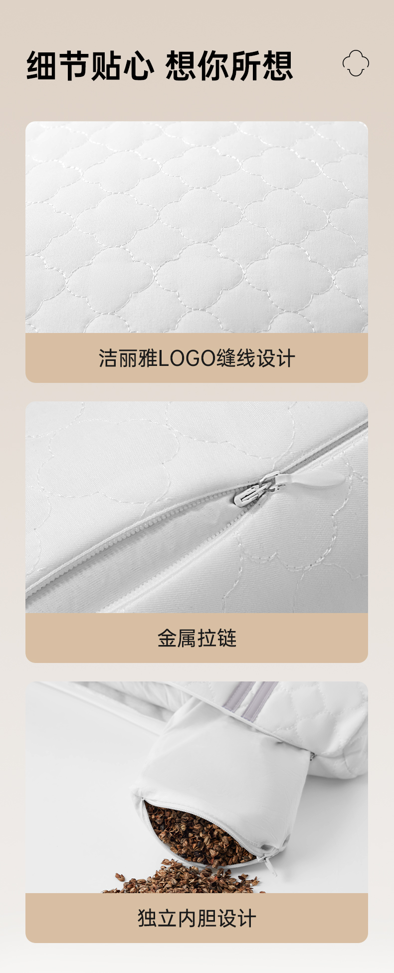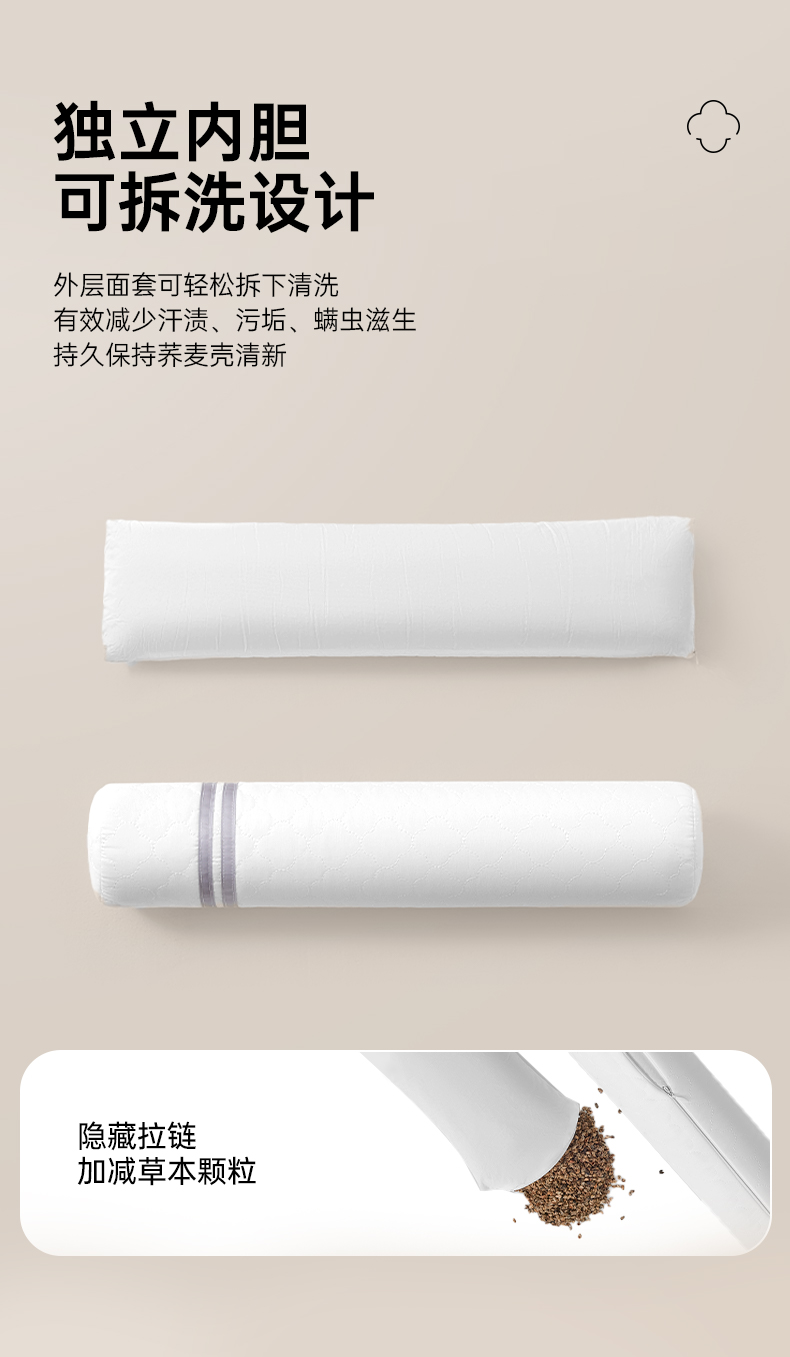 洁丽雅天然荞麦壳圆枕承托护颈椎助好眠成人家用亲肤透气可拆洗