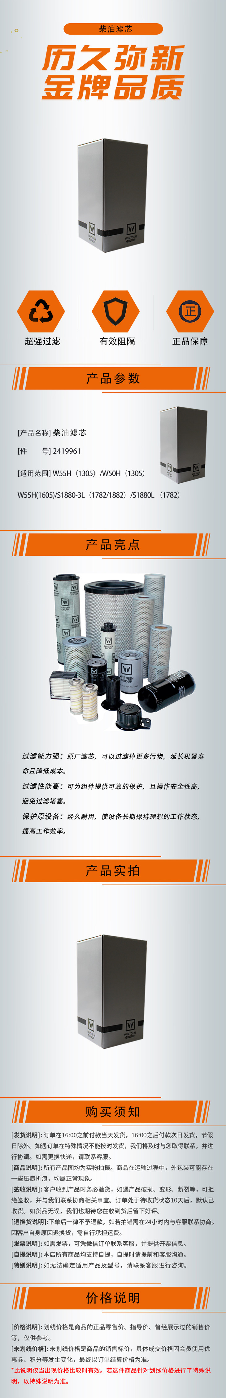 【柴油滤芯2419961】 适用于W55H(1305)/W50H(1305)/W55H(1605)/S1880-3L(1782/1882)/S1880L (1782)