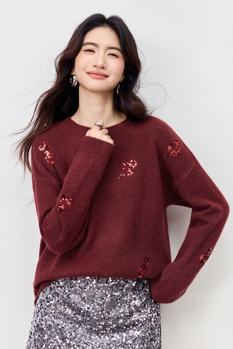 【内购】【花影琉光】时尚洋气节日穿搭圆领绣花宽松含绵羊毛弹力厚毛衣-W54EE3874