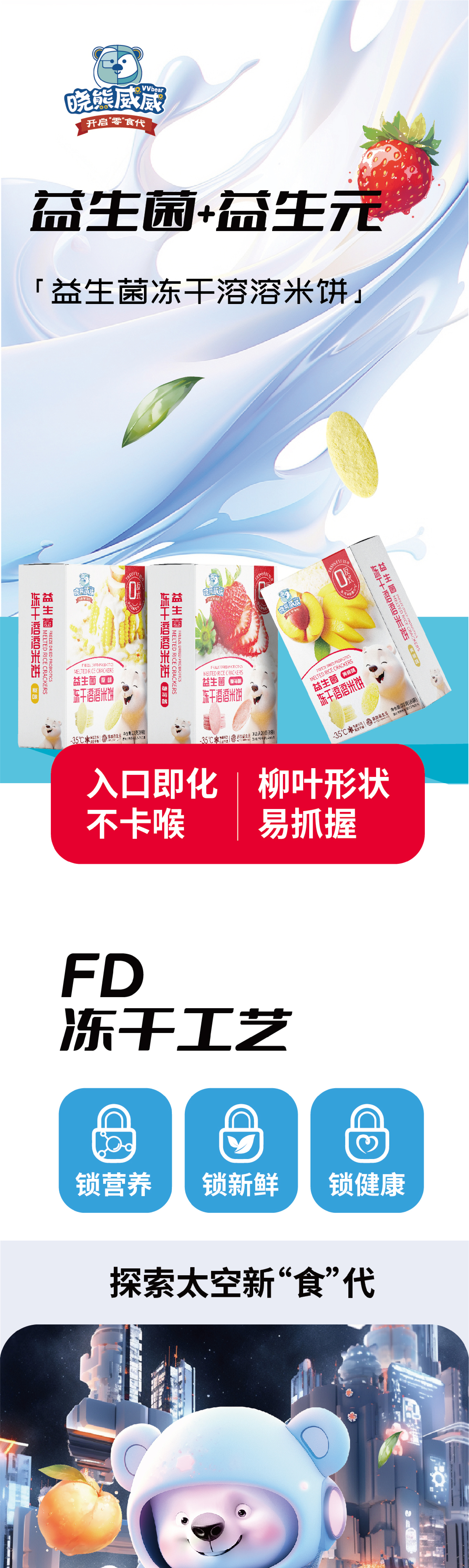 晓熊威威 宝宝辅食零食抓握训练益生菌冻干溶溶米饼20g 6月+