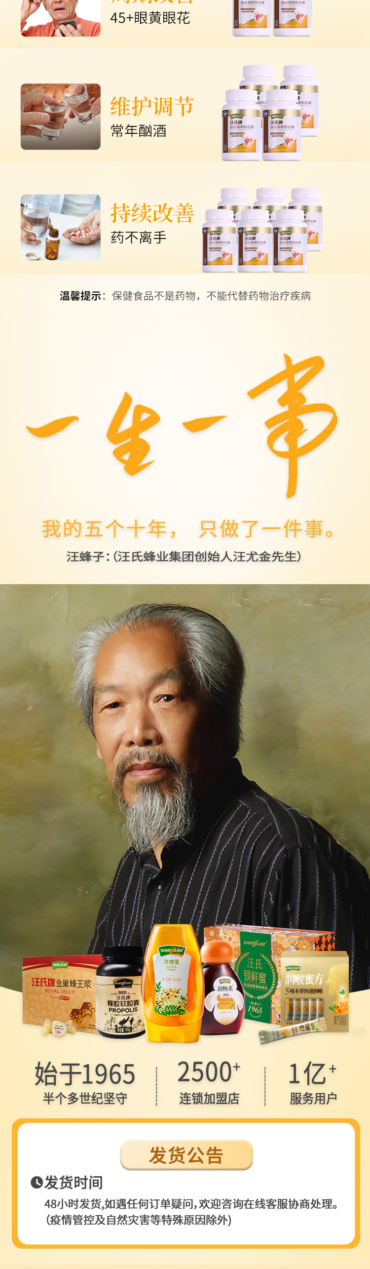 汪氏蜂王浆片状制品5.0 蜂王浆片50g/瓶 换季不用慌 每日来2片