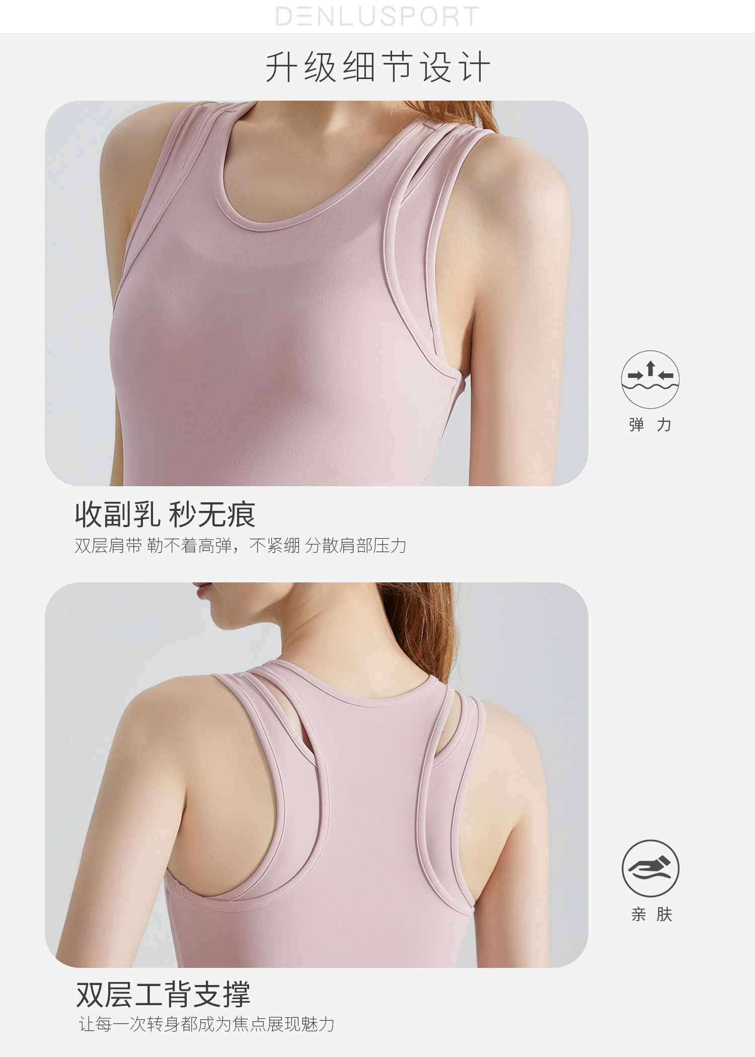 新款无袖工字背心DY66170 固定胸垫 假两件专业运动美背外穿运动速干健身服