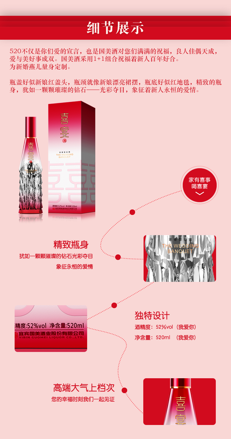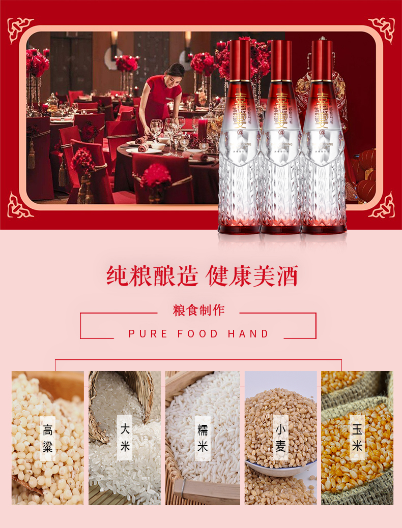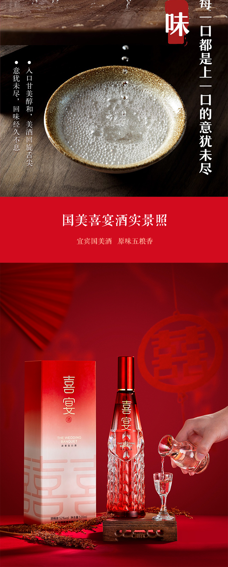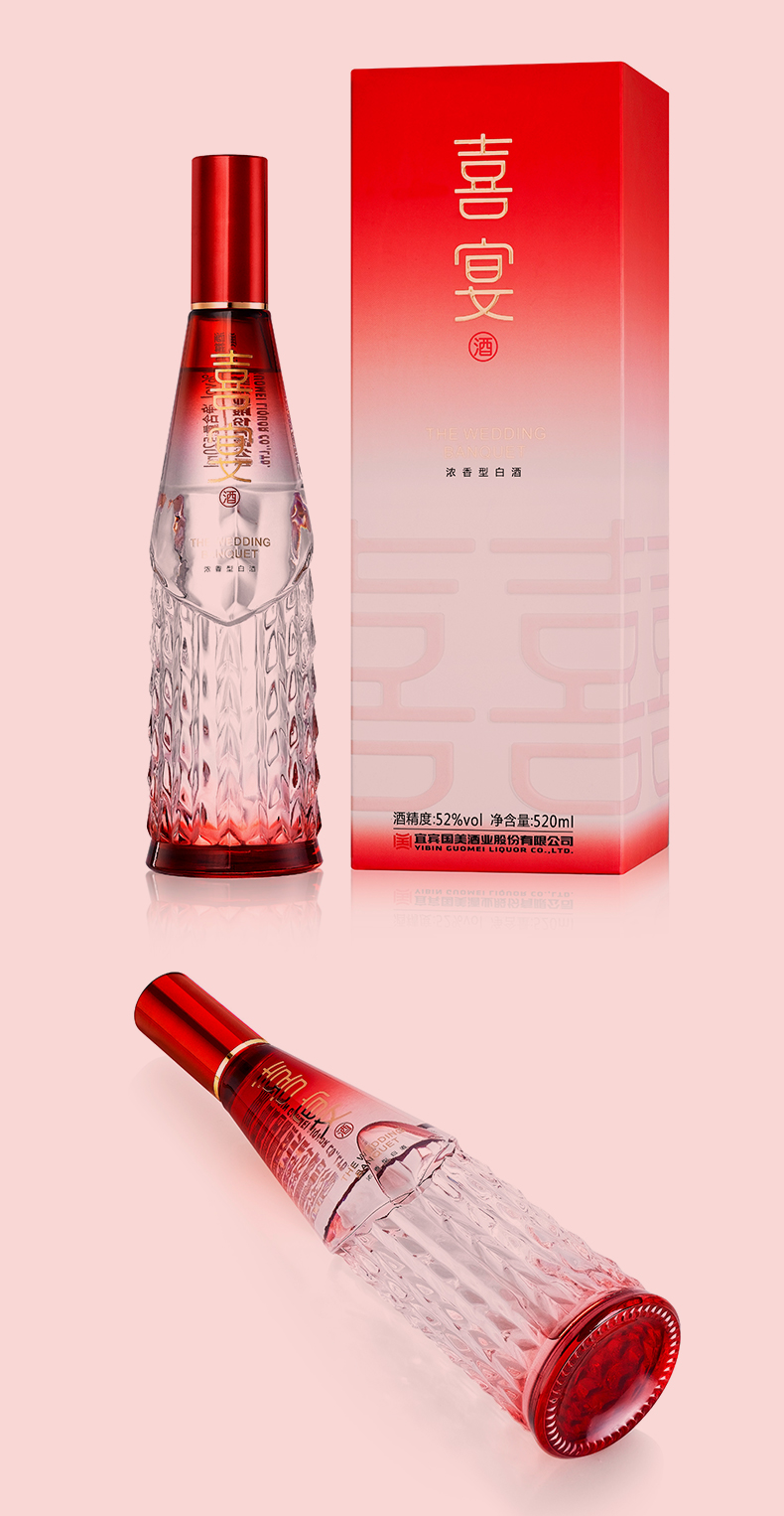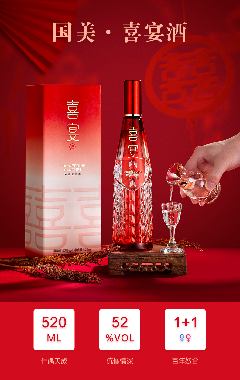 国美酒52度喜宴酒520ml浓香型白酒喜庆宴会专用纯粮酿造白酒