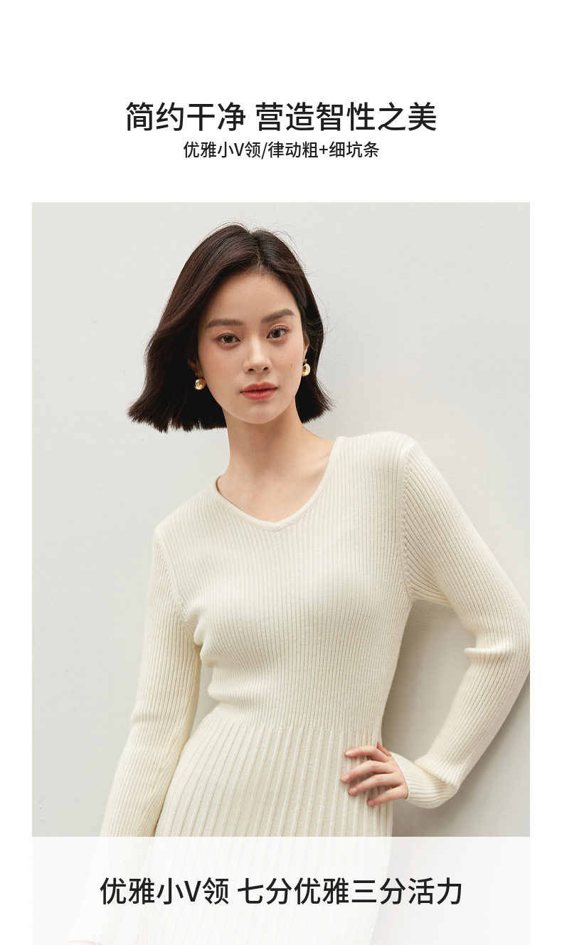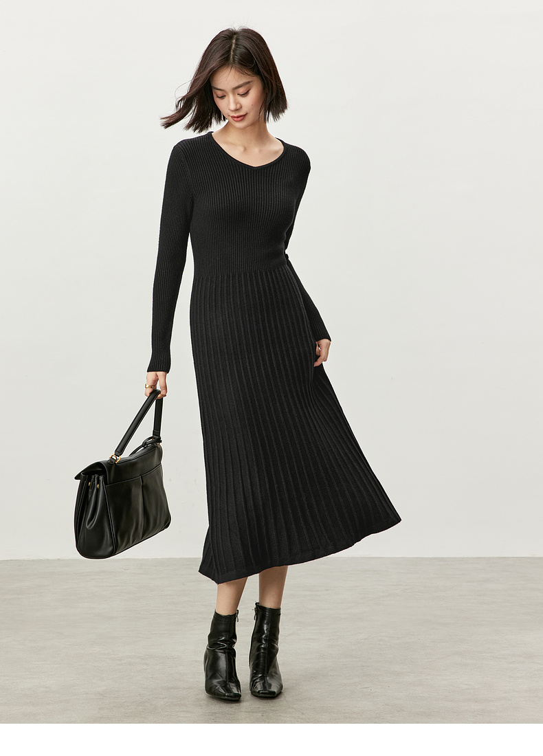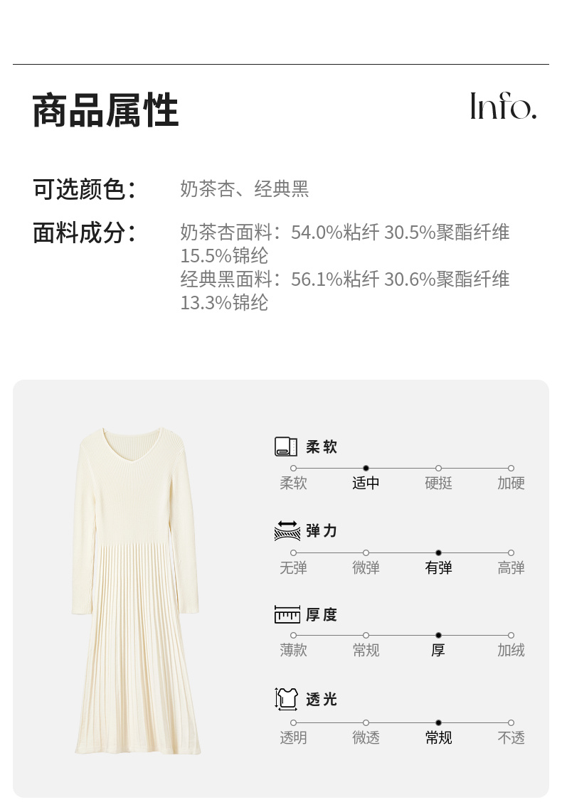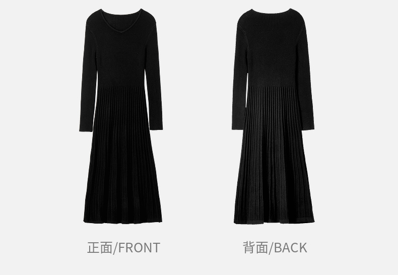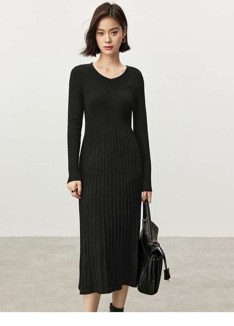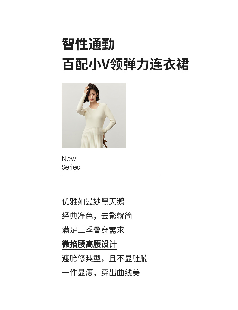 【内购】简约通勤基础款小V领内搭连衣裙弹力显瘦收腰毛织裙子-W44L57207