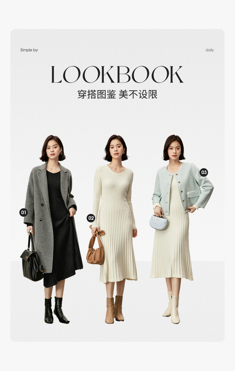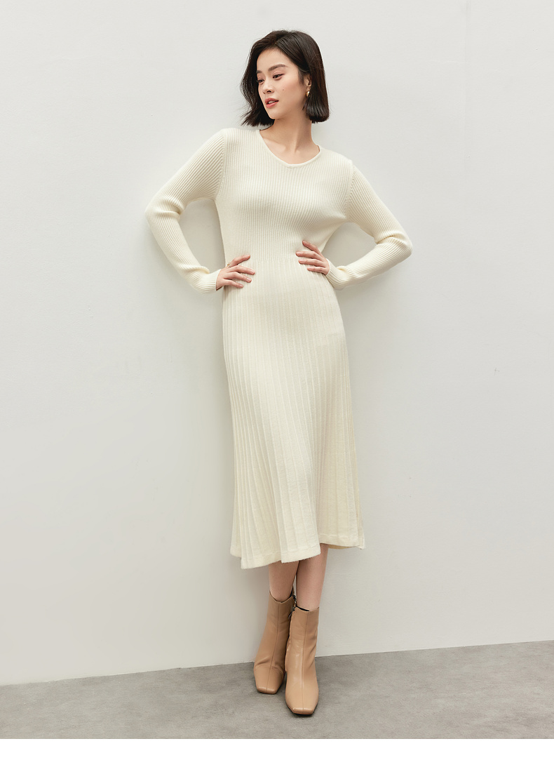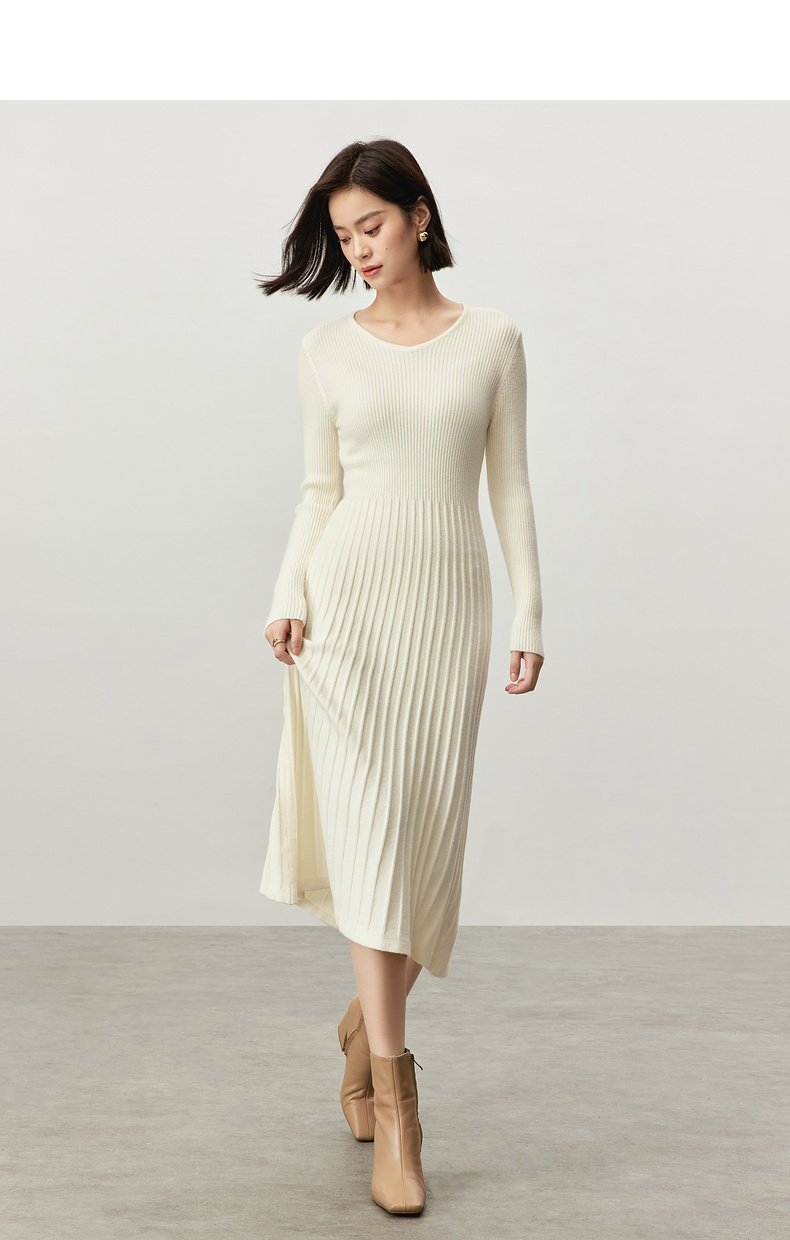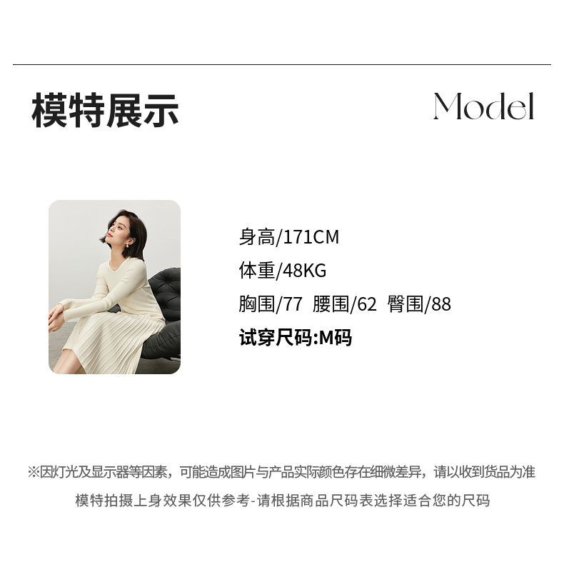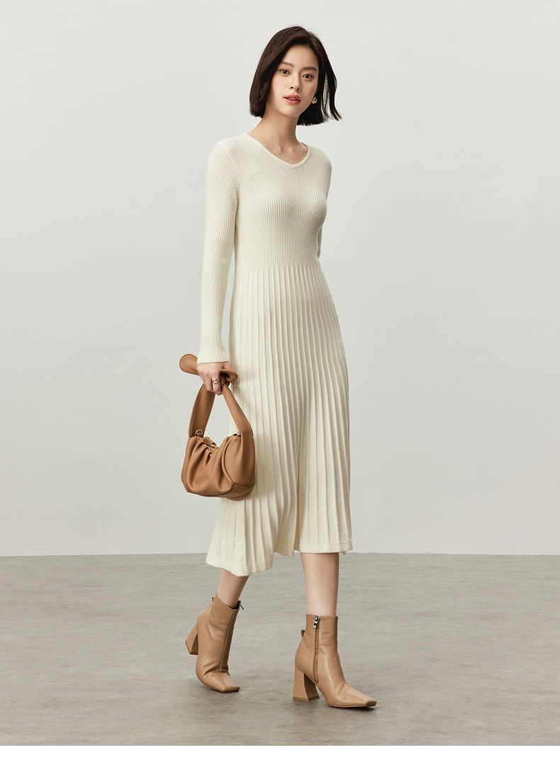 【内购】简约通勤基础款小V领内搭连衣裙弹力显瘦收腰毛织裙子-W44L57207