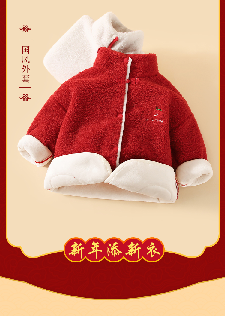 【清仓捡漏】【90-130】【精典泰迪】男女童加绒喜庆红色拜年服外套