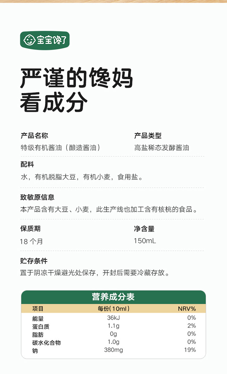 【宝宝馋了】特级有机酱油 国标特级酿造酱油 送12月+婴幼儿食谱