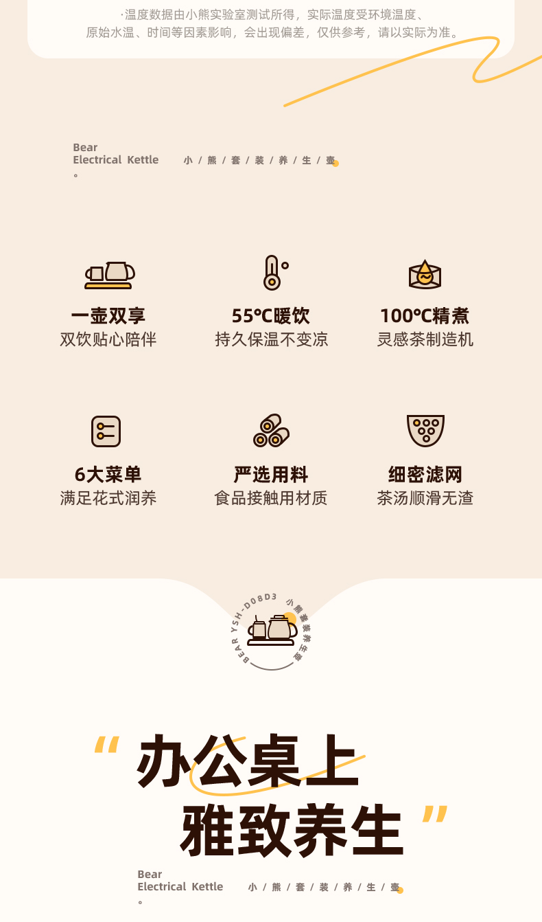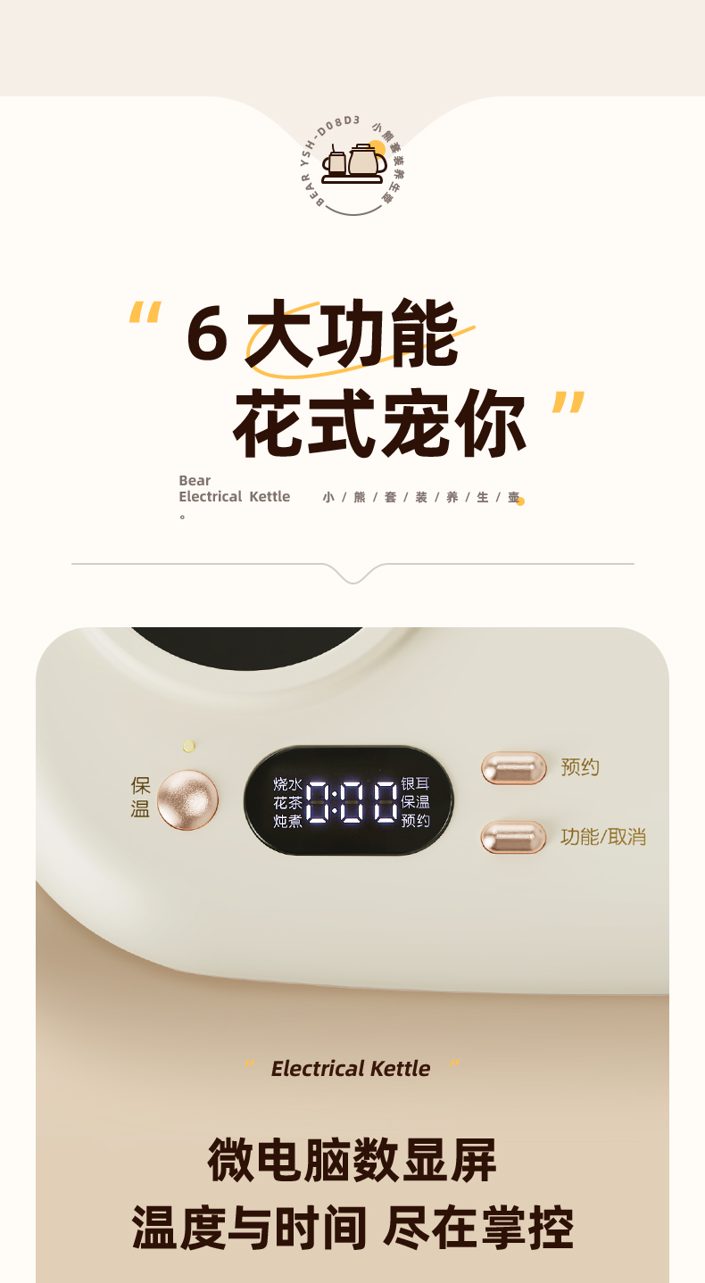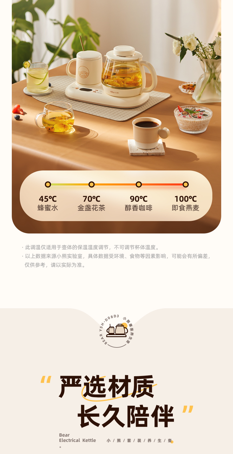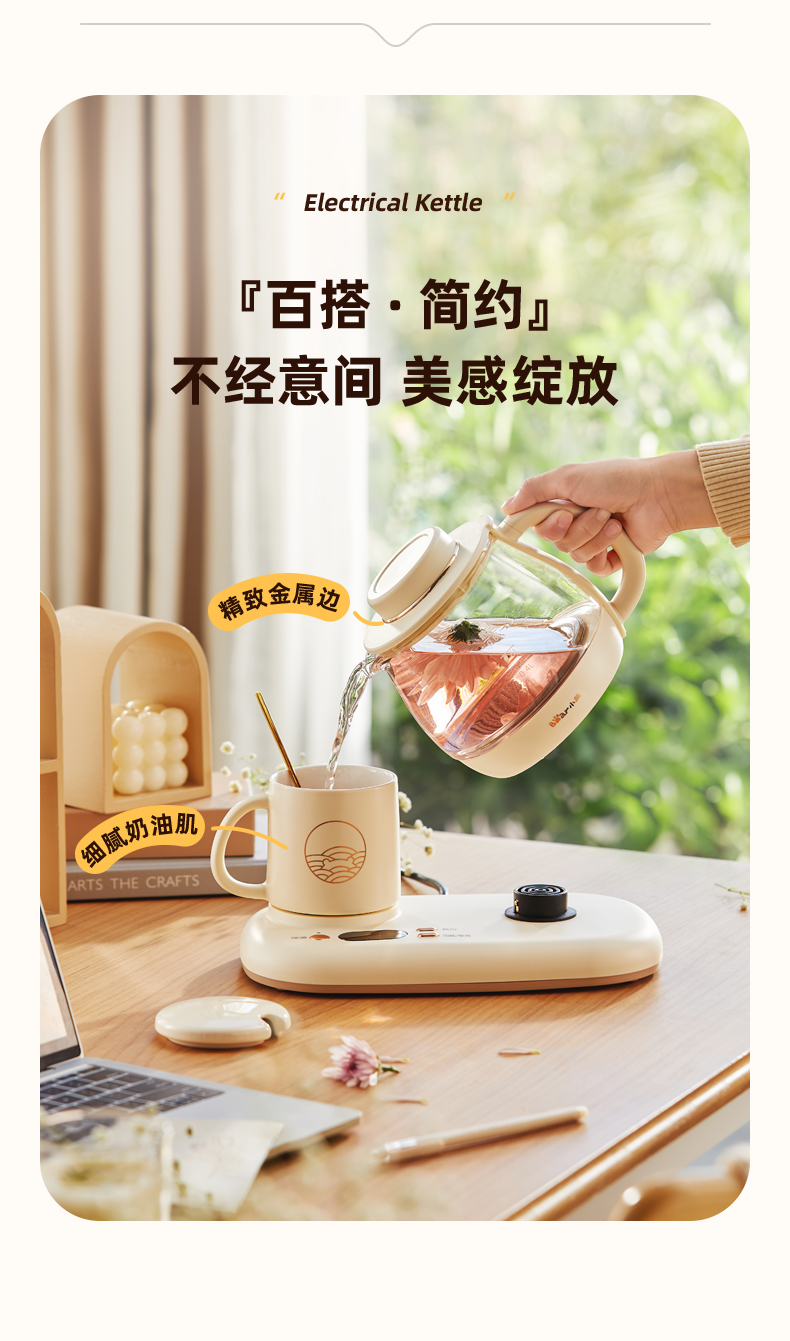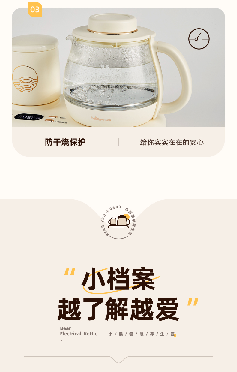 【小程序】小熊养生壶 YSH-D08D3 米黄色 壶盖+玻璃壶身+底座+陶瓷杯