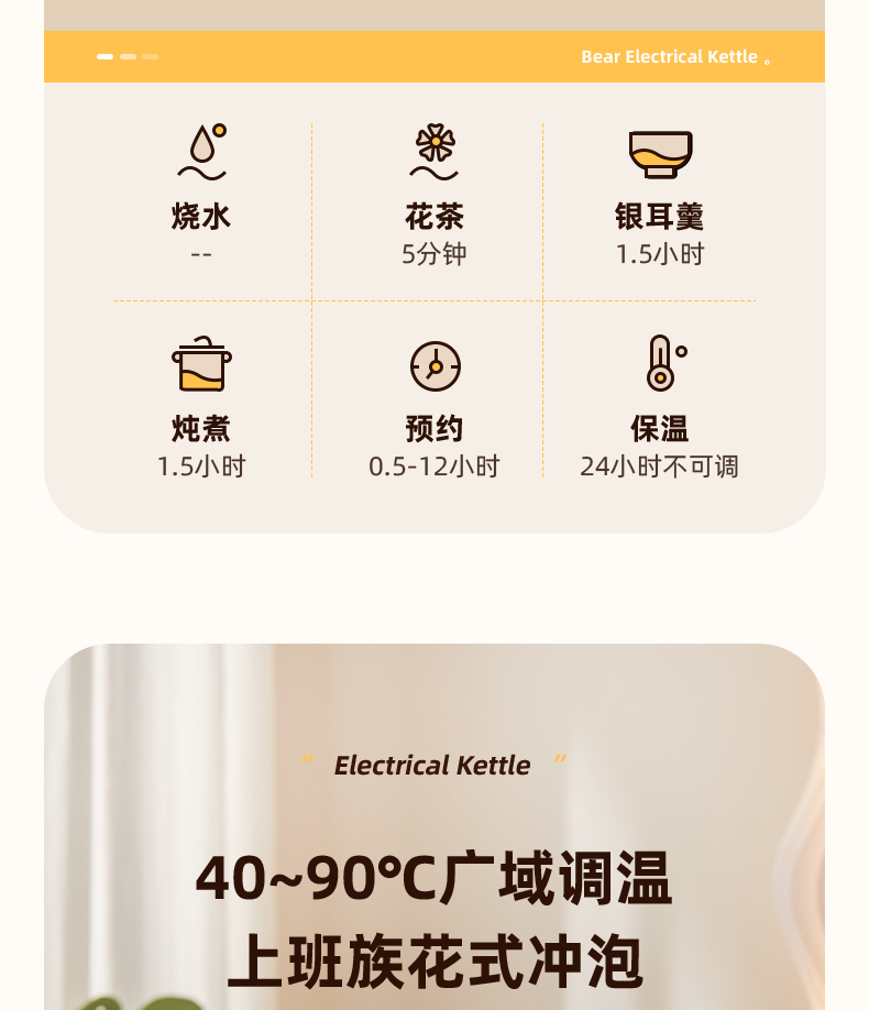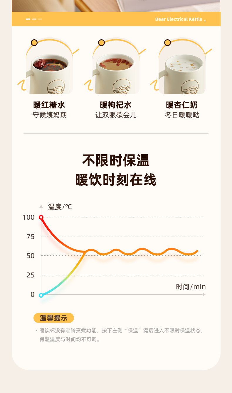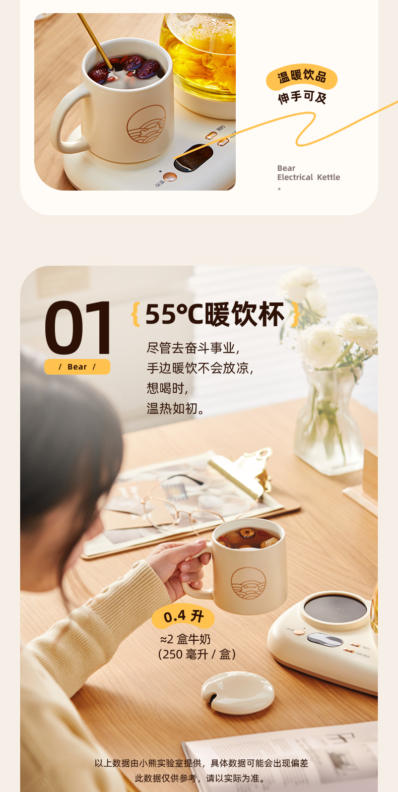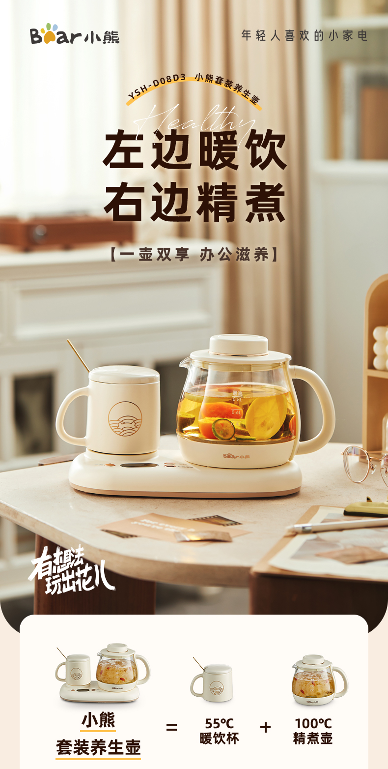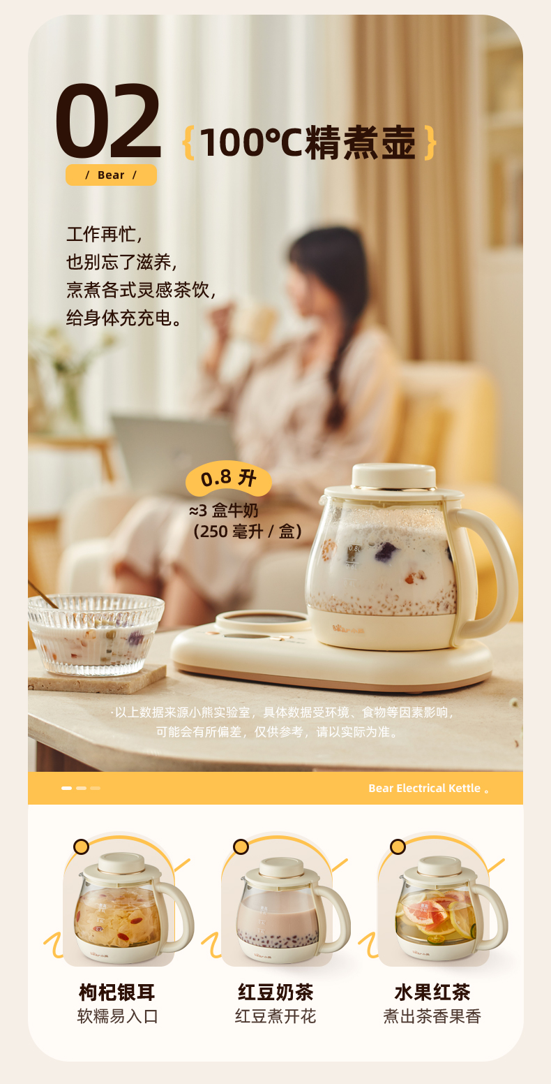 【小程序】小熊养生壶 YSH-D08D3 米黄色 壶盖+玻璃壶身+底座+陶瓷杯