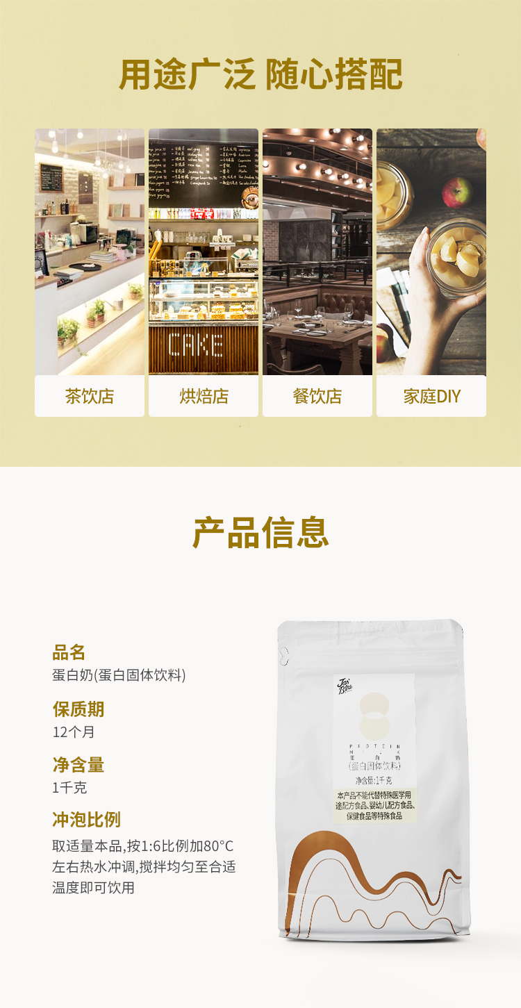 【经销商专区】【12风味粉】蛋白奶(蛋白固体饮料)1kg*10袋/箱奶茶原料 冲饮奶茶店