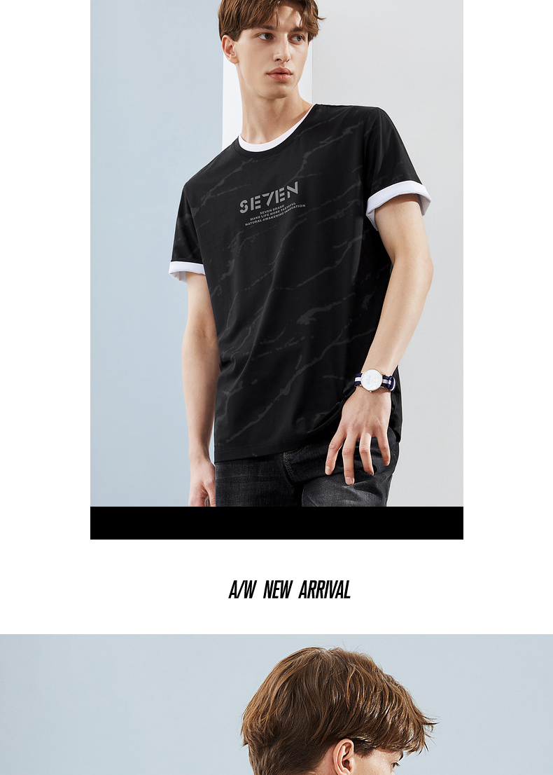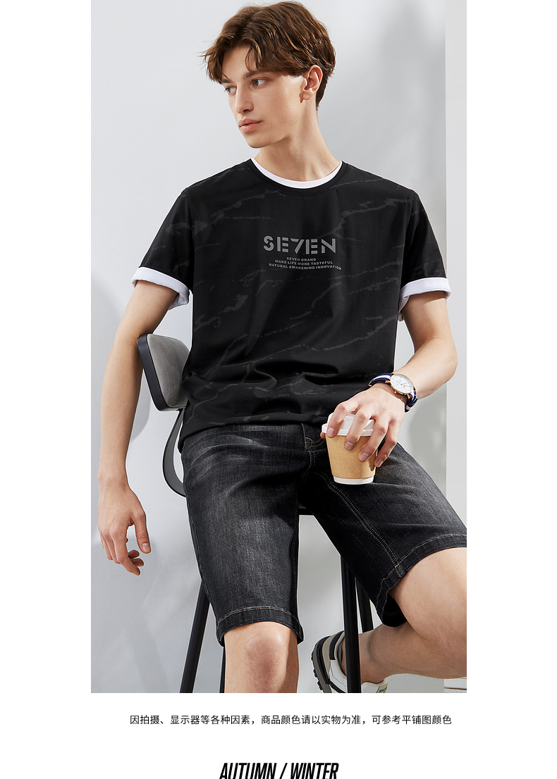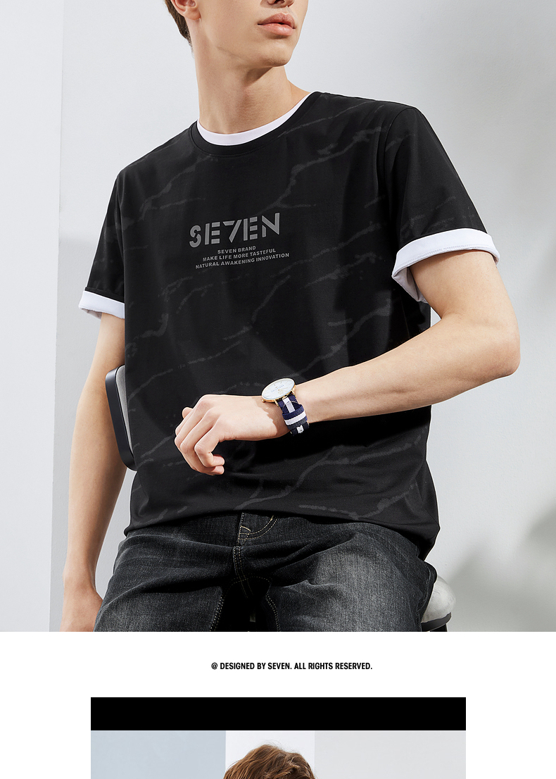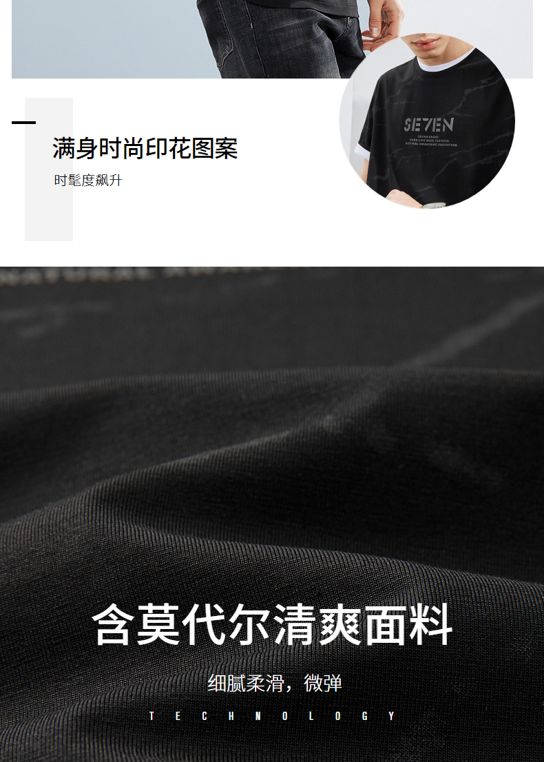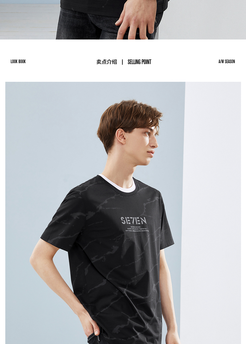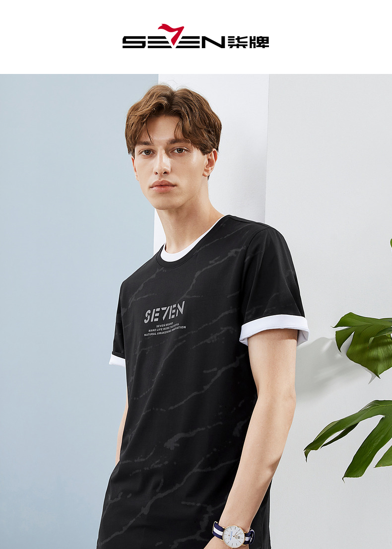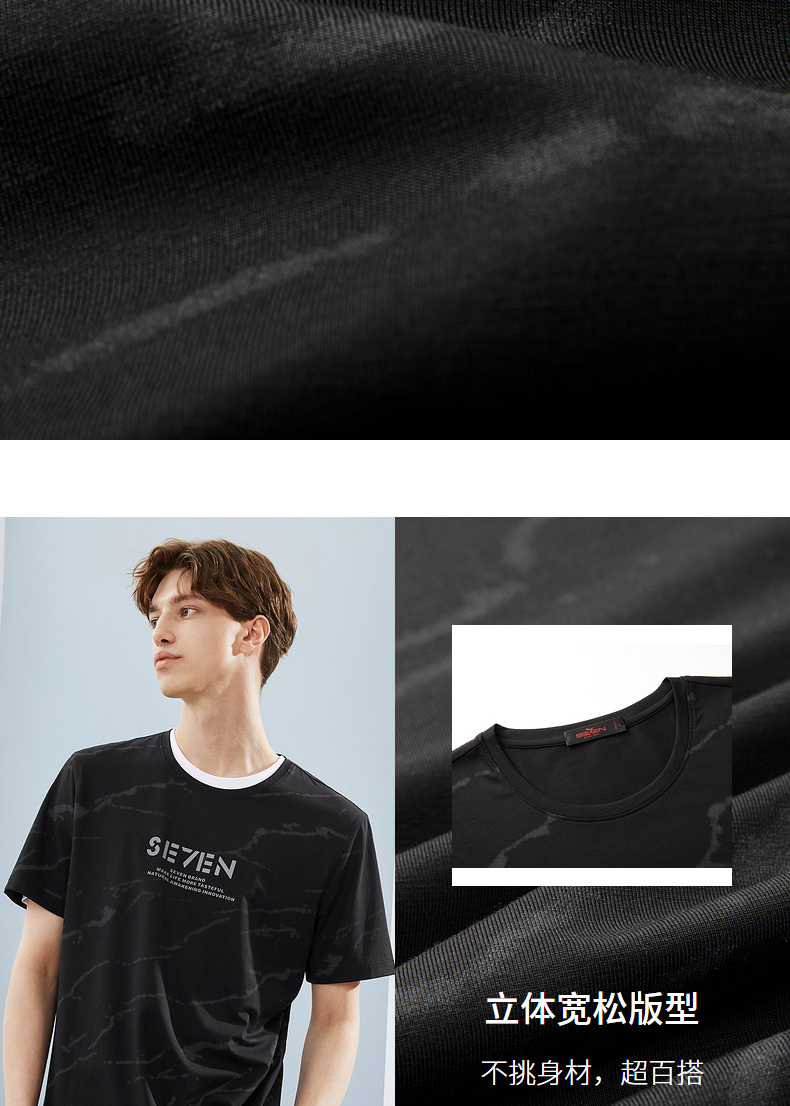 【莫代尔】柒牌短袖T恤男夏季新款满身印花潮流时尚圆领上衣 124T71910
