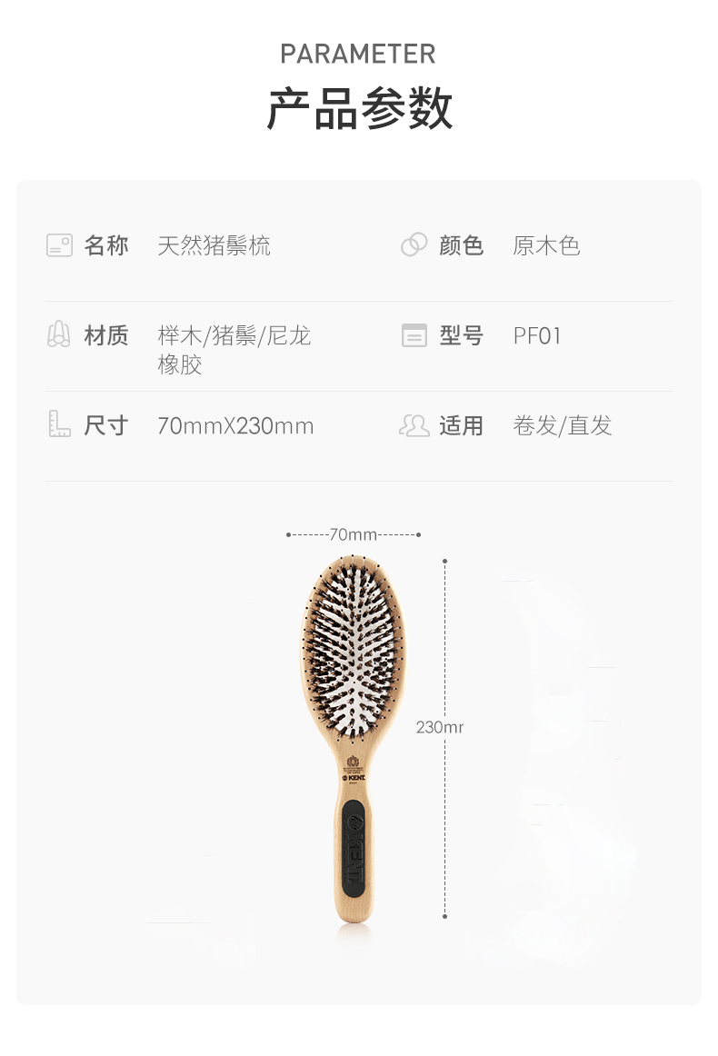KENT 野生猪鬃 平衡头油 顺发护发按摩梳