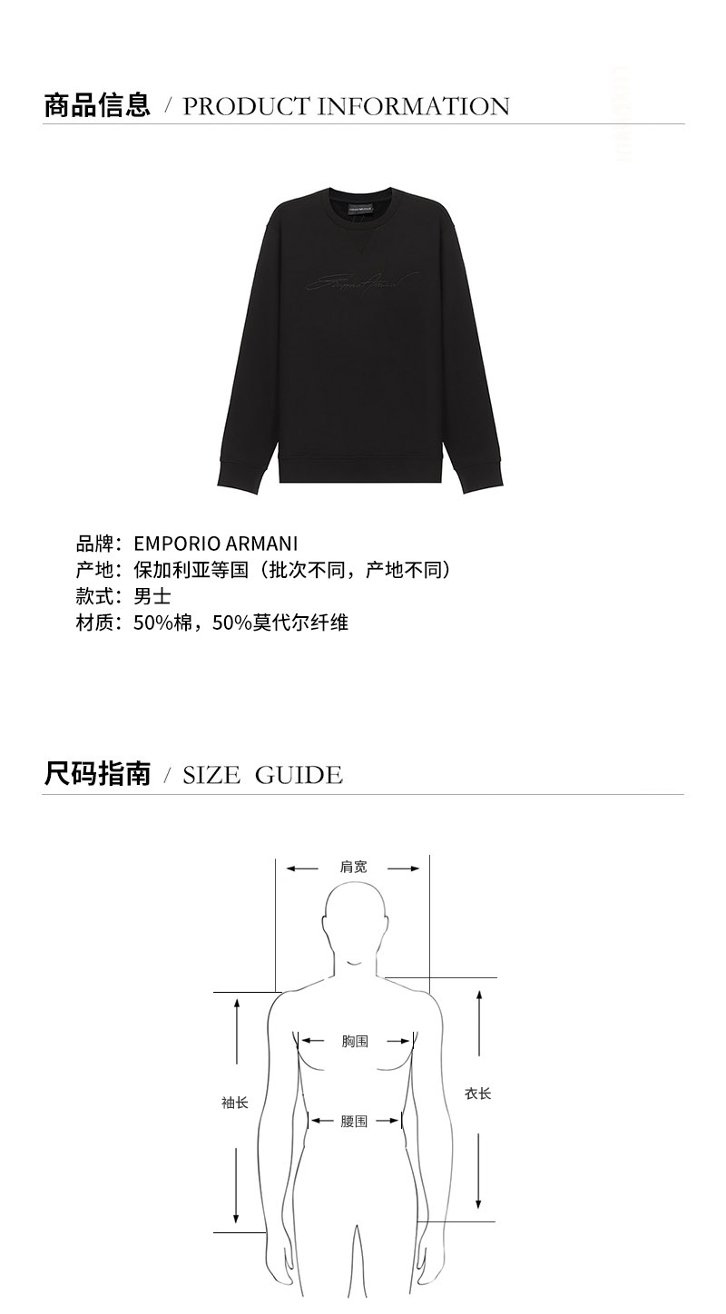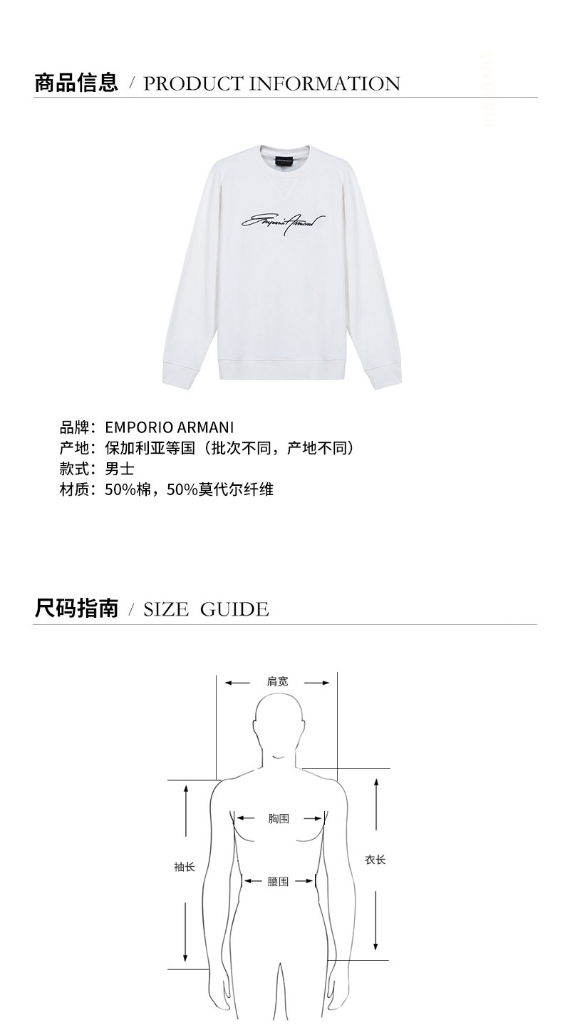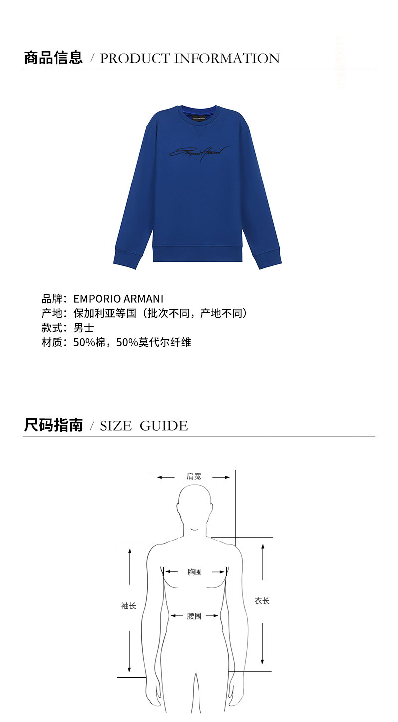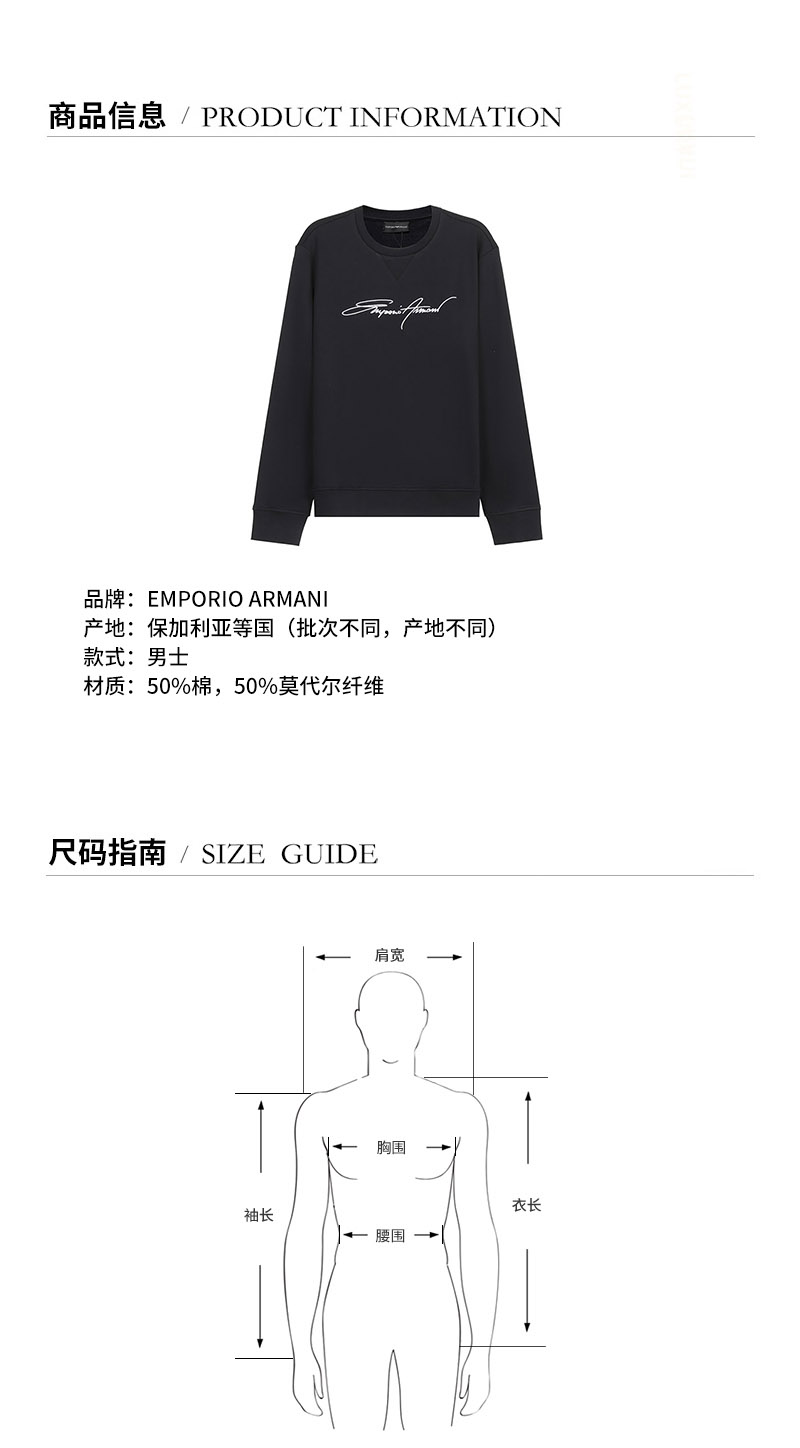 Emporio Armani/安普里奥阿玛尼 男卫衣 男士棉/莫代尔纤维圆领长袖卫衣运动衫 3K1MD4 1JTNZ