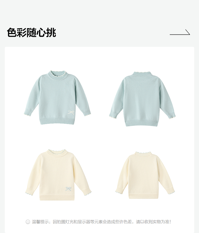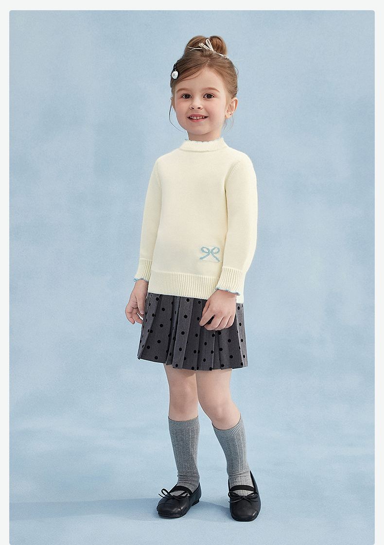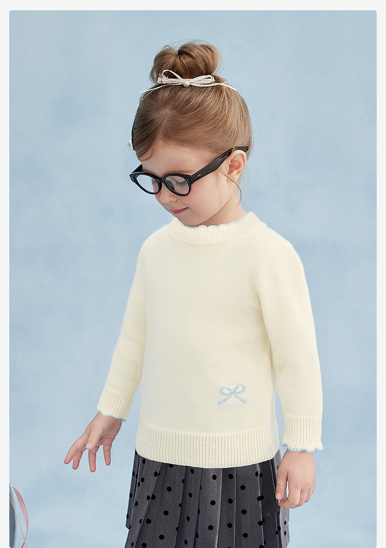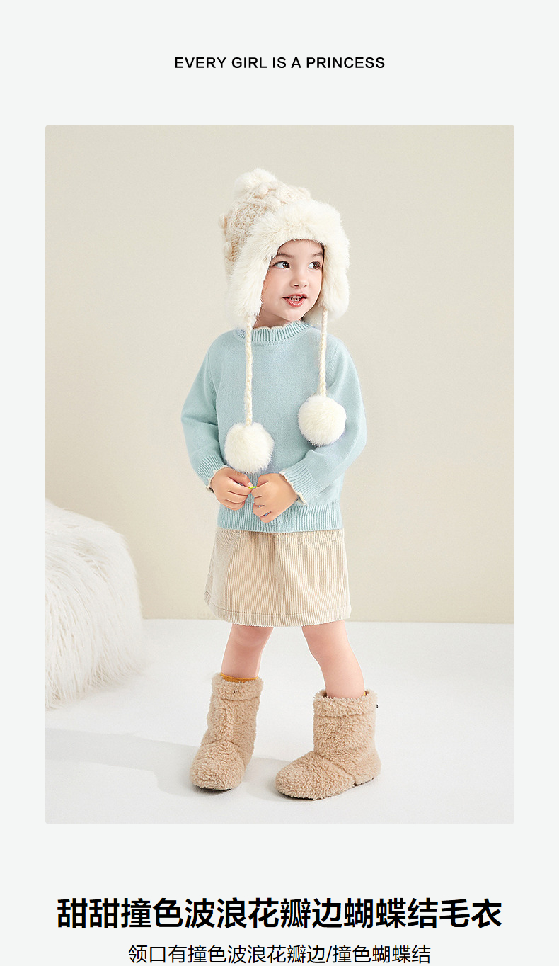 笛莎Deesha 童装女童毛衫2025冬新款女童甜甜撞色波浪花瓢边蝴蝶结毛衣