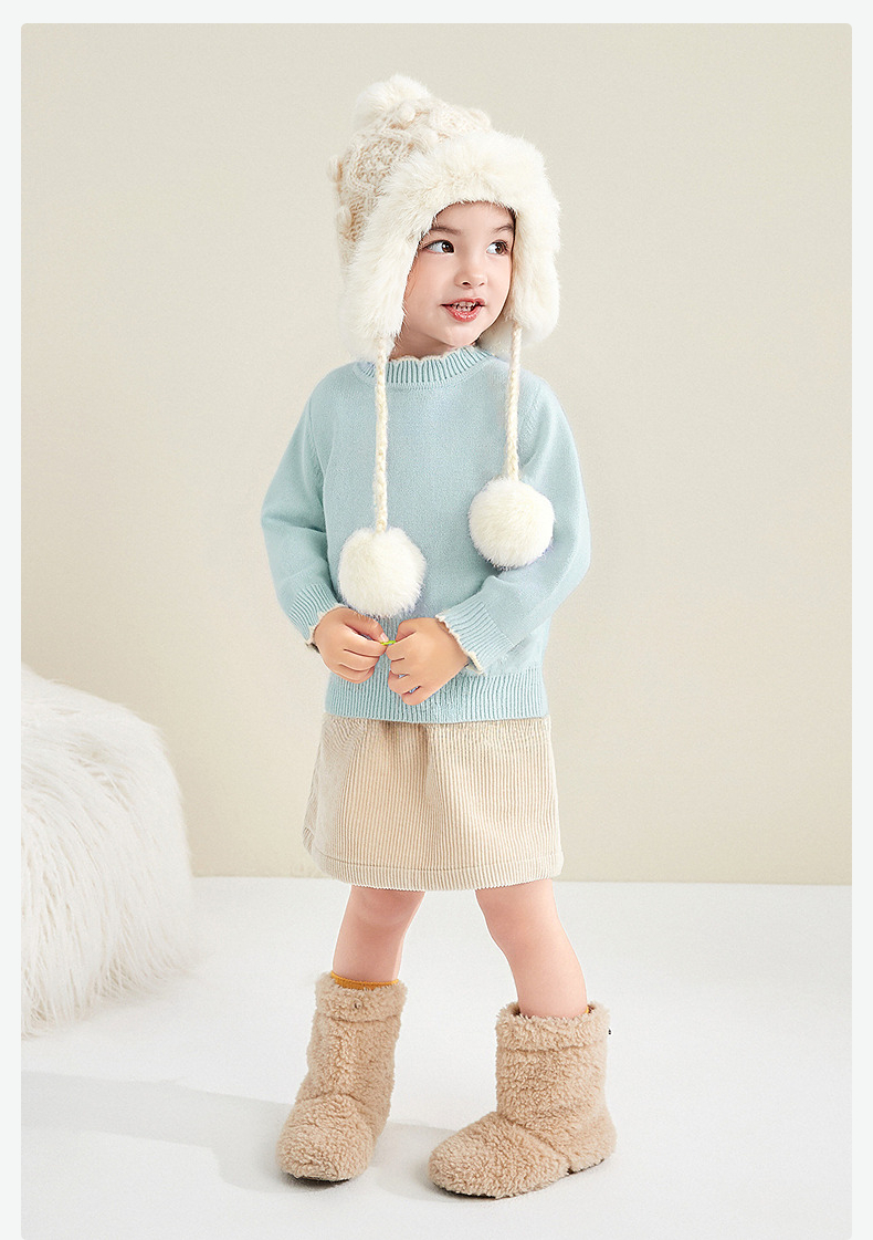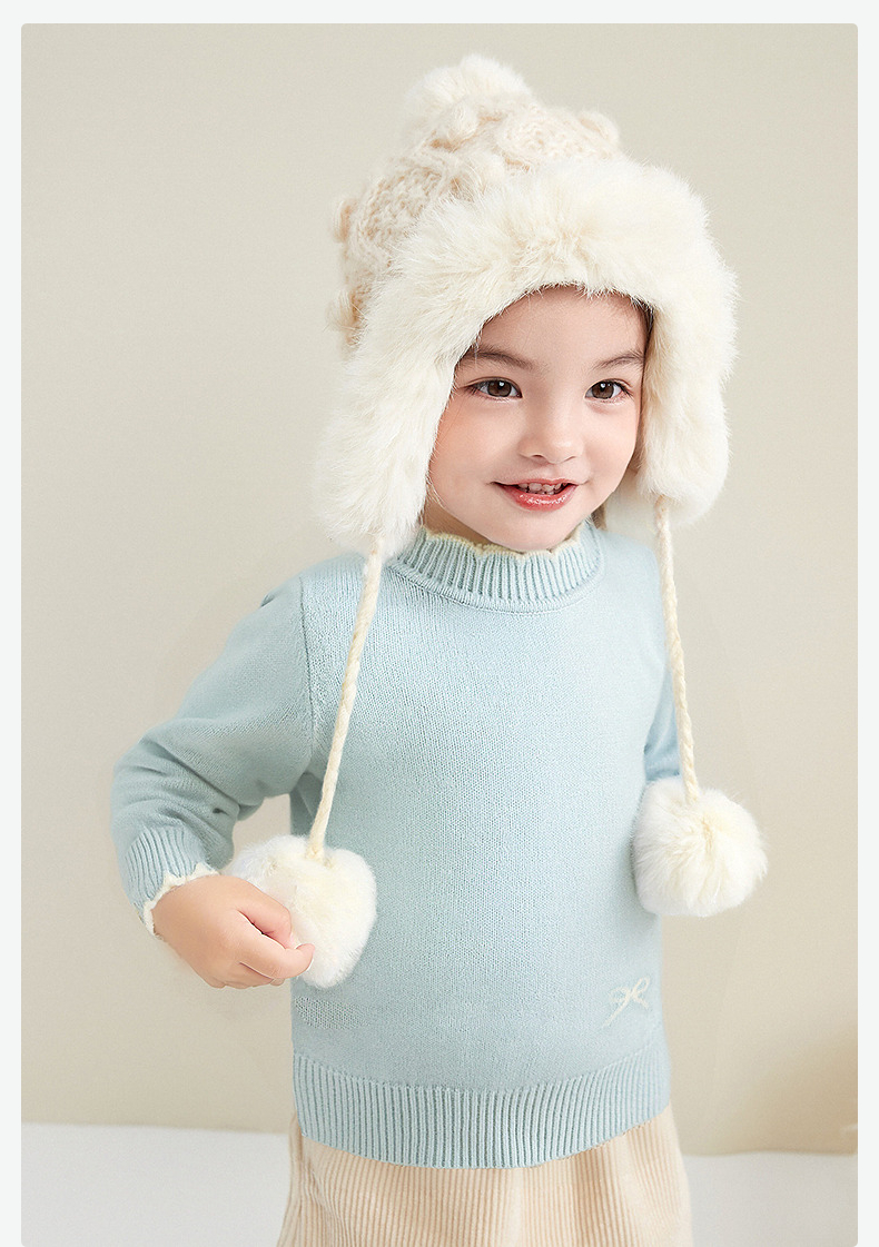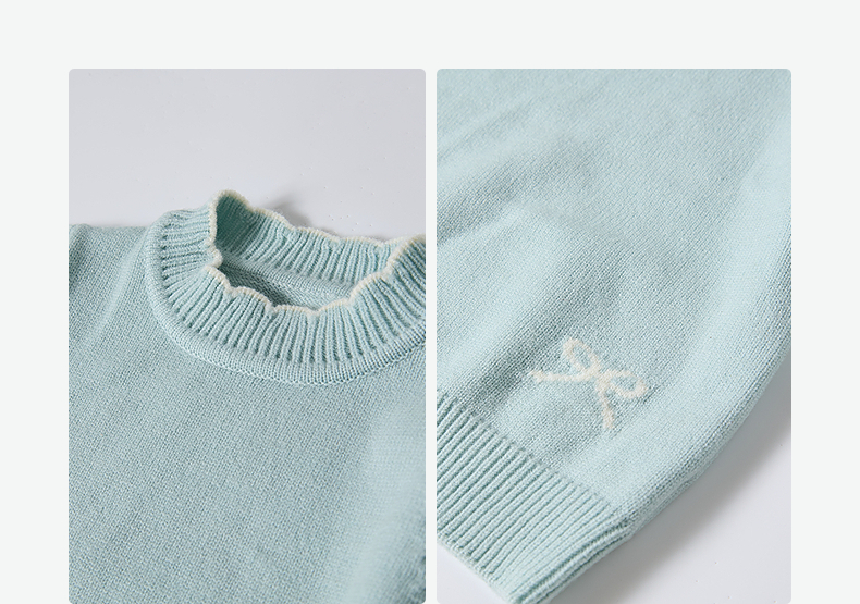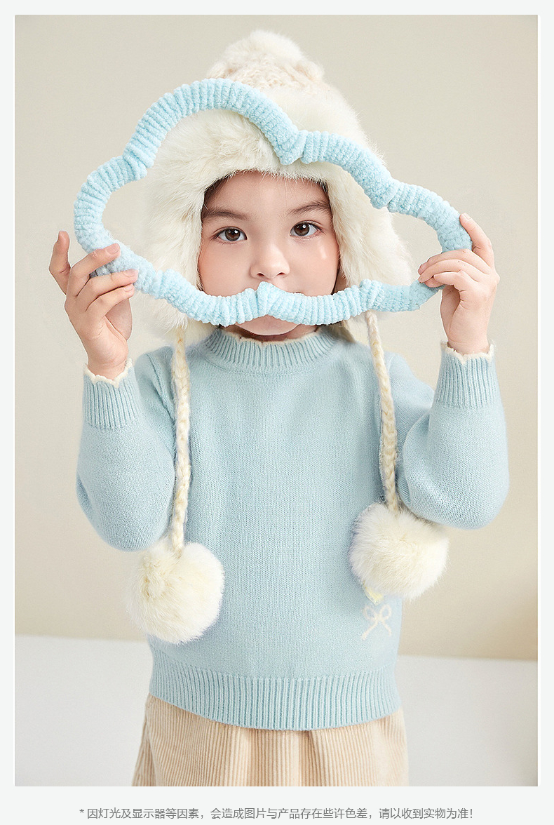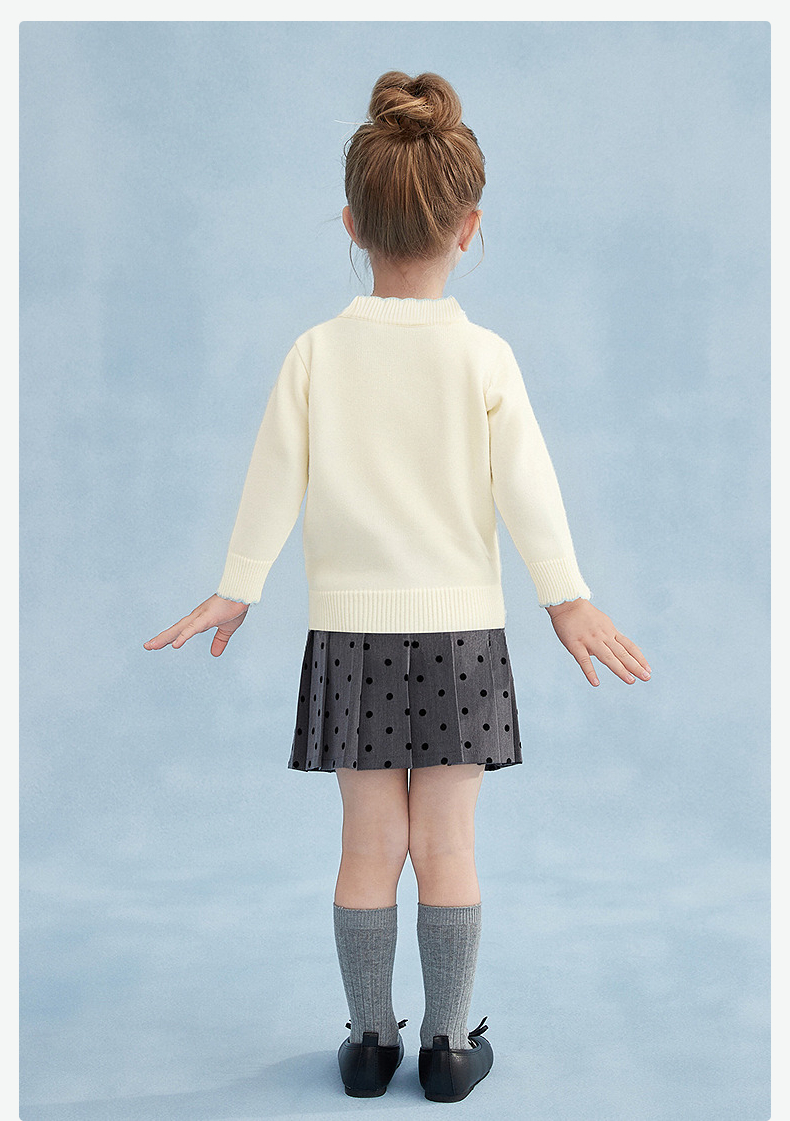 笛莎Deesha 童装女童毛衫2025冬新款女童甜甜撞色波浪花瓢边蝴蝶结毛衣