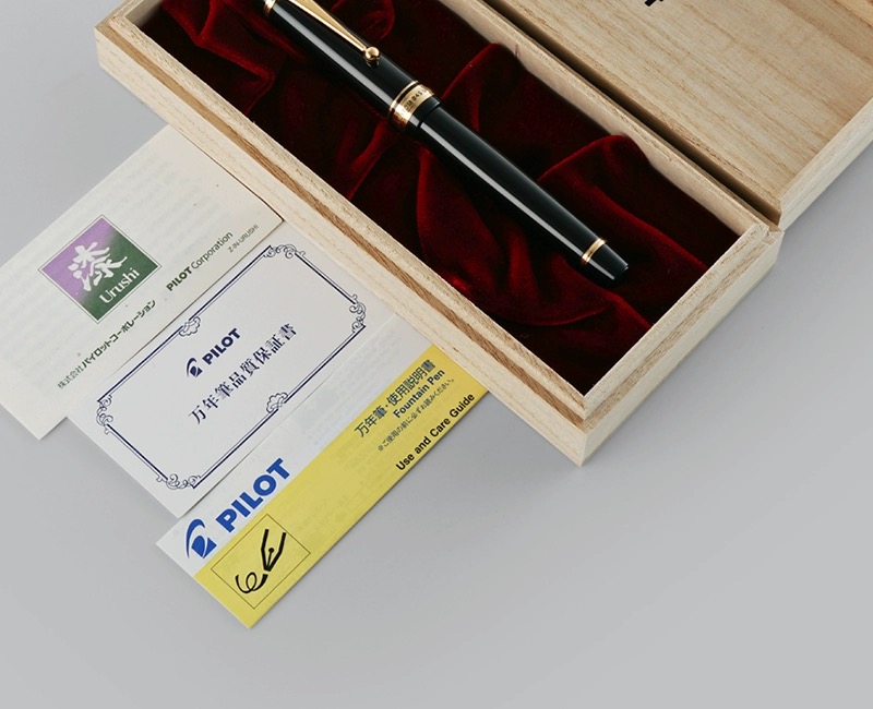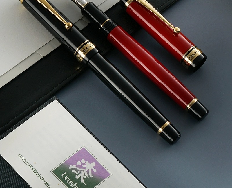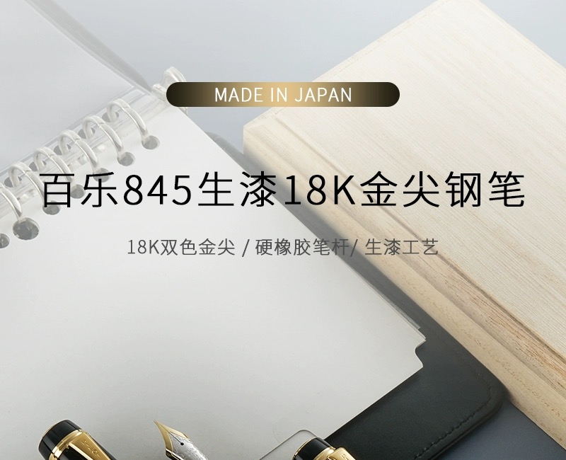 日本PILOT百乐845钢笔18K双色金尖硬橡胶生漆笔杆钢笔