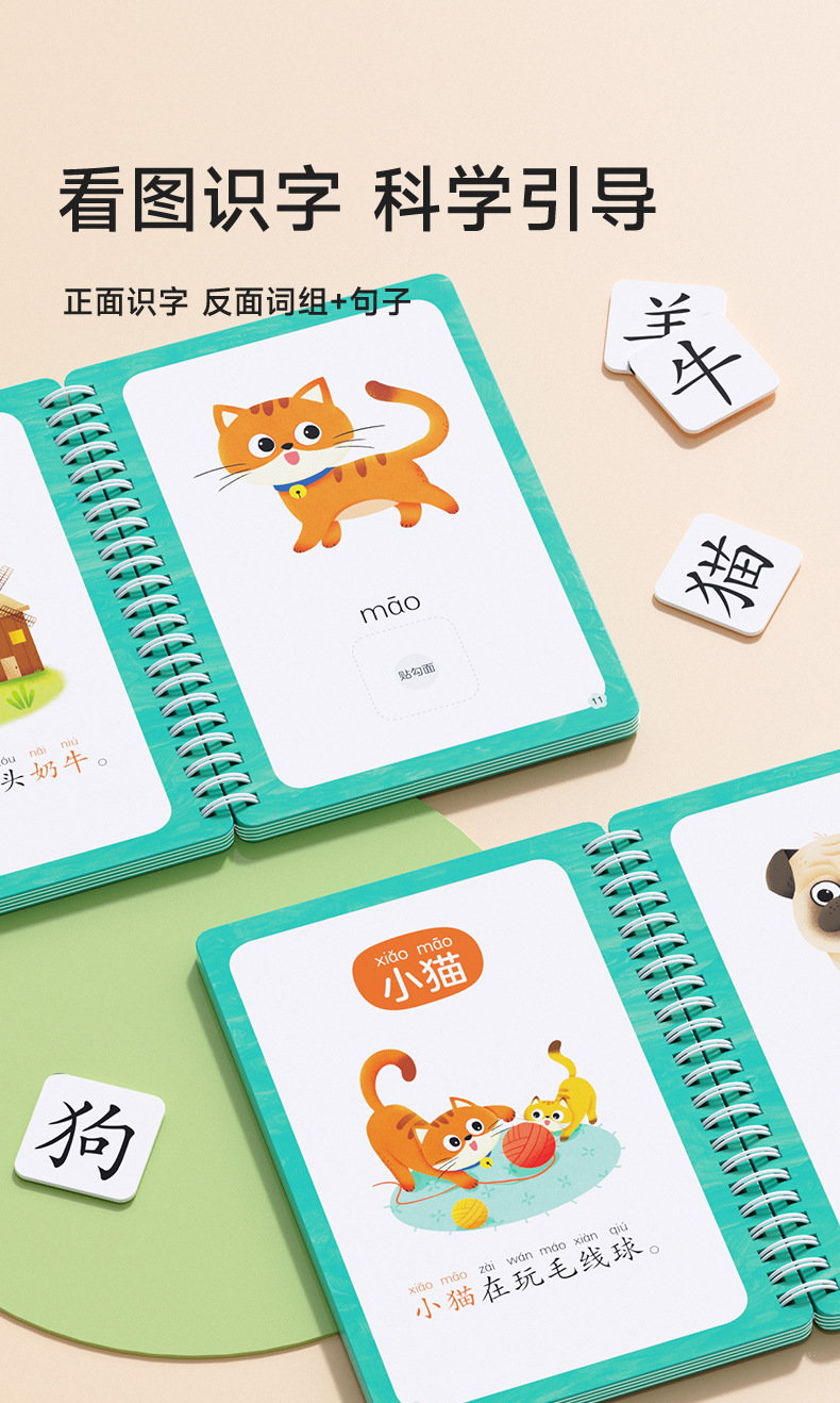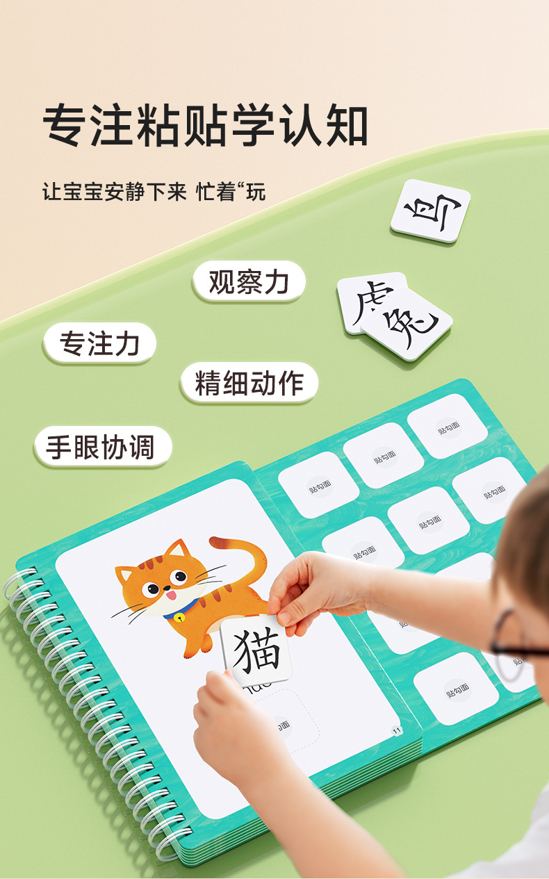 识字早教安静书2-6岁幼儿启蒙认知卡益智趣味认物看图识字贴纸书