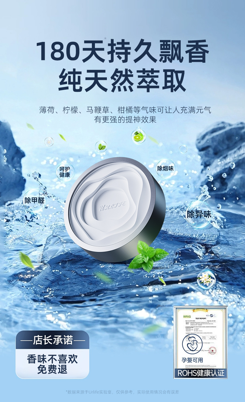 Urlife 车载风口香薰 进口原料 天然植萃 轻奢挂件 车家两用