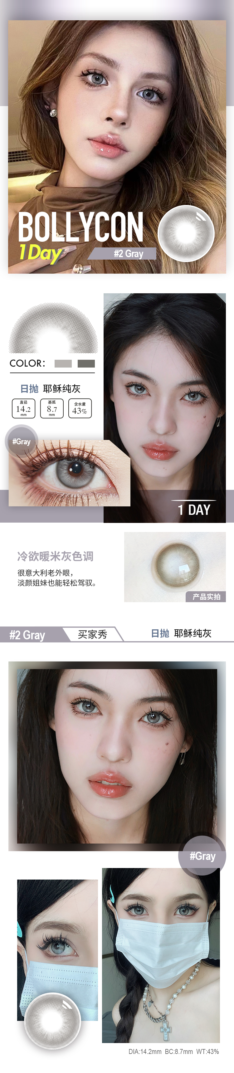 BOLLYCON 日抛 莱琳青灰/泰勒蓝灰/耶稣纯灰(14.2最高800度)