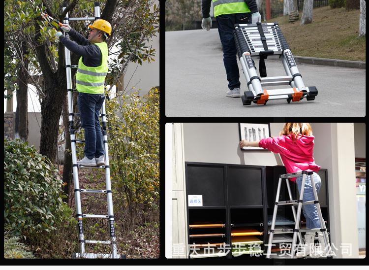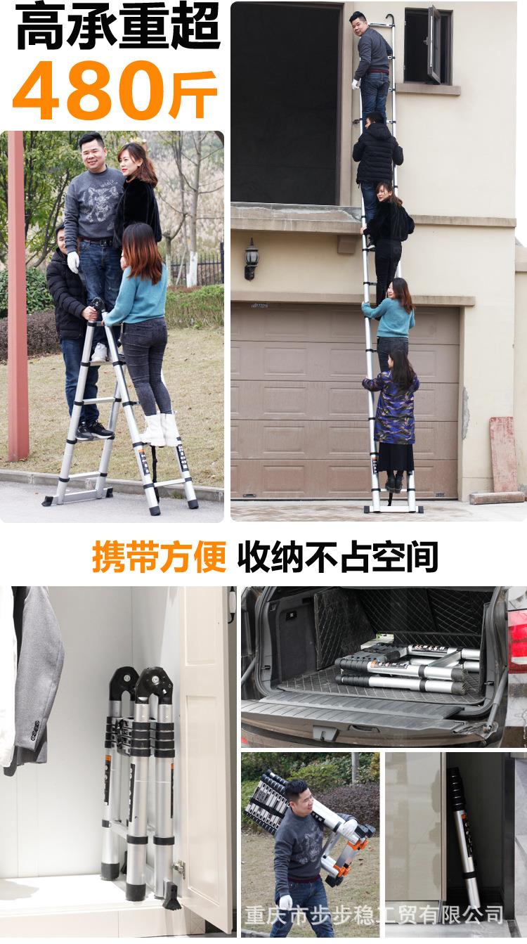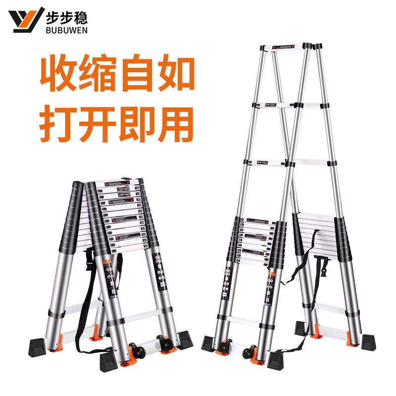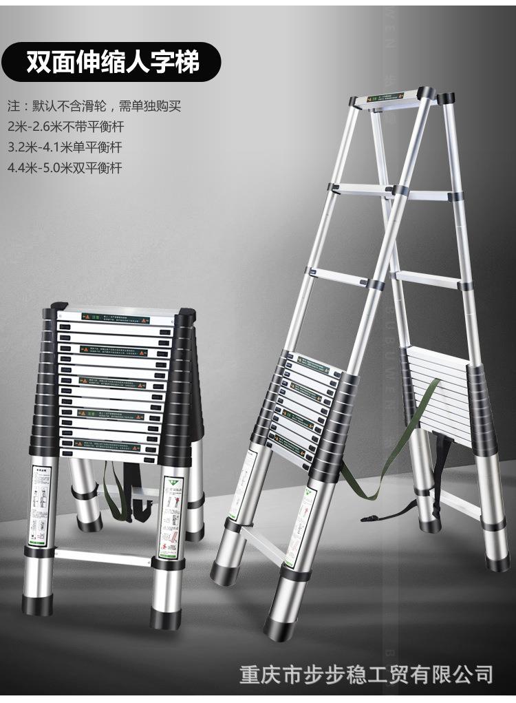 步步稳厂家双面铝合金伸缩人字梯 升降收缩楼梯 便携竹节户外梯子