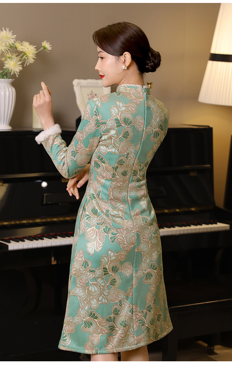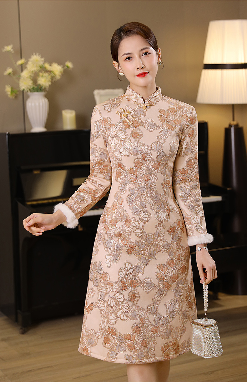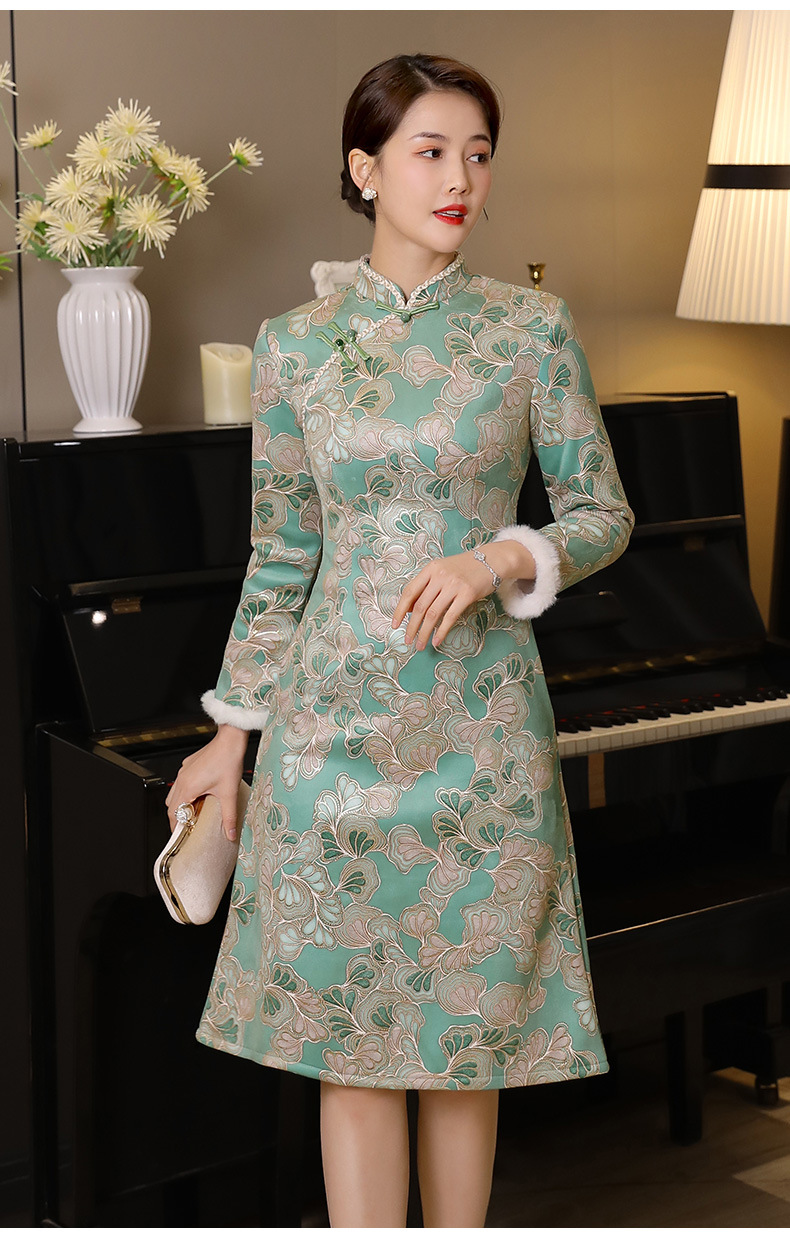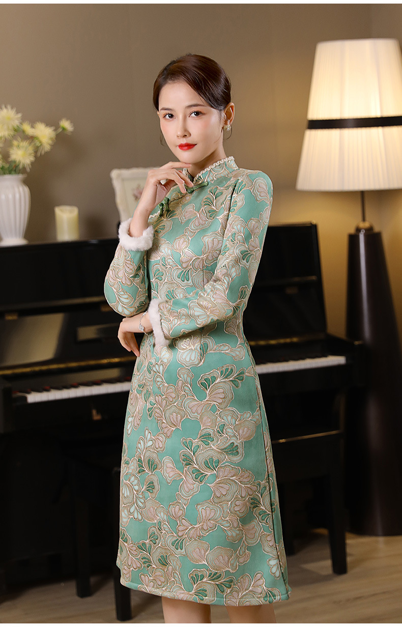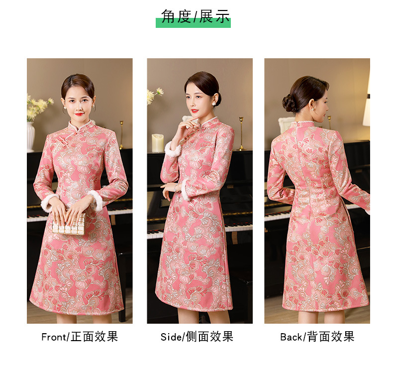 麂皮绒加绒中长款修身旗袍,冬微弹加厚日常甜美可爱少女连衣裙MLS-6298